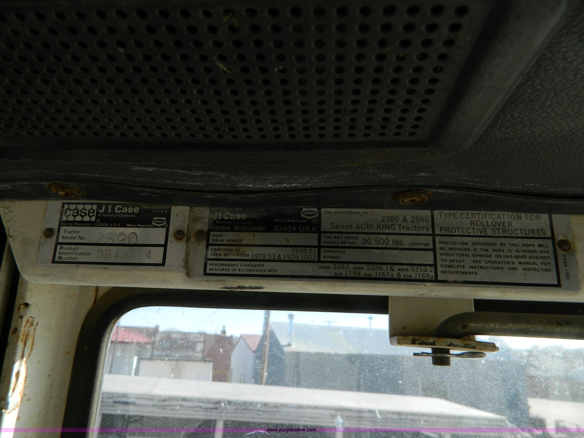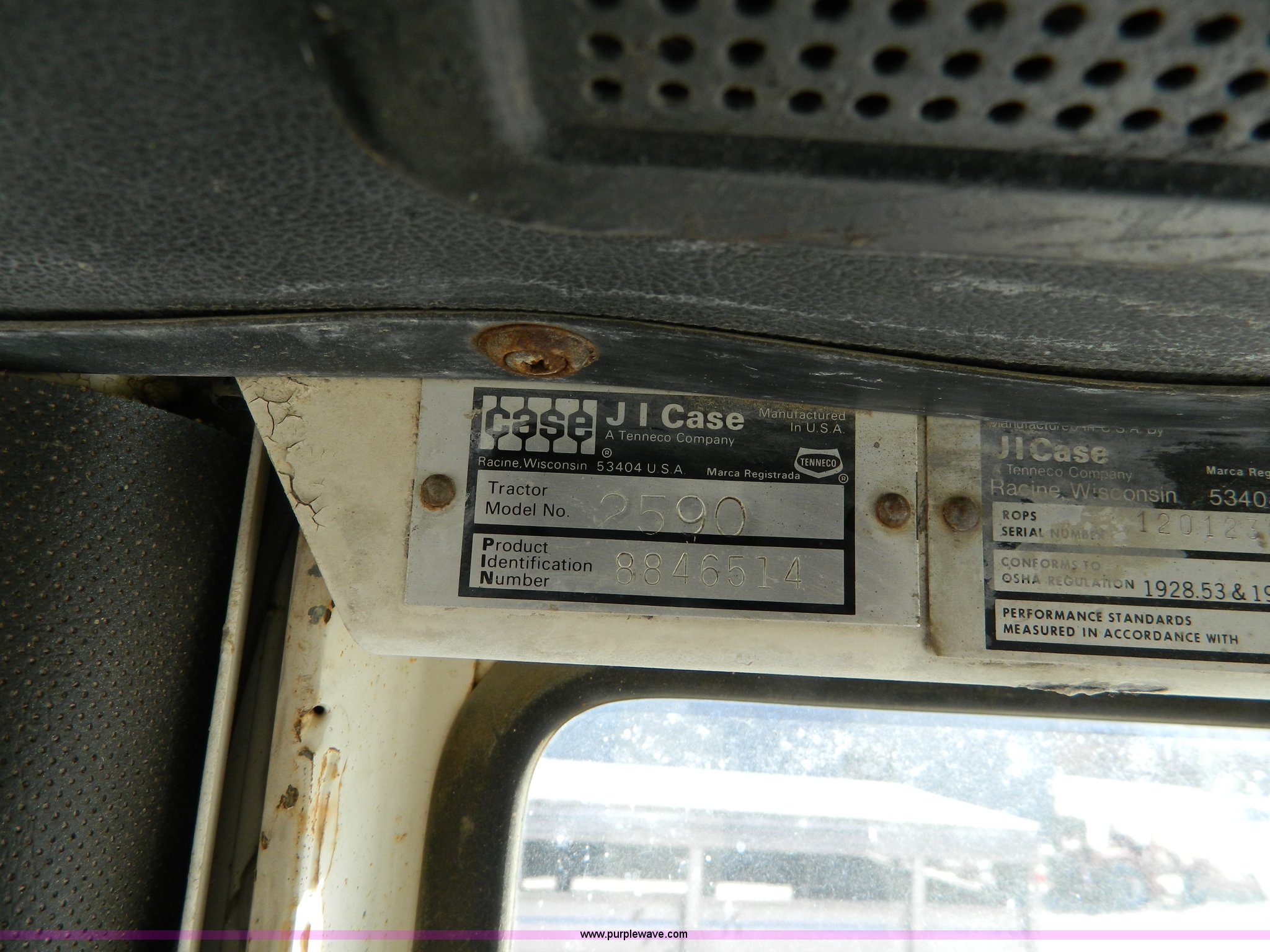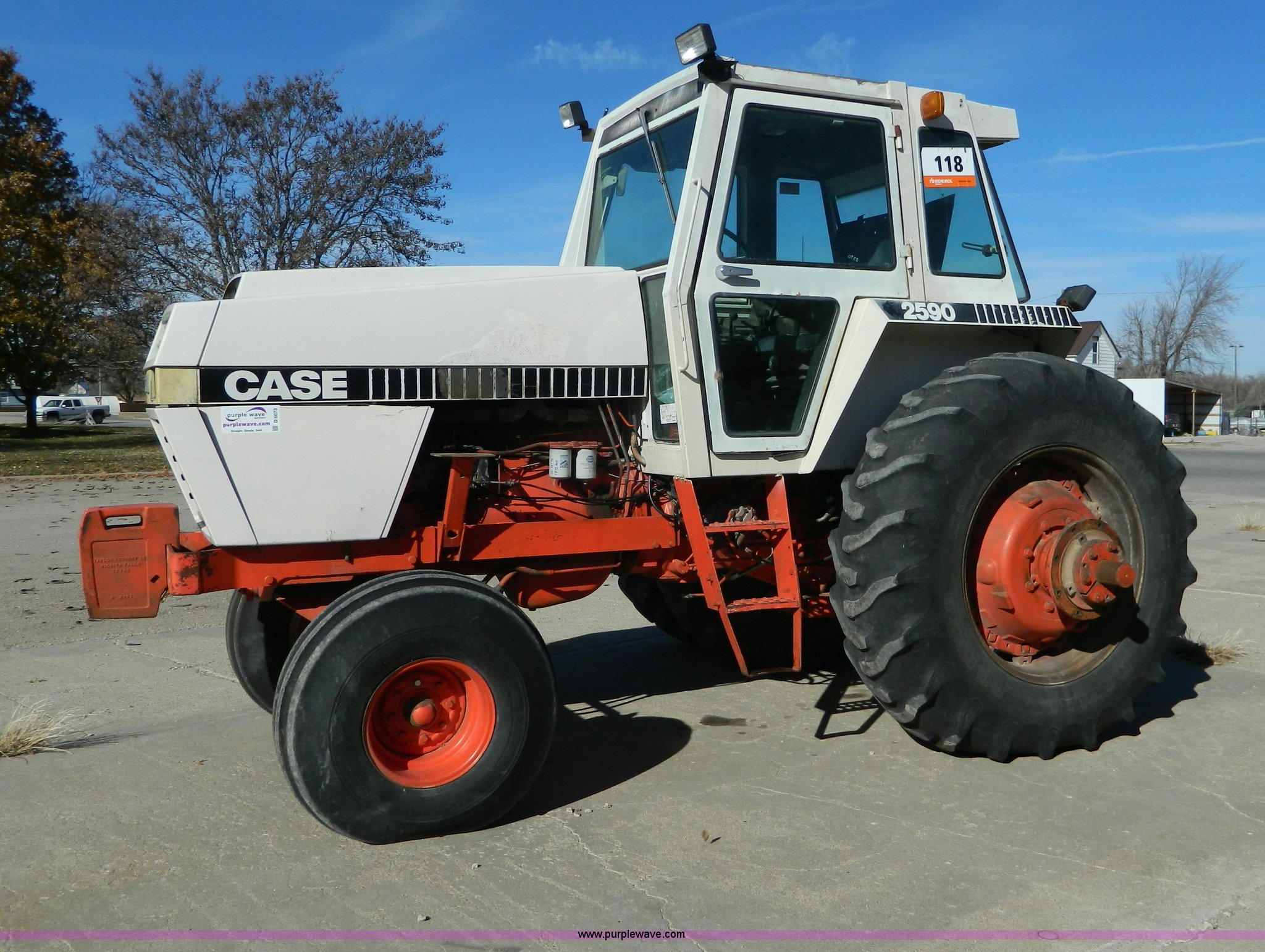 Purple Wave is selling a used Tractor in Kansas. This item is a 1979 Case 2590 tractor with the following: 1,372 hours on meter, Six cylinder diesel engine, Engine is bad, cylinder issues, Serial 10201602, Powershift transmission, 12F-4R gears, AC and heat, Unknown operating condition of AC, Air suspension seat, Three point, Draw bar, 1000 PTO, (2) rear hydraulic remotes, (4) front suitcase weights, Rear inner wheel weights, 14.2-16 front tires, 20.8R38 dual rear tires, Additional tire included, Serial 8846514