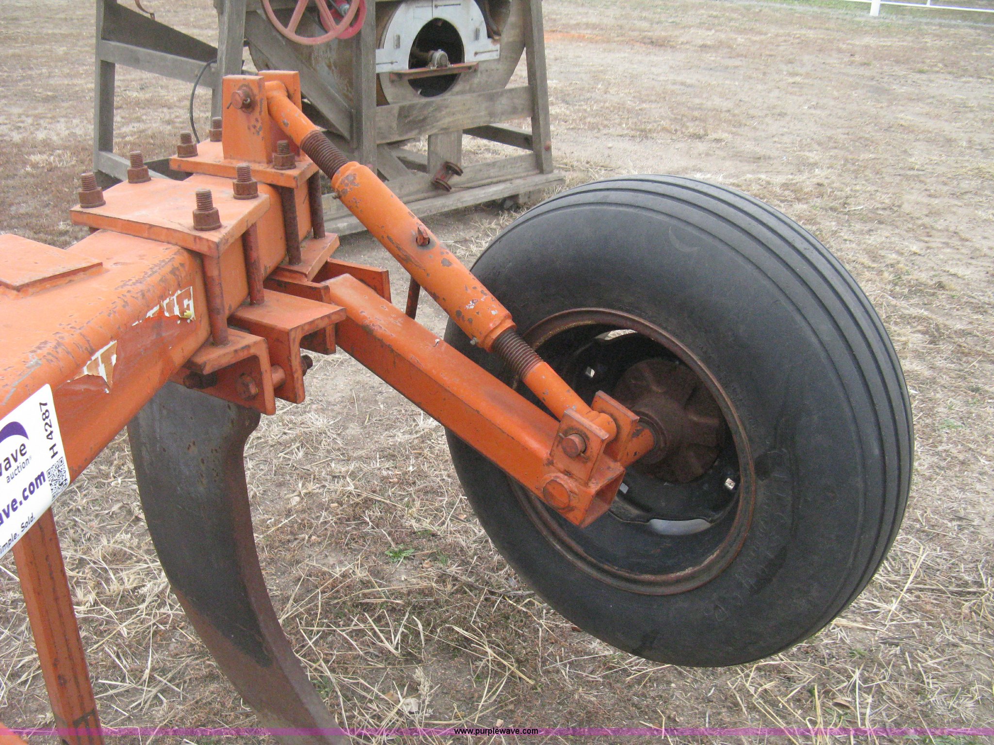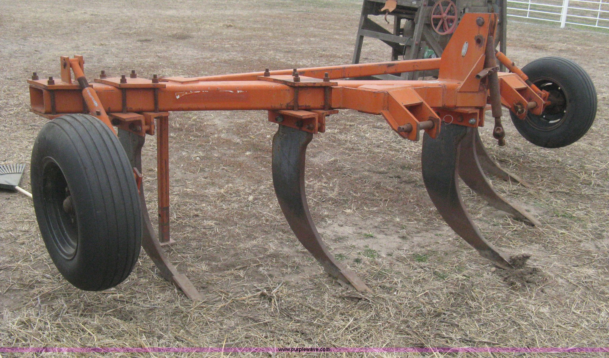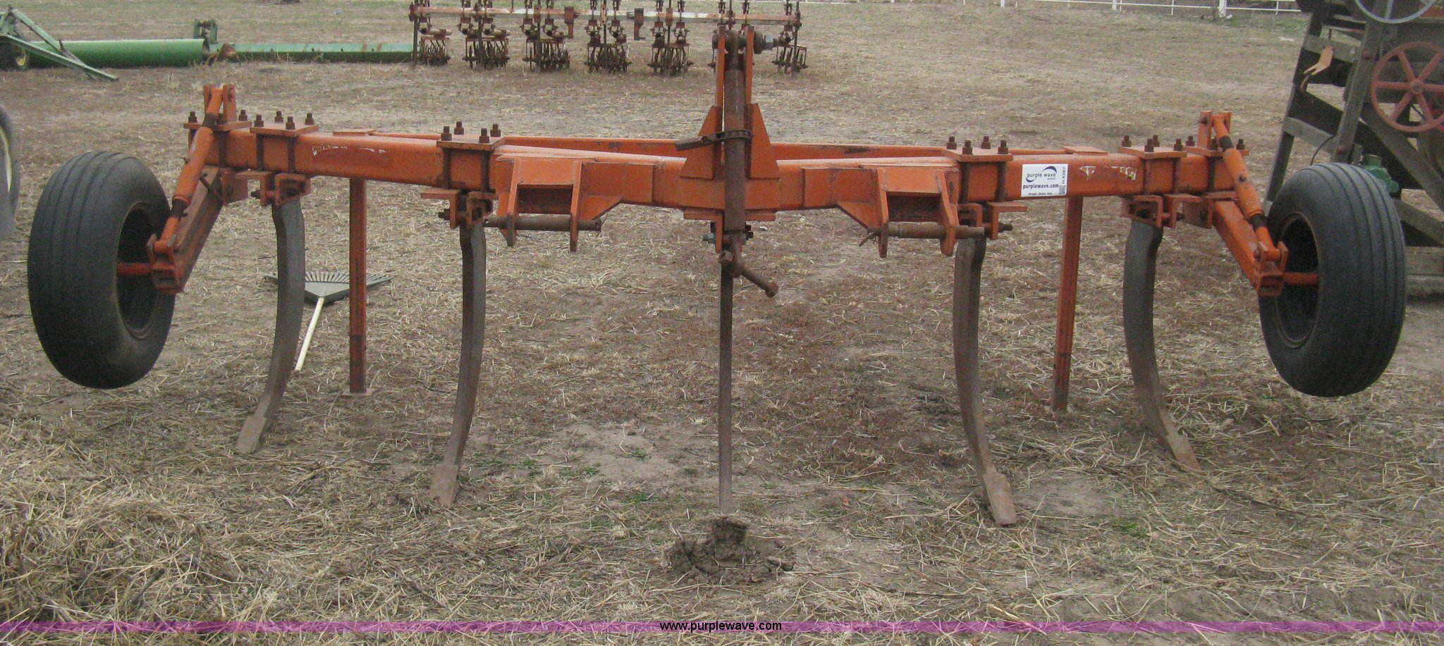 Purple Wave is selling a used Ripper in Kansas. This item is a Tufline VP-5-32-142 v-bar ripper with the following: Three point, Top link, (5) ripper shanks, 143"W coverage, 9.5L-15 tires, Serial 565