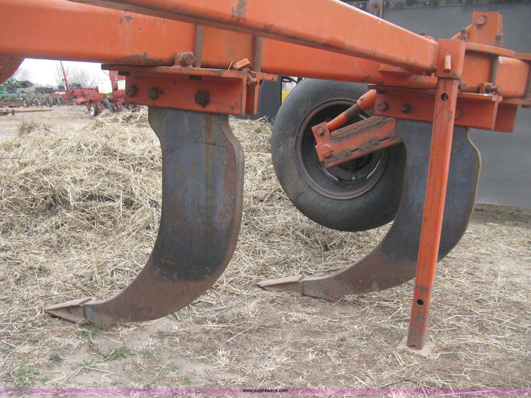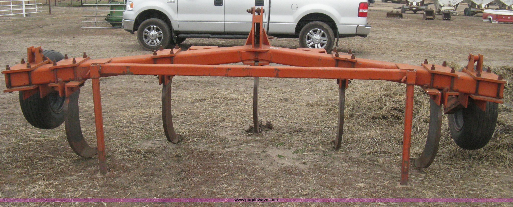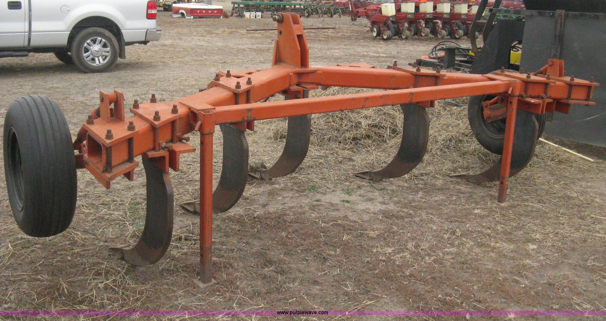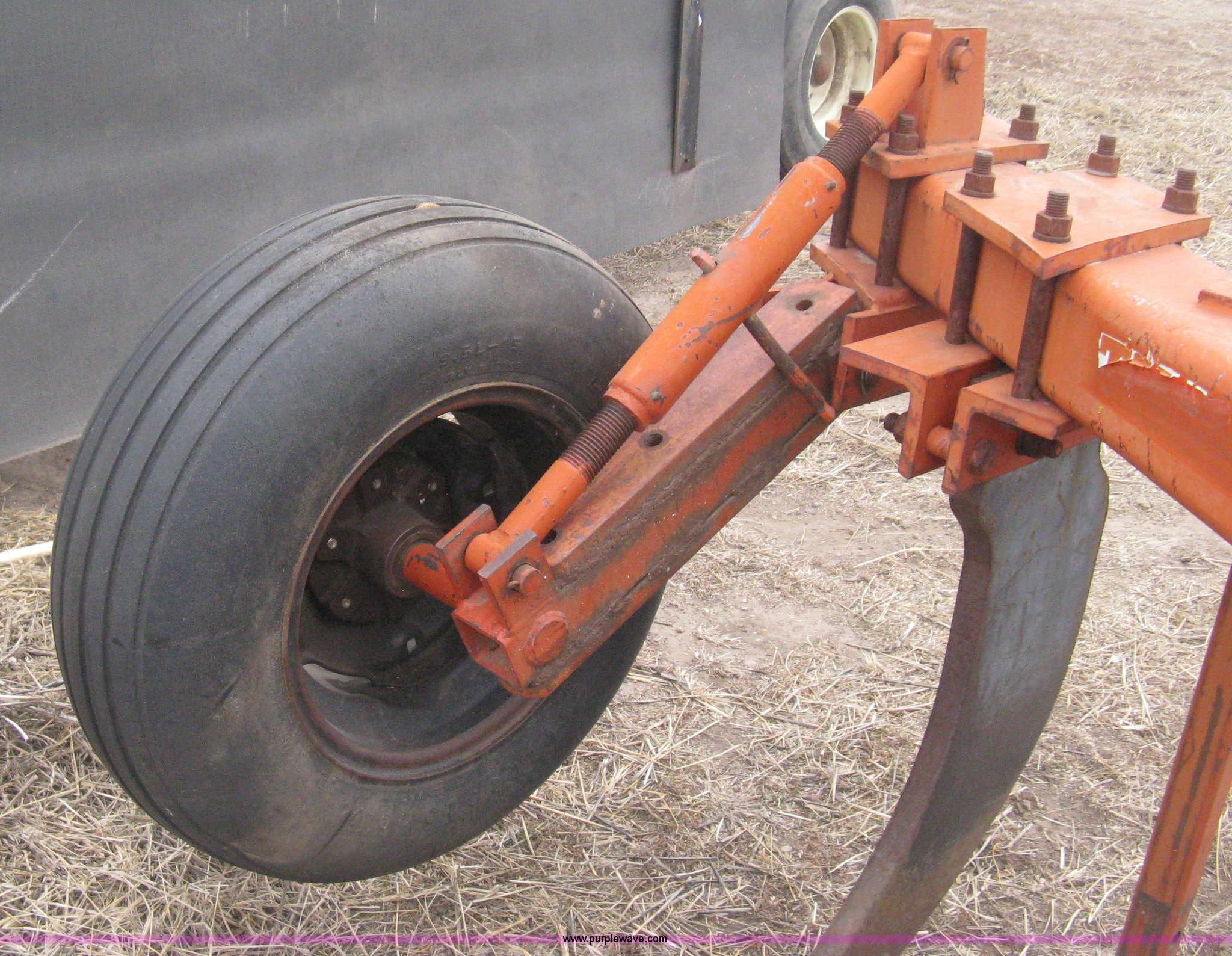 Tufline VP-5-32-142 v-bar ripper. Three point Top link, (5) ripper shanks, 143"W coverage, 9.5L-15 tires, Serial 565. Kinsley, KS 67547