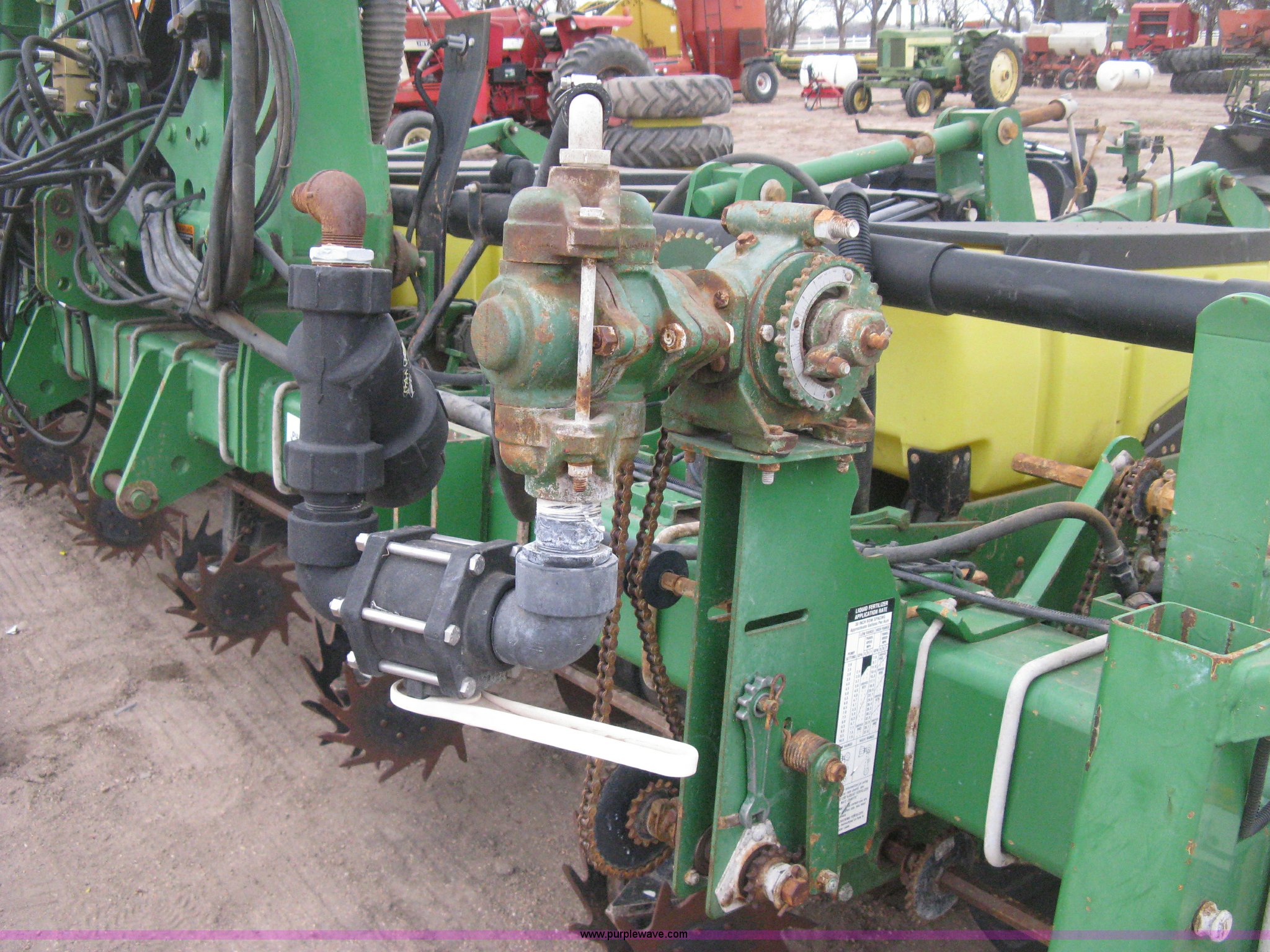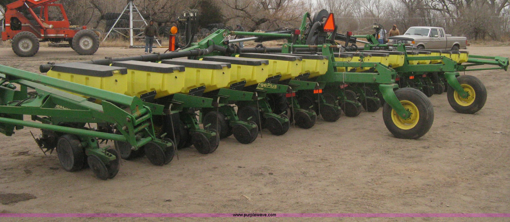 Purple Wave is selling a used Planter in Kansas. This item is a 2003 John Deere 1720 Integral Stack-Fold planter with the following: 16 row, 30" spacing, Max Emerge Plus Vacu Meter row units, Hydraulic stack-fold, (2) hydraulic fold-marker arms, Three point, Rear lift assist kit, Adjustable twin closing wheels, Groff-Ag row cleaners, Seed Star equipped, In-cab monitors, Partial liquid fertilizer system, Damaged, 9.5L-15SL lift assist tires, Serial H01720R685152
