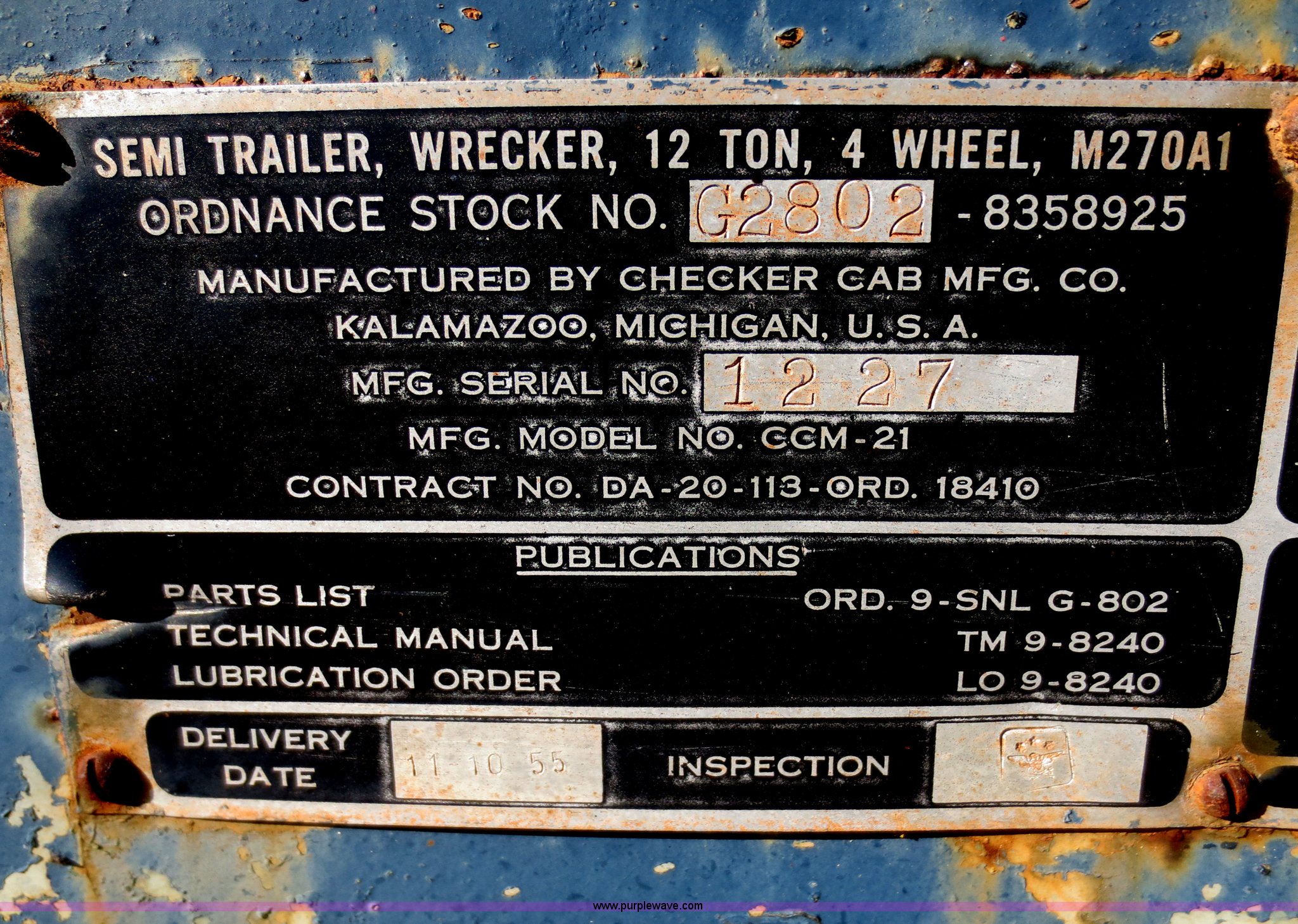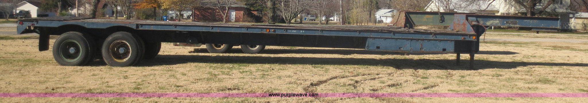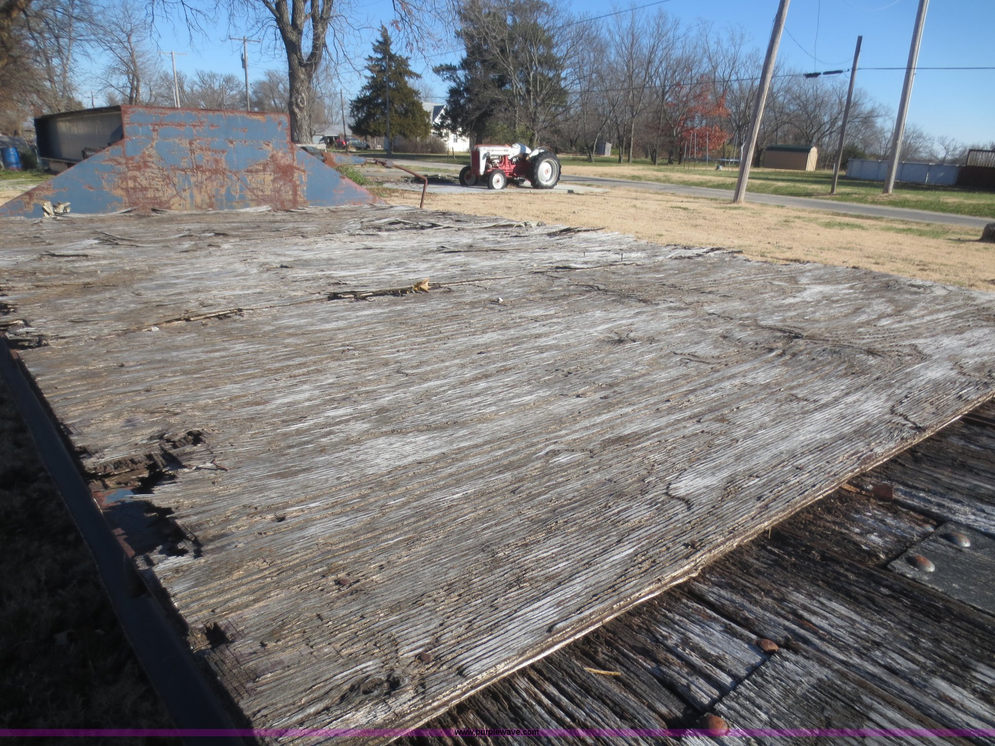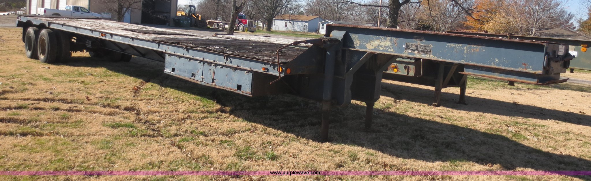 Purple Wave is selling a used Flat or Drop Deck Trailer in Kansas. This item is a 1978 Checker Cab CCM-21 flatbed trailer with the following: 49' overall length, 96" overall width, Wood deck, Needs replaced, Storage box, 12 ton capacity, Spring suspension, Air over hydraulic brakes, 9.00-20 tires