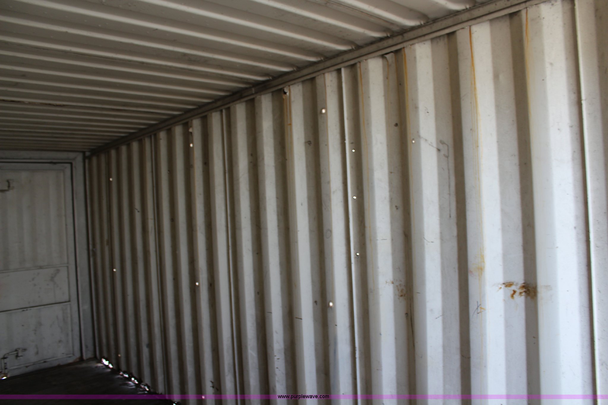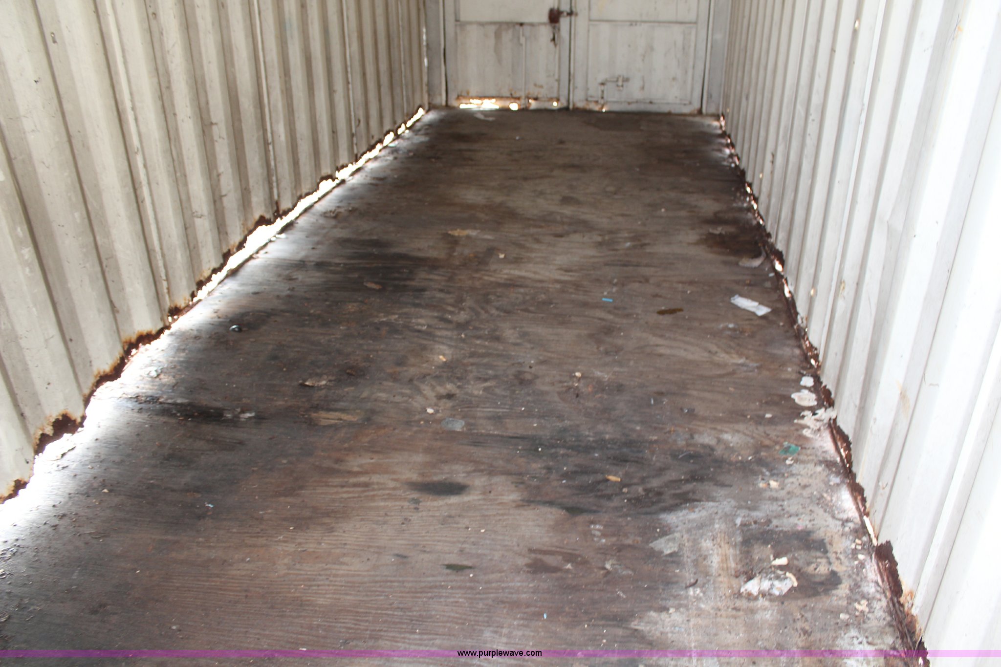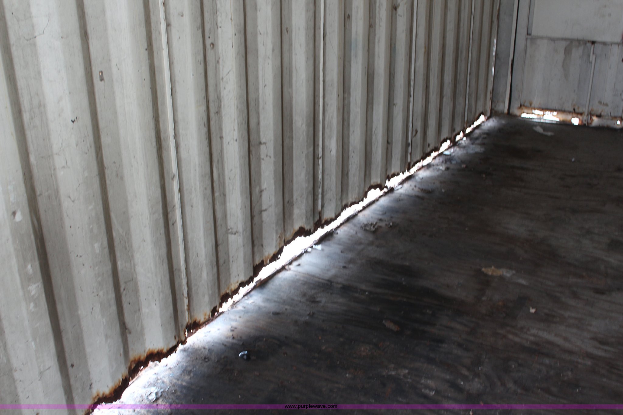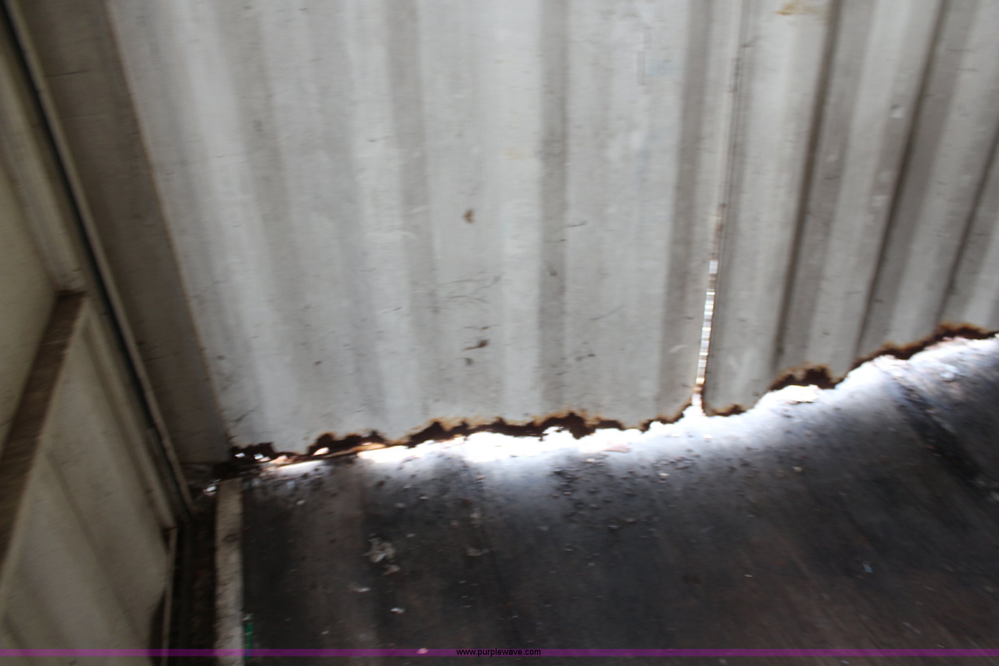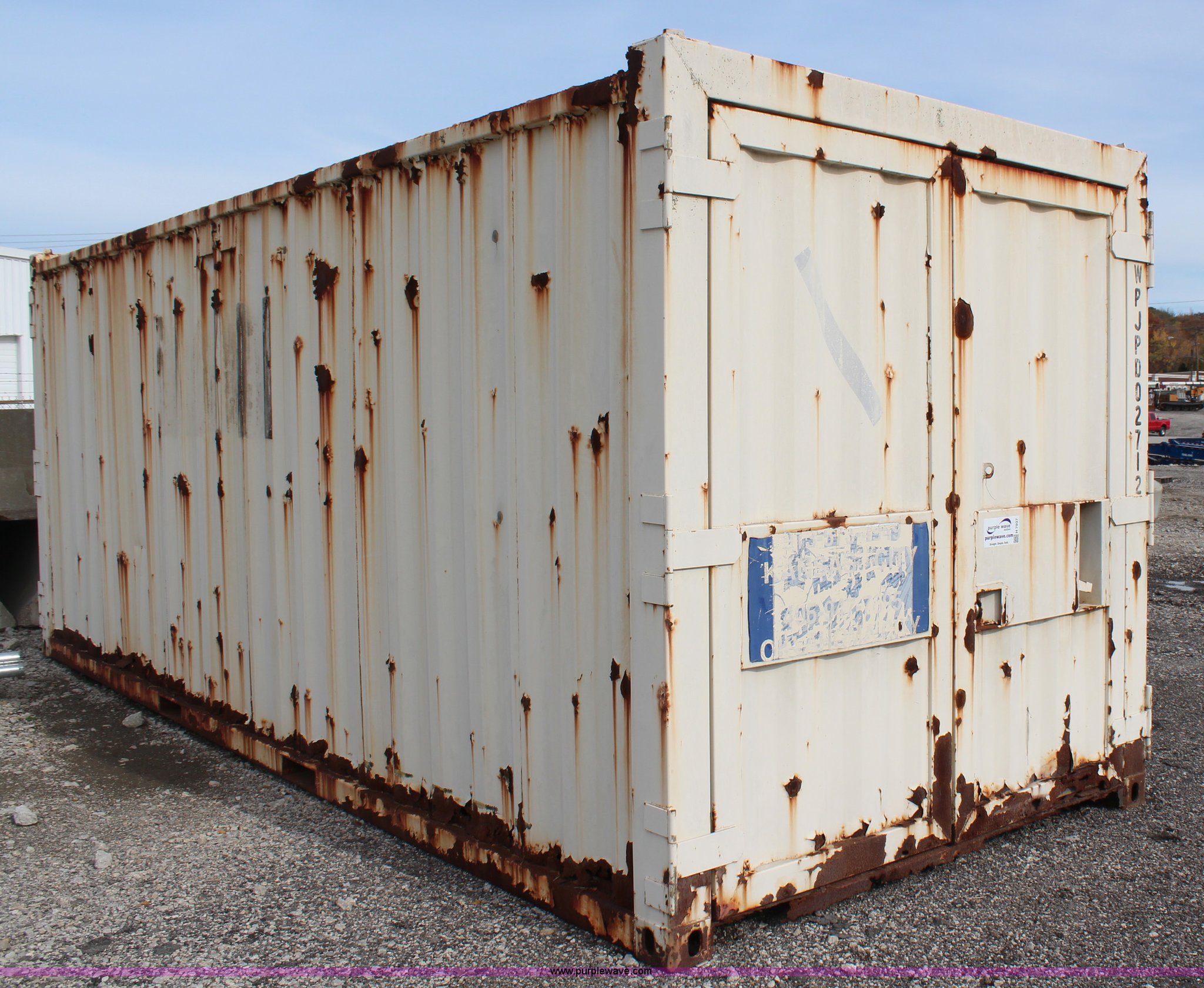 Purple Wave is selling a used Storage or Shipping Container in Kansas. This item is a Storage container with the following: 22'L x 8'W x 8.5'H, Dual end doors, Sides are rusted through on the bottom, Serial WPJM002712