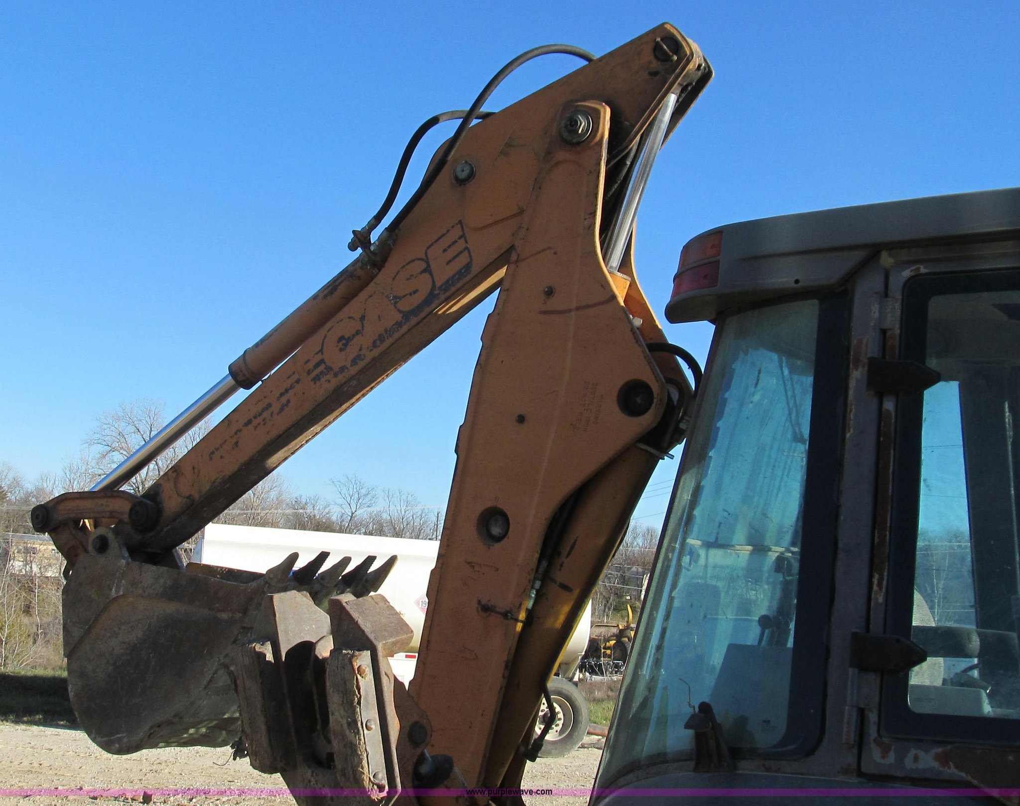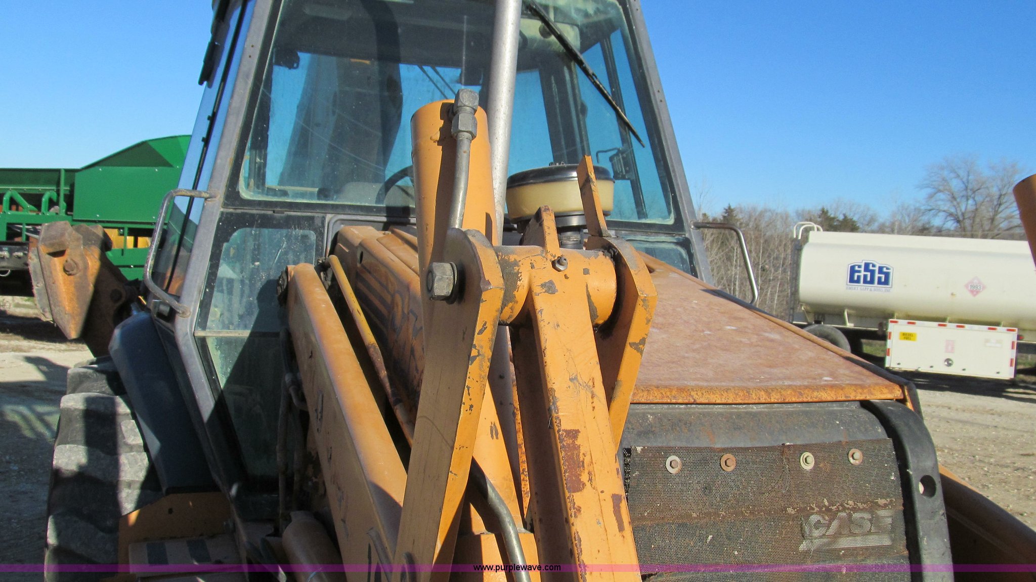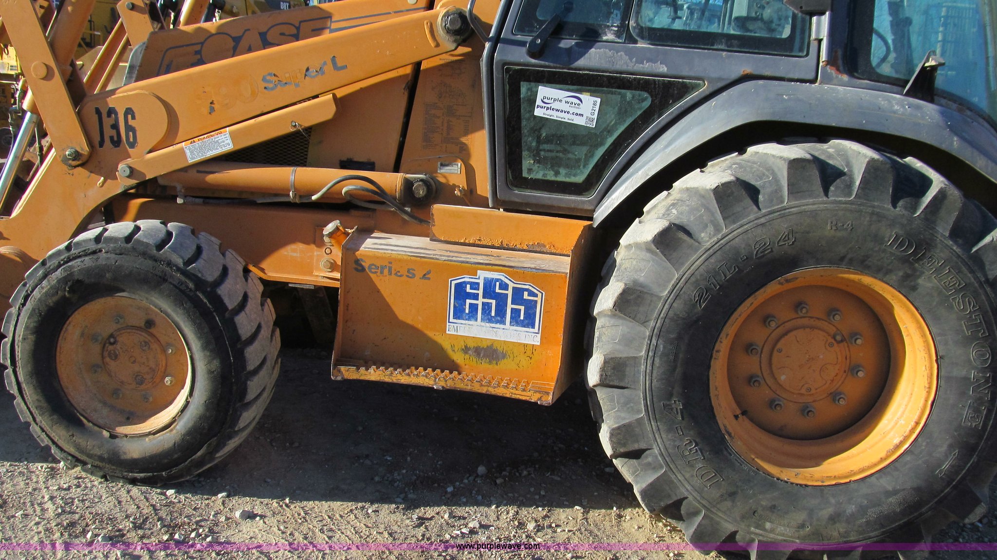 Purple Wave is selling a used Tractor Loader Backhoe in Missouri. This item is a 2001 Case 590 Super L backhoe with the following: 7,467 hours on meter, Case 4T-390 four cylinder turbo diesel engine, 95 HP at 2,200 RPM, Shuttle shift four speed transmission, Fully synchronized, Four wheel drive, Enclosed cab, AC and heat, AM/FM/cassette, Hand and foot throttle controls, Single lever control for front loader, Three lever backhoe controls, 93"W bucket, Bolt-on cutting edge, 24"W backhoe bucket, (5) teeth, Foot pedal control for swing, Outriggers, Two lever control, Auxiliary hydraulics, 14-17.5 foam-filled front tires, 21L-24 rear tires, 15,370 lbs. base operating weight, Serial JJG0285832, Unit# 45-640
