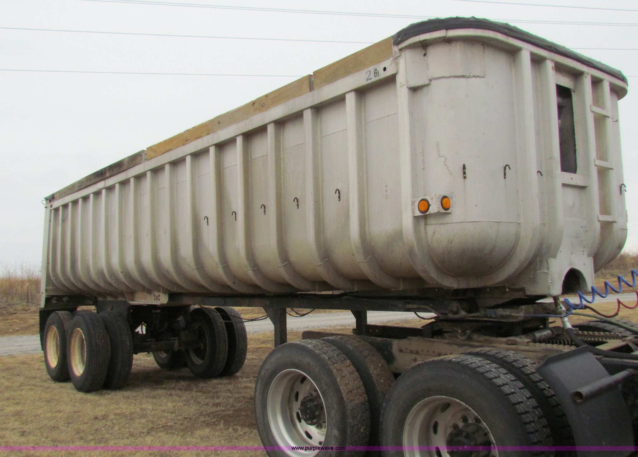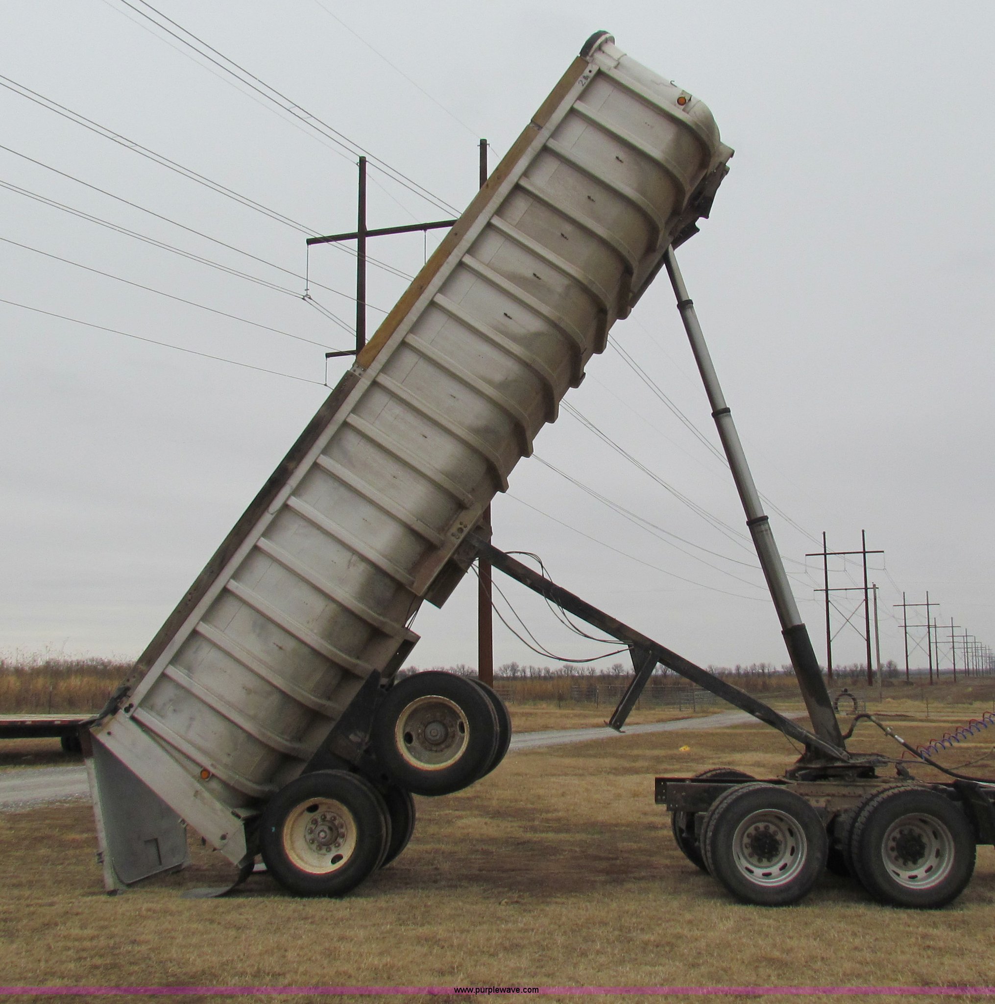 Purple Wave is selling a used End Dump Rock Trailer in Kansas. This item is a 1980 shop built 28' aluminum barrel end dump trailer with the following: Four stage lift cylinder, Spring suspension, Air brakes, 11R24.5 tires, Recently replaced air valve and brakes on front axle