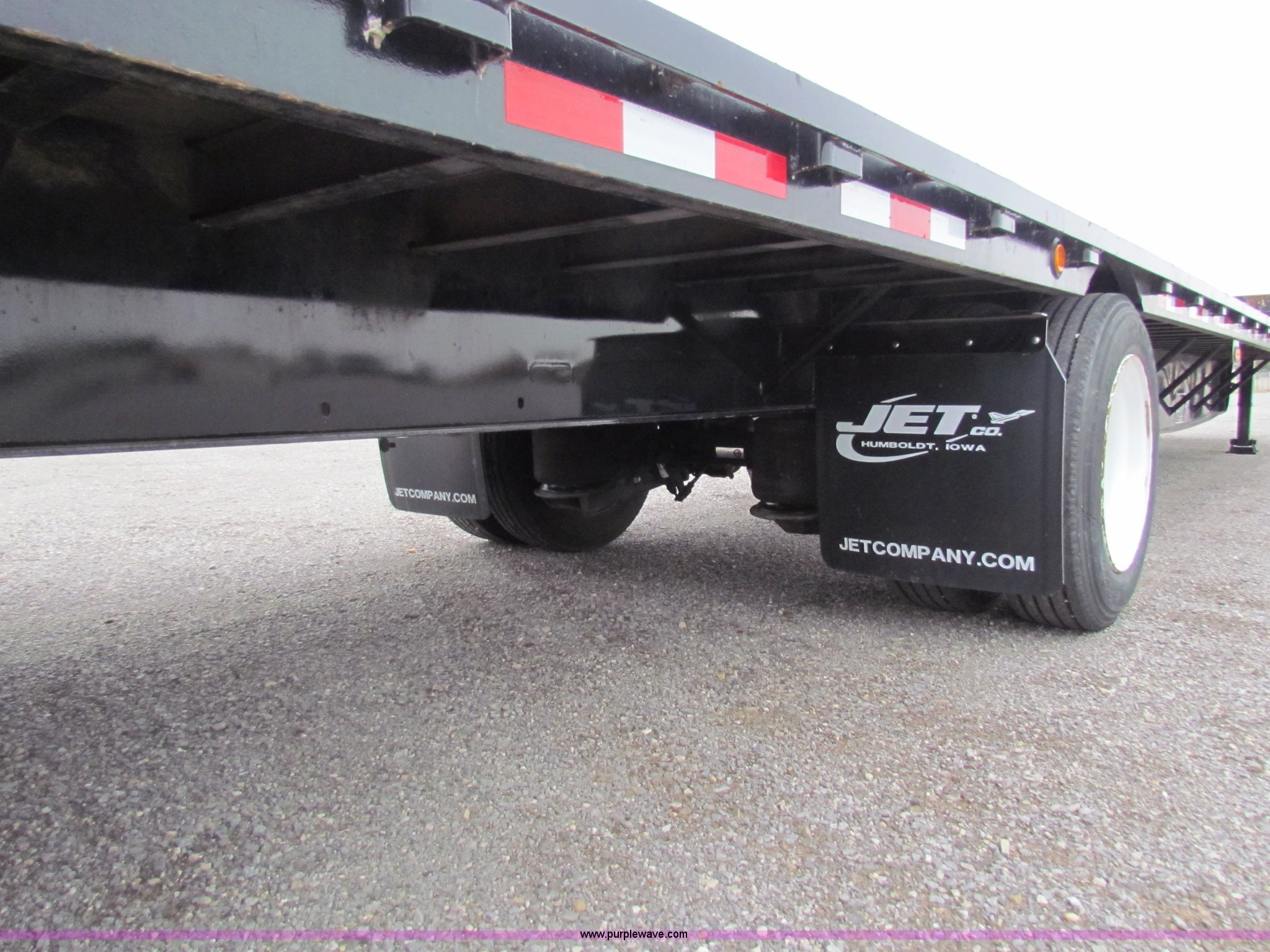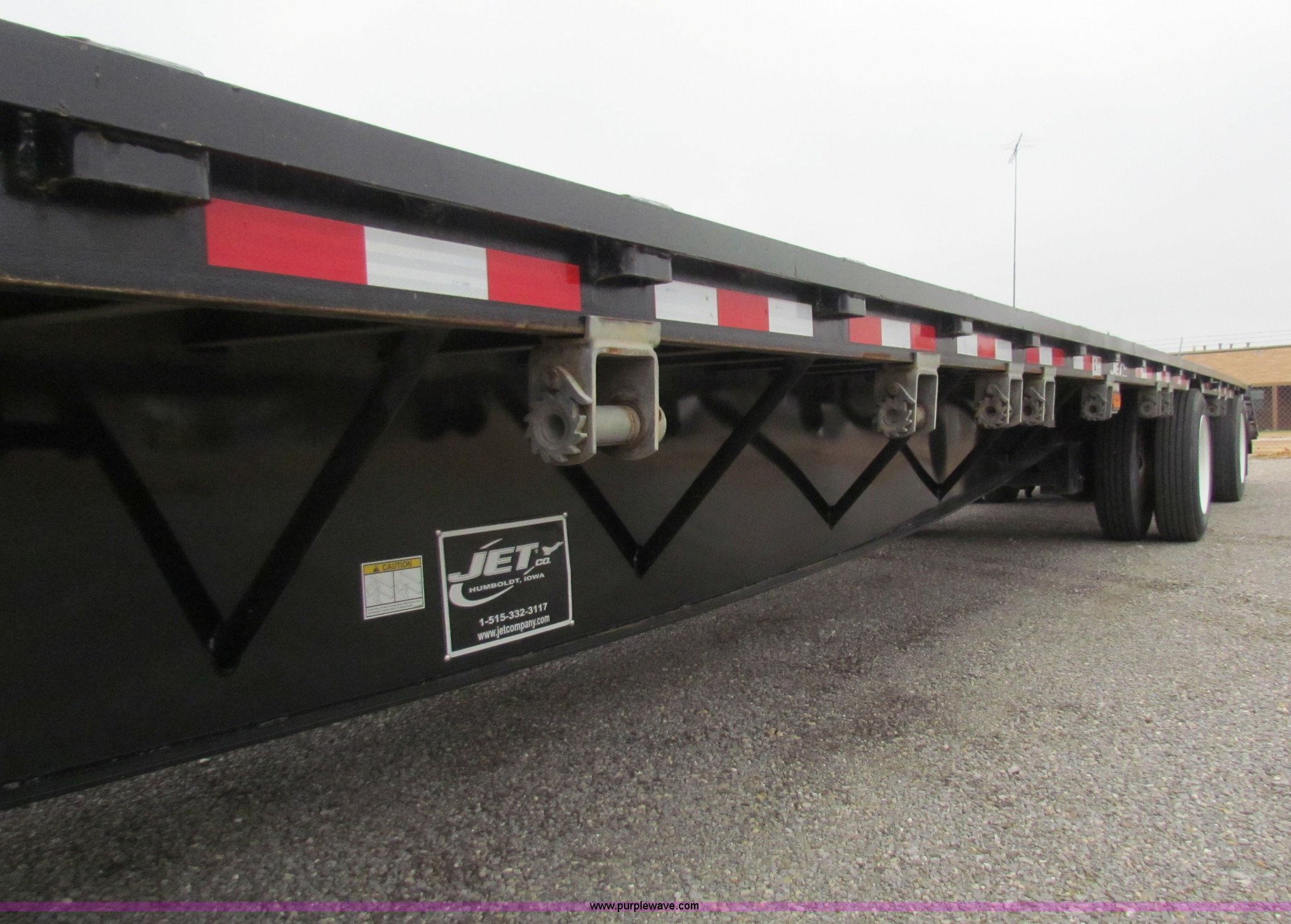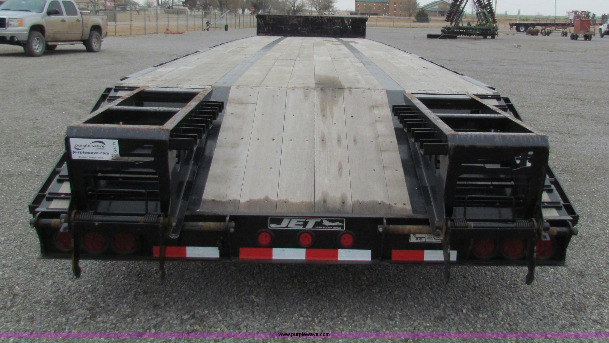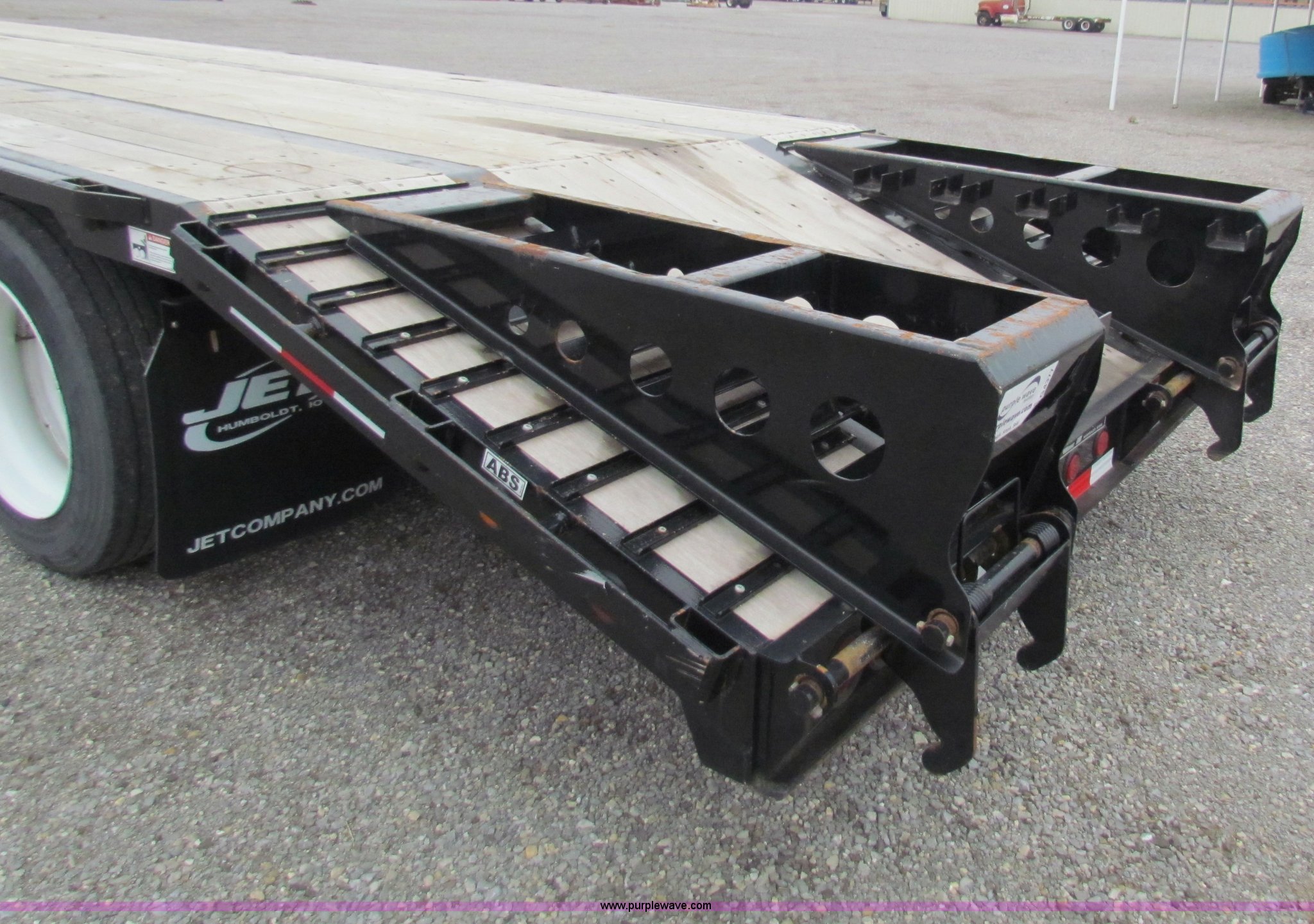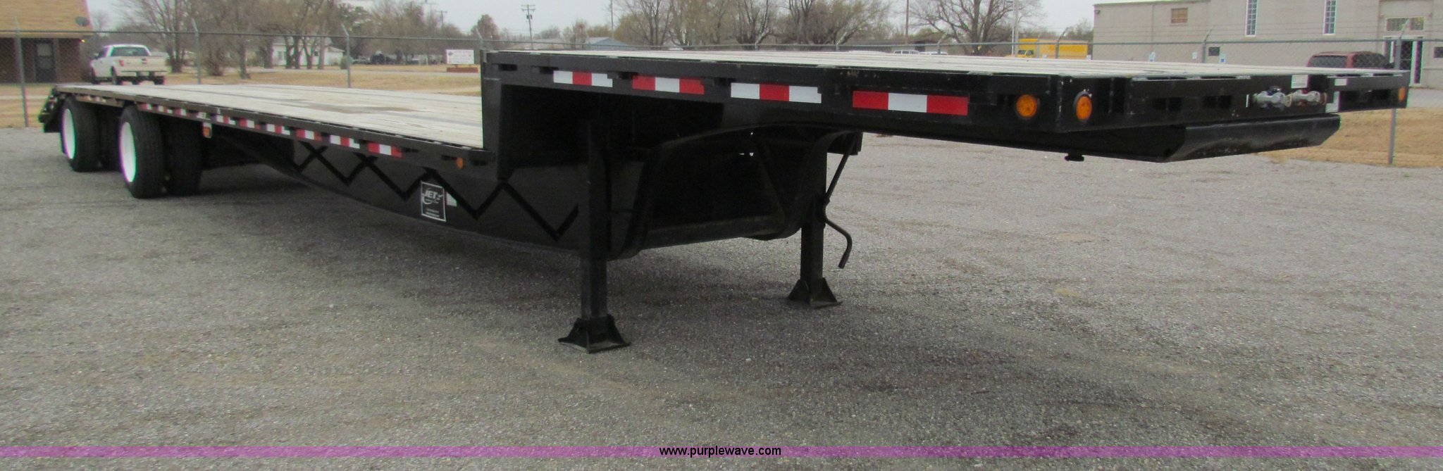 Purple Wave is selling a used Flat or Drop Deck Trailer in Oklahoma. This item is a 2012 Jetco 531 step deck trailer with the following: 37'L flat deck, 11'L upper deck, 5'L dovetail, 102"W, Folding ramps, Wood floor, (10) racket strap tie downs, LED lights, Spread axle, Mud flaps, Air suspension, Air brakes, 255/70R22.5 tires, GVWR 80,000 lbs