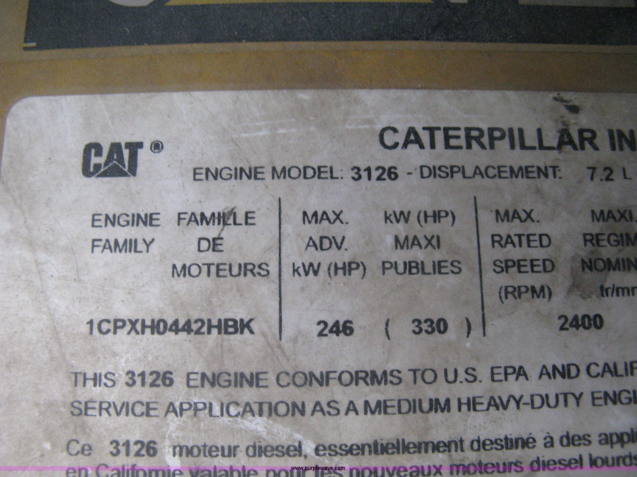 - Caterpillar 3126 7.2L diesel engine