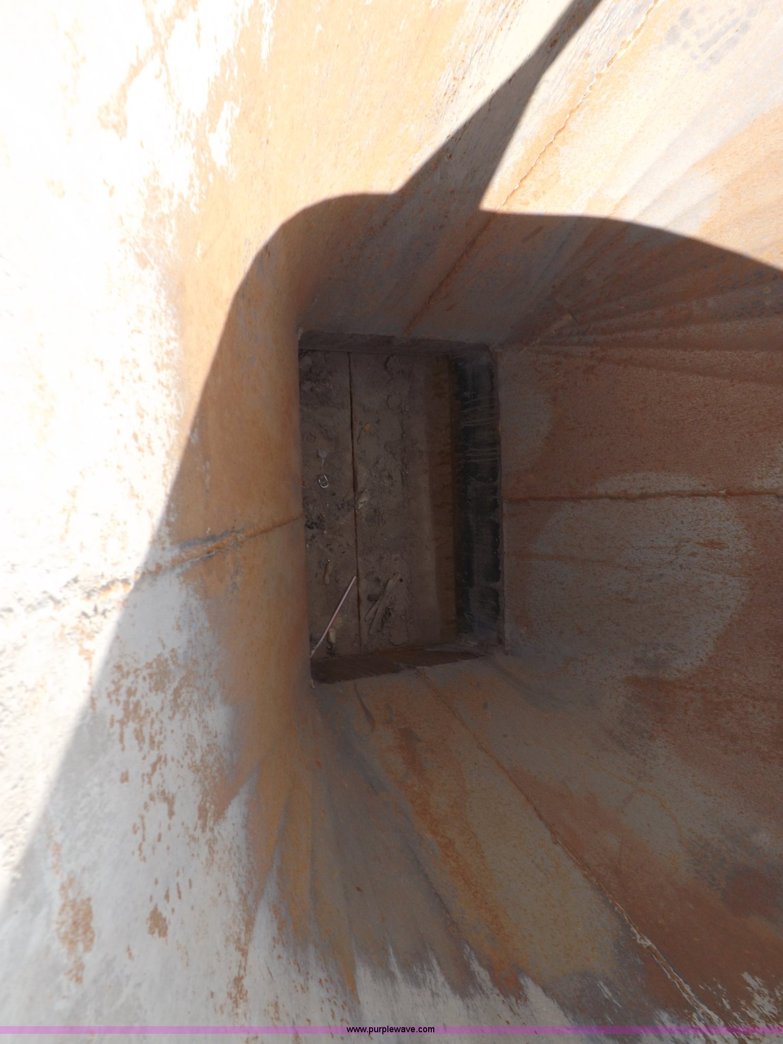 Gar Bro concrete bucket. 7,200 lbs max gross weight, 57" diameter x 51"H hopper, 4" x 6" lifting eye, 15" x 22" hopper dump, Spring close hopper Single handle, Truck chute cleaner, DWG# 64-61, Item# 433G. Gray County Road and Bridge. 915 N Main. Cimarron, KS 67835