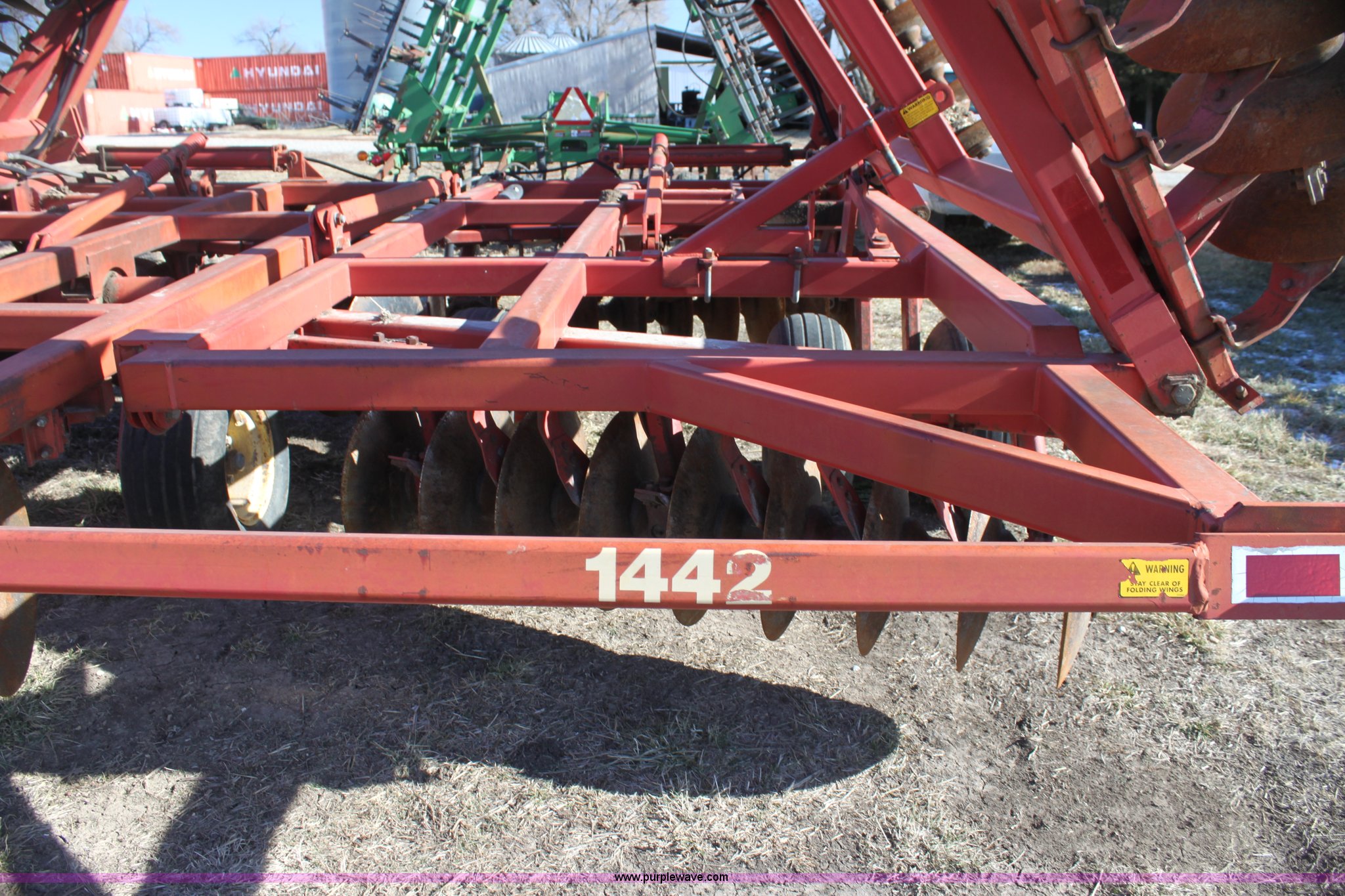 Sunflower 1442-29 G-flex folding disk. 29'W, 22.5" front blades, 21" rear blades, Blade scrapers, 11L-15SL tires, Lift cylinders have been rebuilt. Emporia, KS 66801