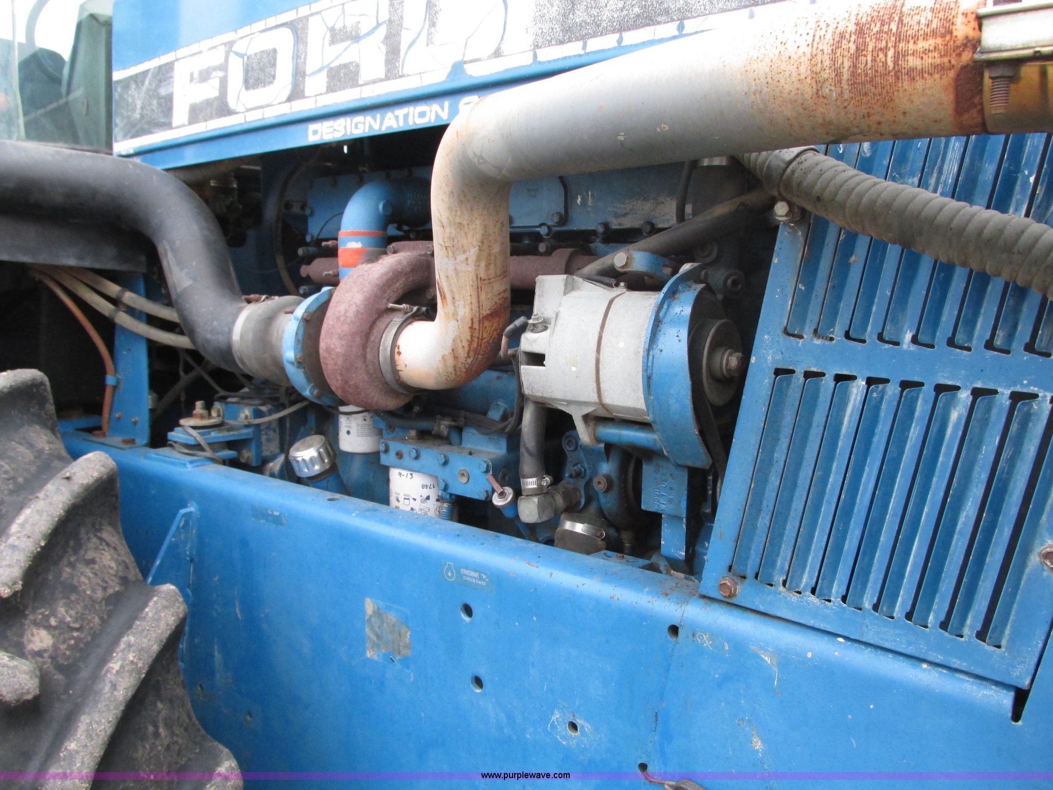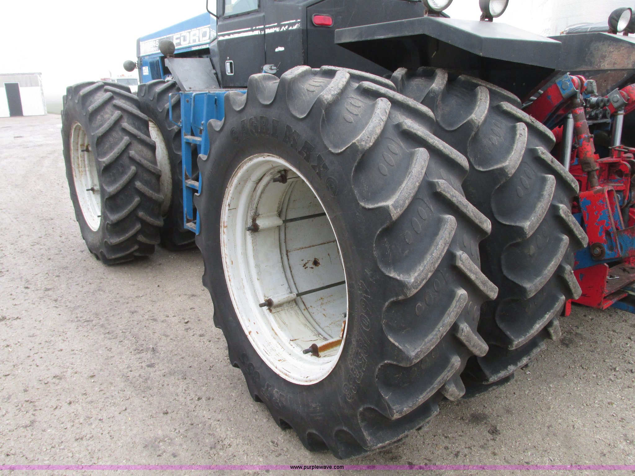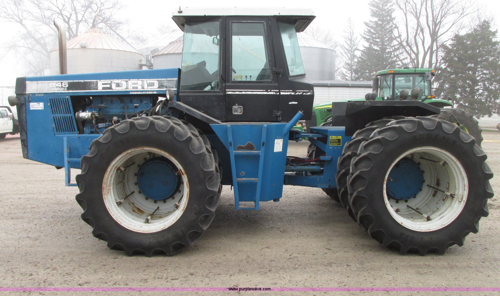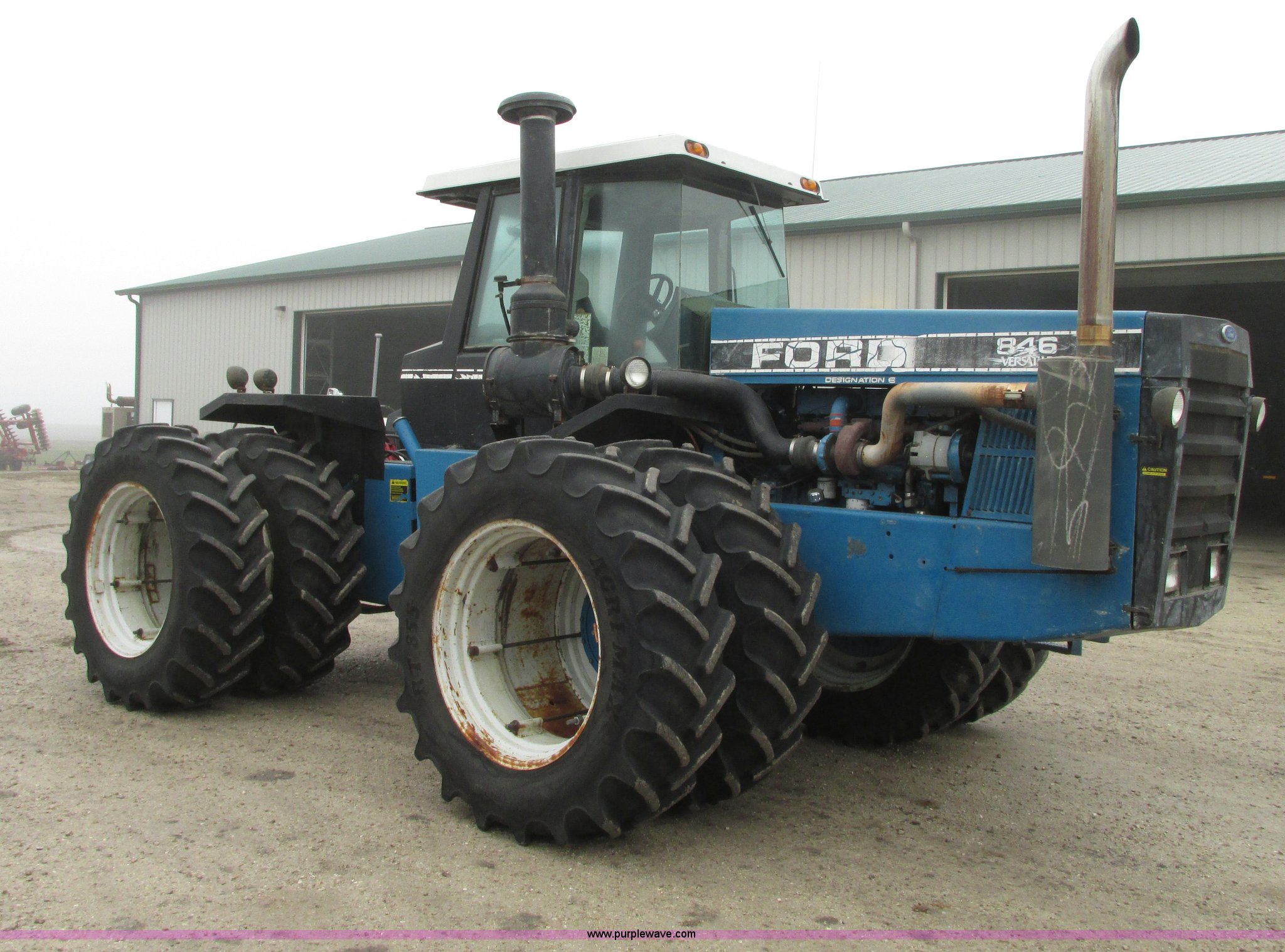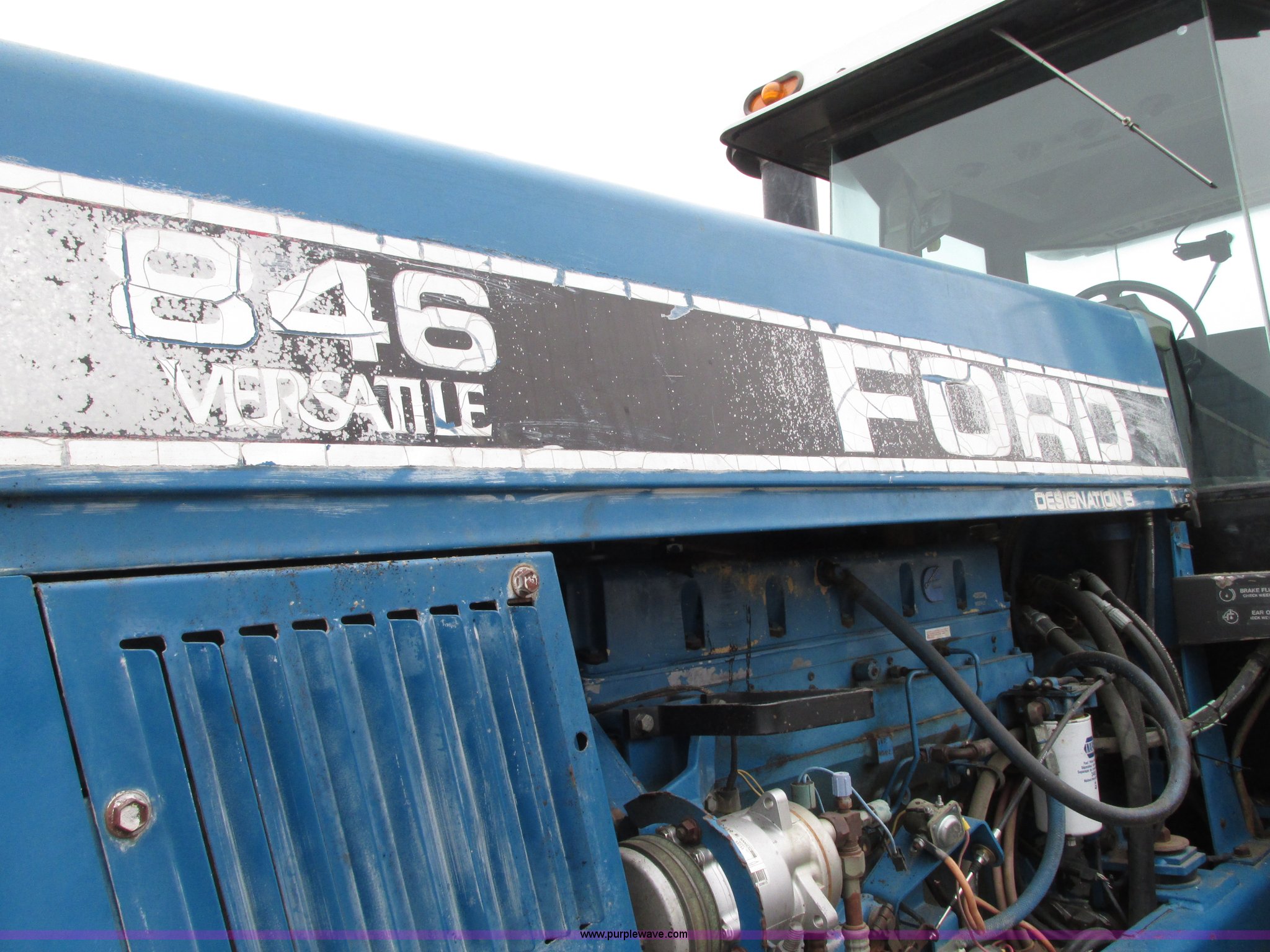 Purple Wave is selling a used Articulated 4-Wheel Drive Tractor in Illinois. This item is a 1991 Ford 846 Versatile 4WD tractor with the following: 6,281 hours on meter, Cummins L10 611 C.I.D. six cylinder diesel engine, 230 HP, Serial 34643734, Manual transmission, 12F-3R gears, AC and heat, AM/FM/cassette, Spring suspension seat, Tilt steering wheel, Work lights, Three point, Quick attach, Category 4, Draw bar, (4) rear hydraulic remotes, 460/85R38 dual tires, Possible LCD dash display issues, Main center articulating pin replaced November 2013, Serial D475979