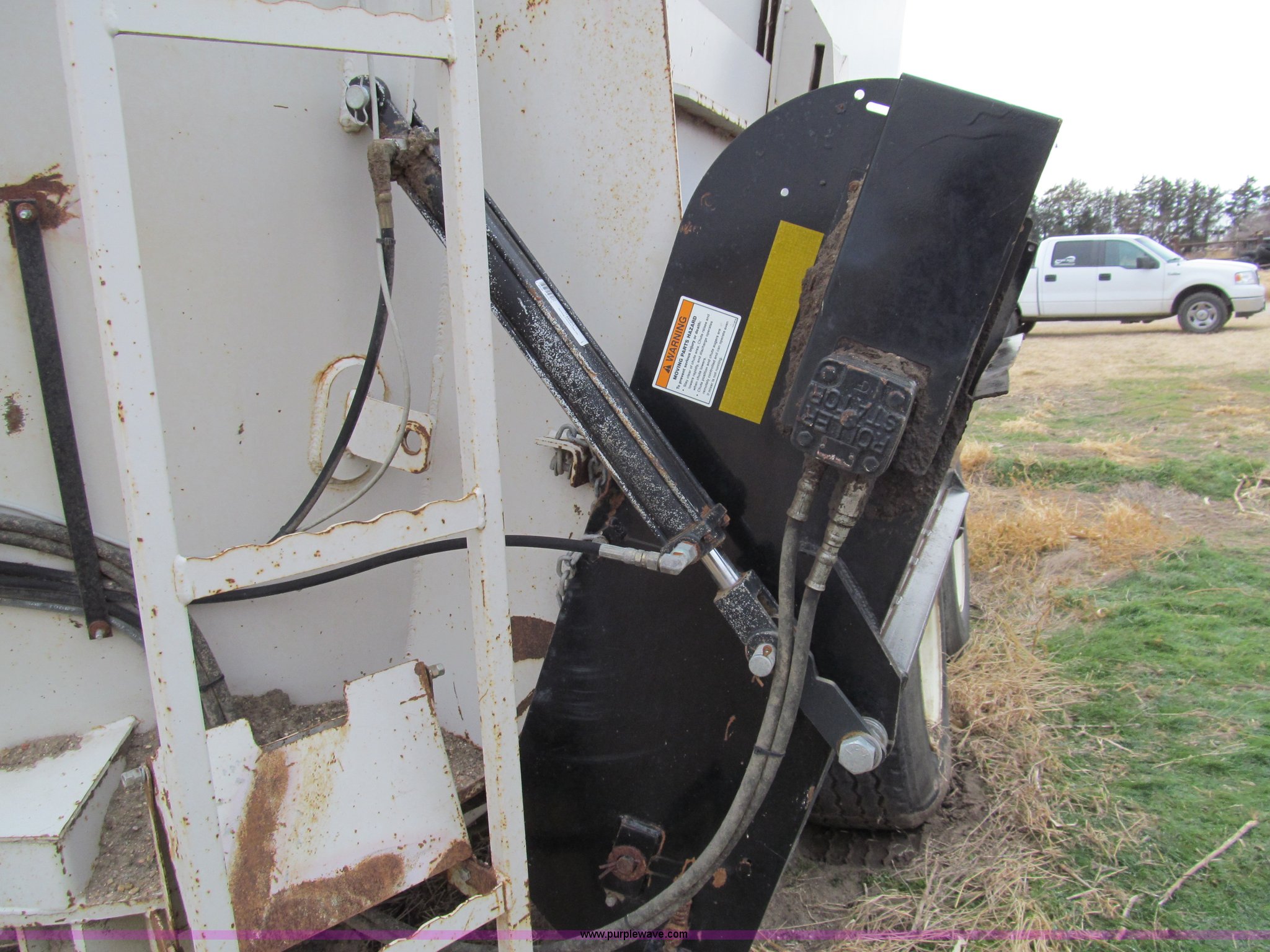Purple Wave is selling a used Feed Mixer or Bale Processor in Kansas. This item is a Kuhn Knight Vertical Maxx 51100 mixer with the following: Left hand discharge, 1000 PTO, Monitor, Weigh bars, Pin hitch, Tandem axle, 385/65R22.5 tires