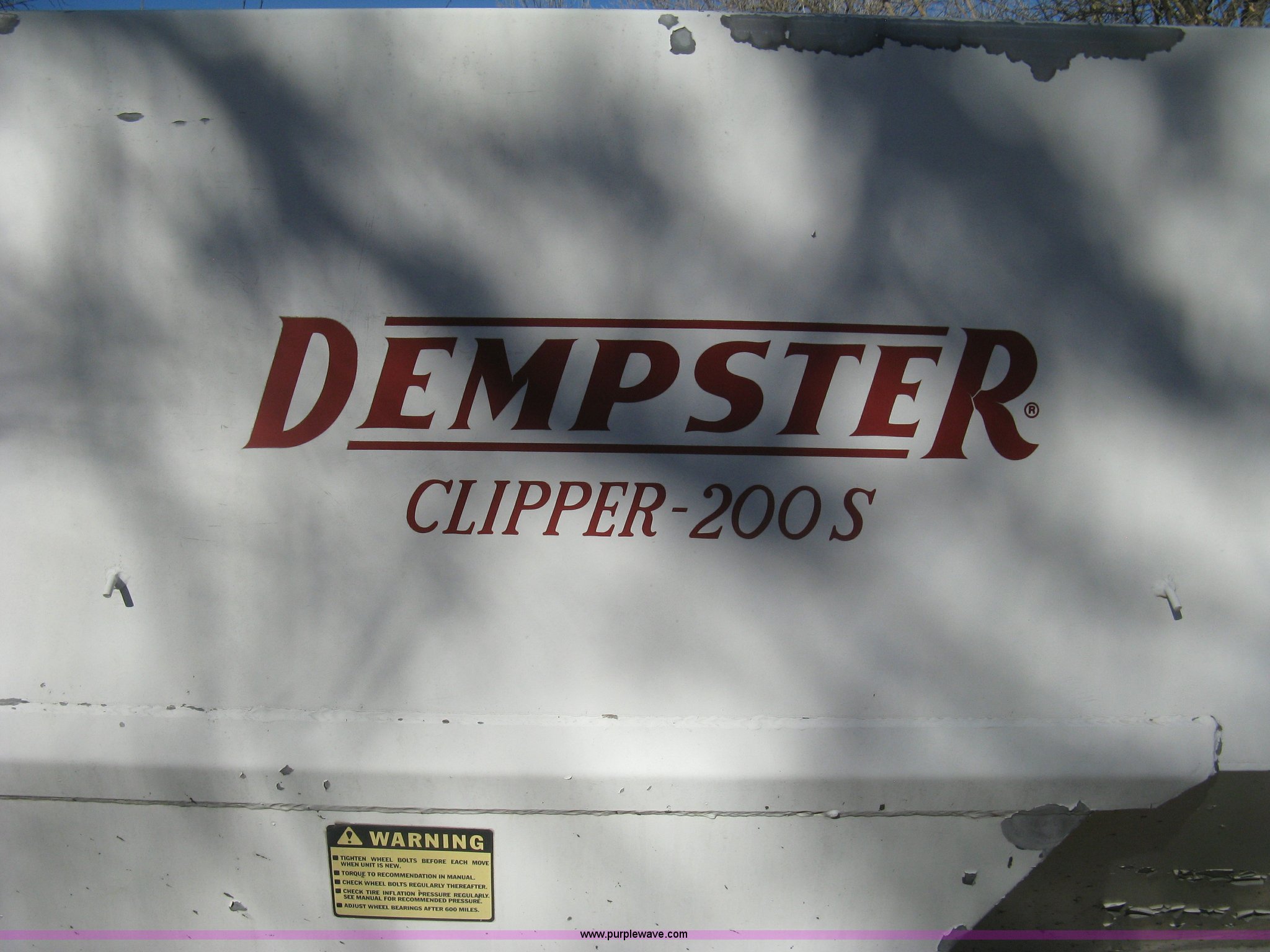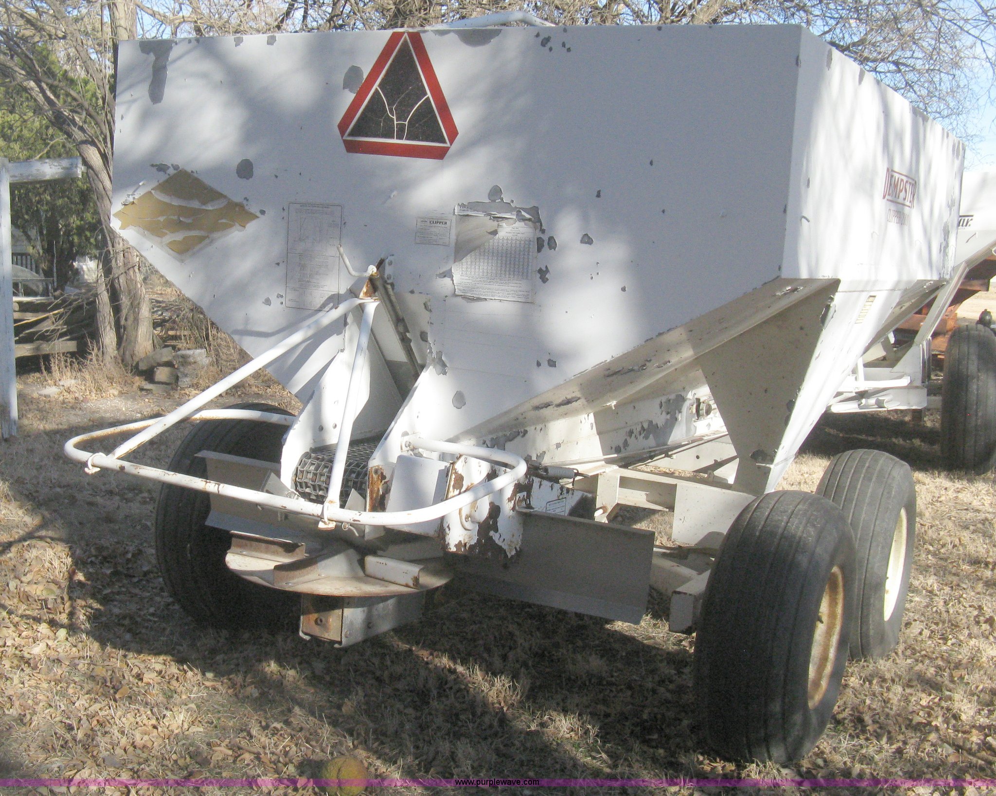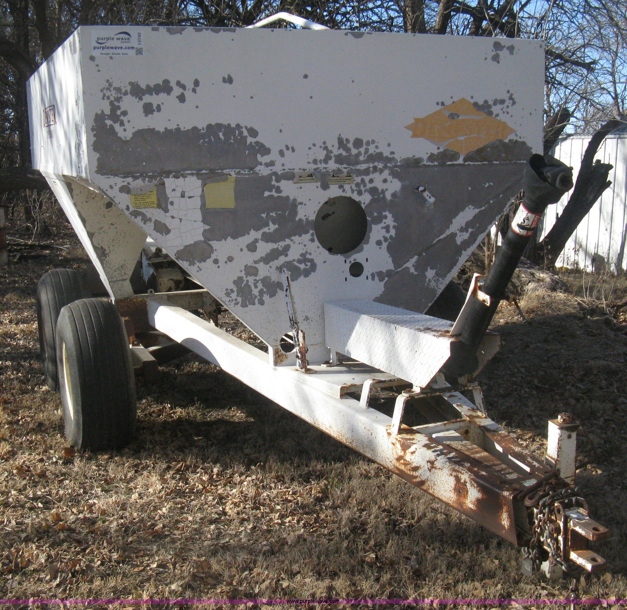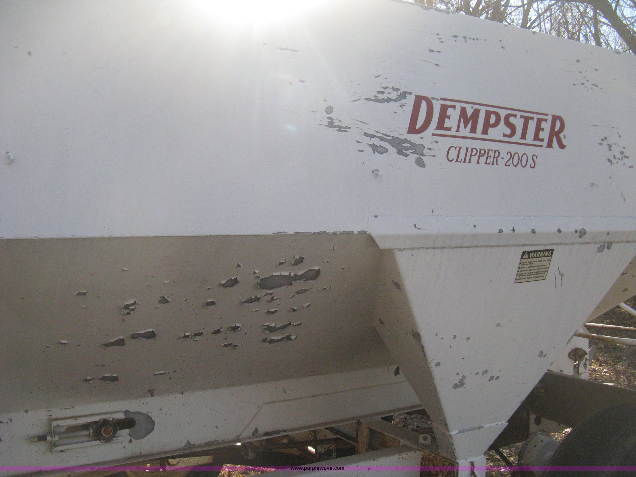 Purple Wave is selling a used Fertilizer or Seed Tender in Kansas. This item is a Dempster Clipper 200S dry fertilizer spreader with the following: 540 PTO drive spinner, Single disk broadcaster, Ground drive walking floor, Shaft drive, Pin hitch, Tandem axle chassis, 12.5L-15SL tires, Paint peeling, Serial 95102