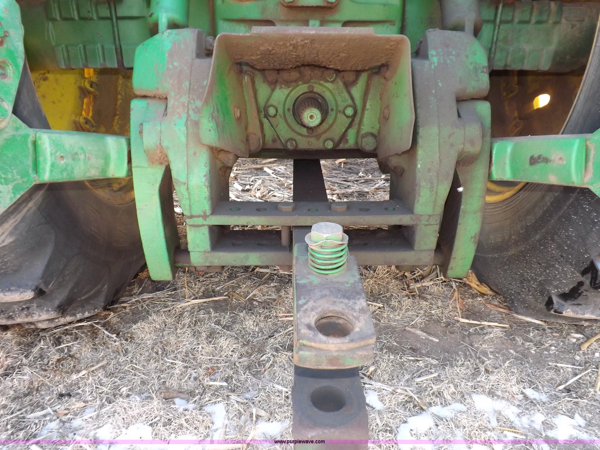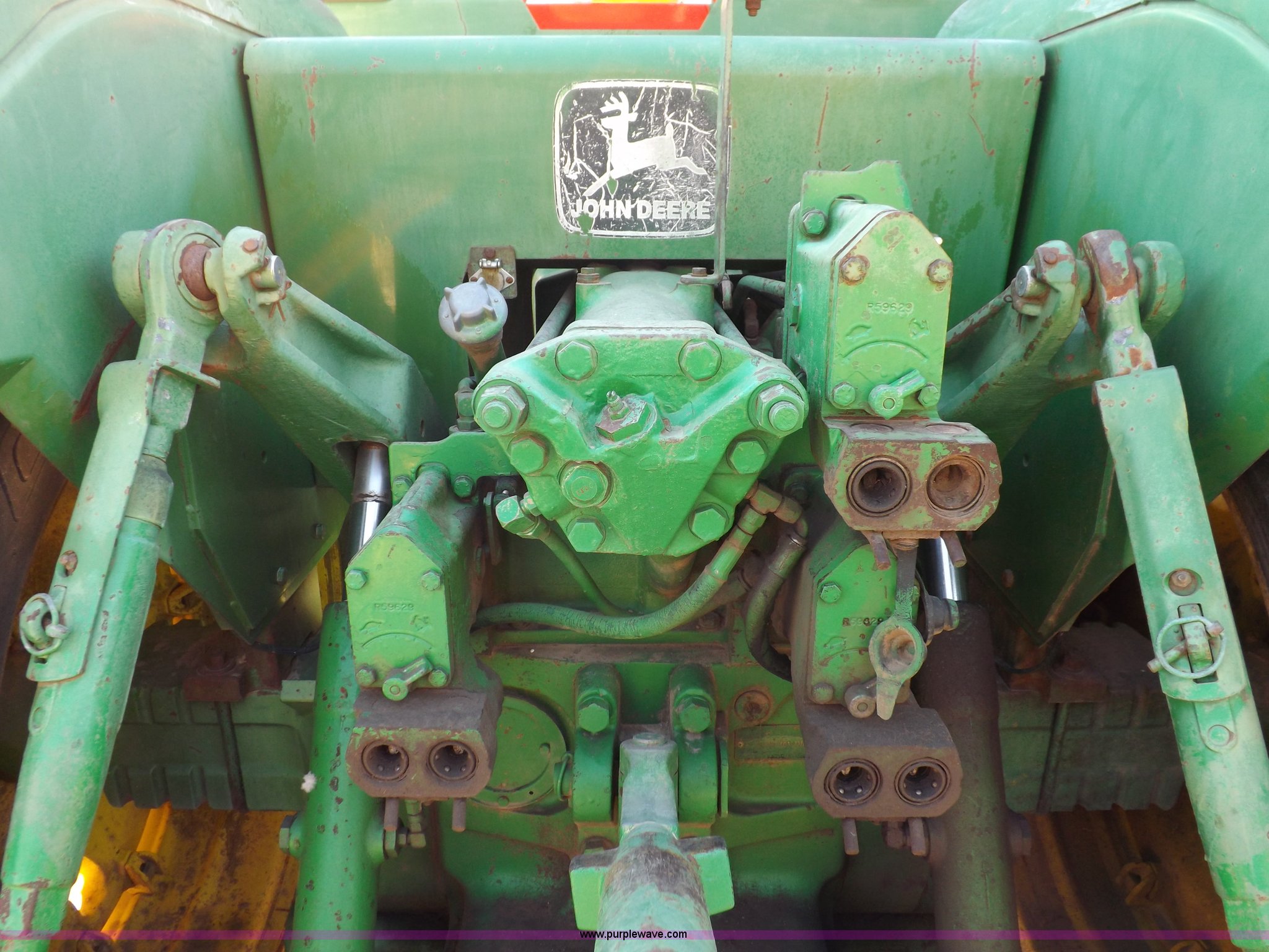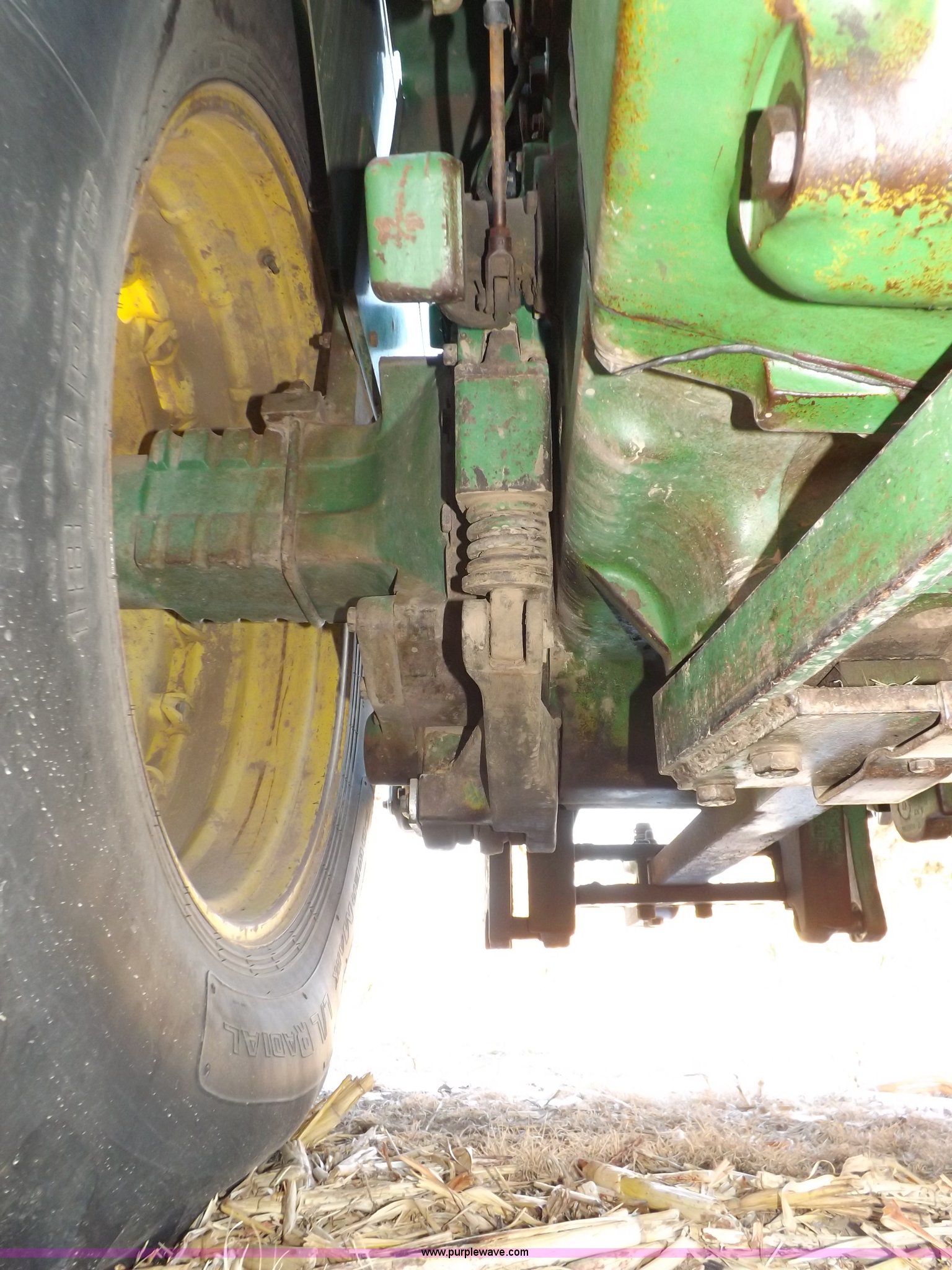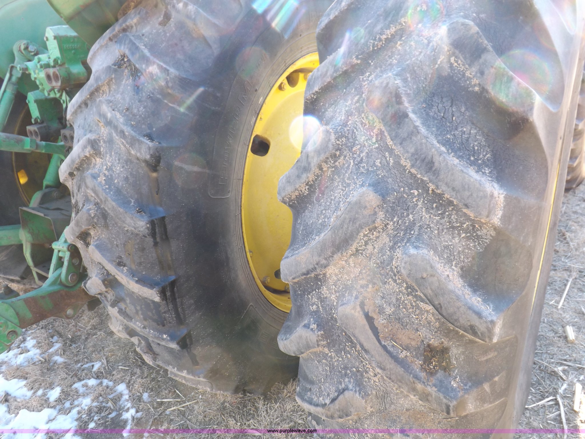 Purple Wave is selling a used Articulated 4-Wheel Drive Tractor in Kansas. This item is a 1979 John Deere 8640 4WD tractor with the following: 12,429 hours on meter, John Deere six cylinder diesel engine, Model 6619AR-08081184R6, Serial 081184R6, Quad Range transmission, 16F-4R gears, Differential lock, AC and heat, AM/FM/cassette, Spring suspension seat, Tilt steering wheel, Three point, Quick attach, Draw bar, Auxiliary outlet, 1000 PTO, 116" wheelbase, 18.4R38 dual tires, Head gasket needs replaced, Injectors need work, Will need to be transported, Serial 8640H0015771R