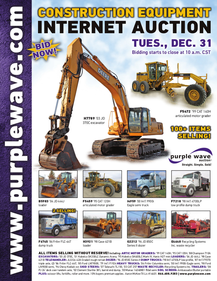 Terms, conditions, explanations and information in addition to those listed on this page are found in the Terms and Conditions section of this site and on the individual listing pages for all assets included in this auction. All terms, conditions, explanations and information are intended to be supplemental and complimentary to each other. They are incorporated by reference into this page, and collectively they govern this auction. In the event of a conflict or inconsistency among terms, conditions, explanations or information in the Terms and Conditions section, the individual listing pages for assets and/or this page, the individual listing pages shall control this page and the Terms and Conditions section, and this page shall control the Terms and Conditions section. By registering to bid live and/or on the Internet, you agree to abide by all terms and conditions and you acknowledge receipt of all explanations and information made available by Purple Wave.