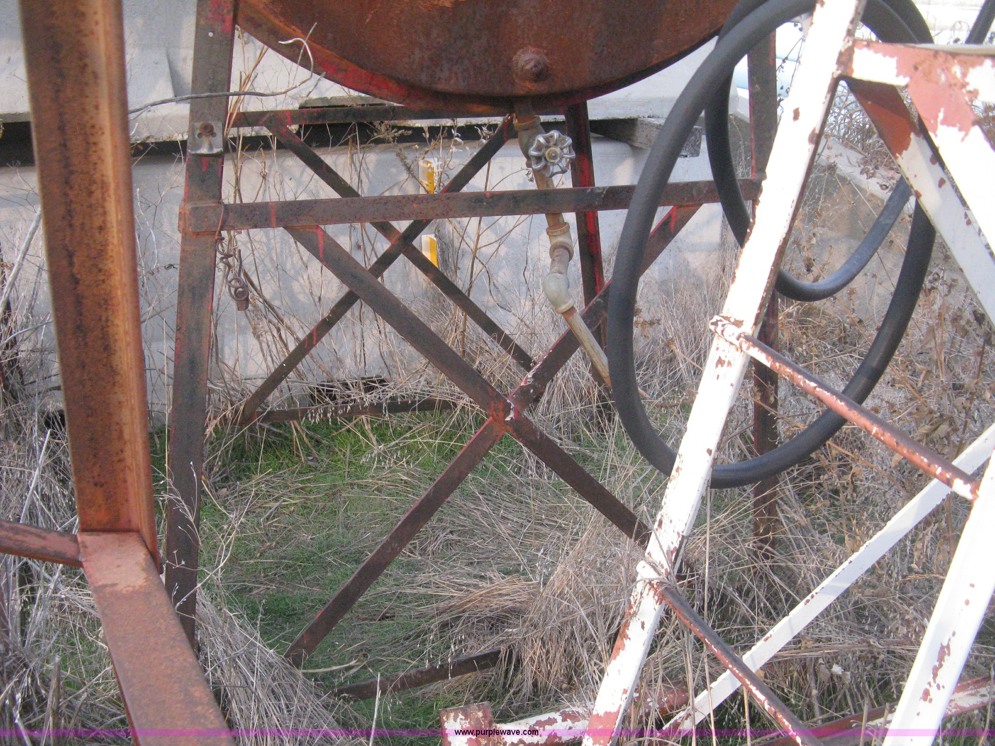 (2) gravity flow fuel tanks on stands. Steel towers, Fill hose and nozzles. Dondlinger & Sons Construction. 2656 S Sheridan. Wichita, KS 67217