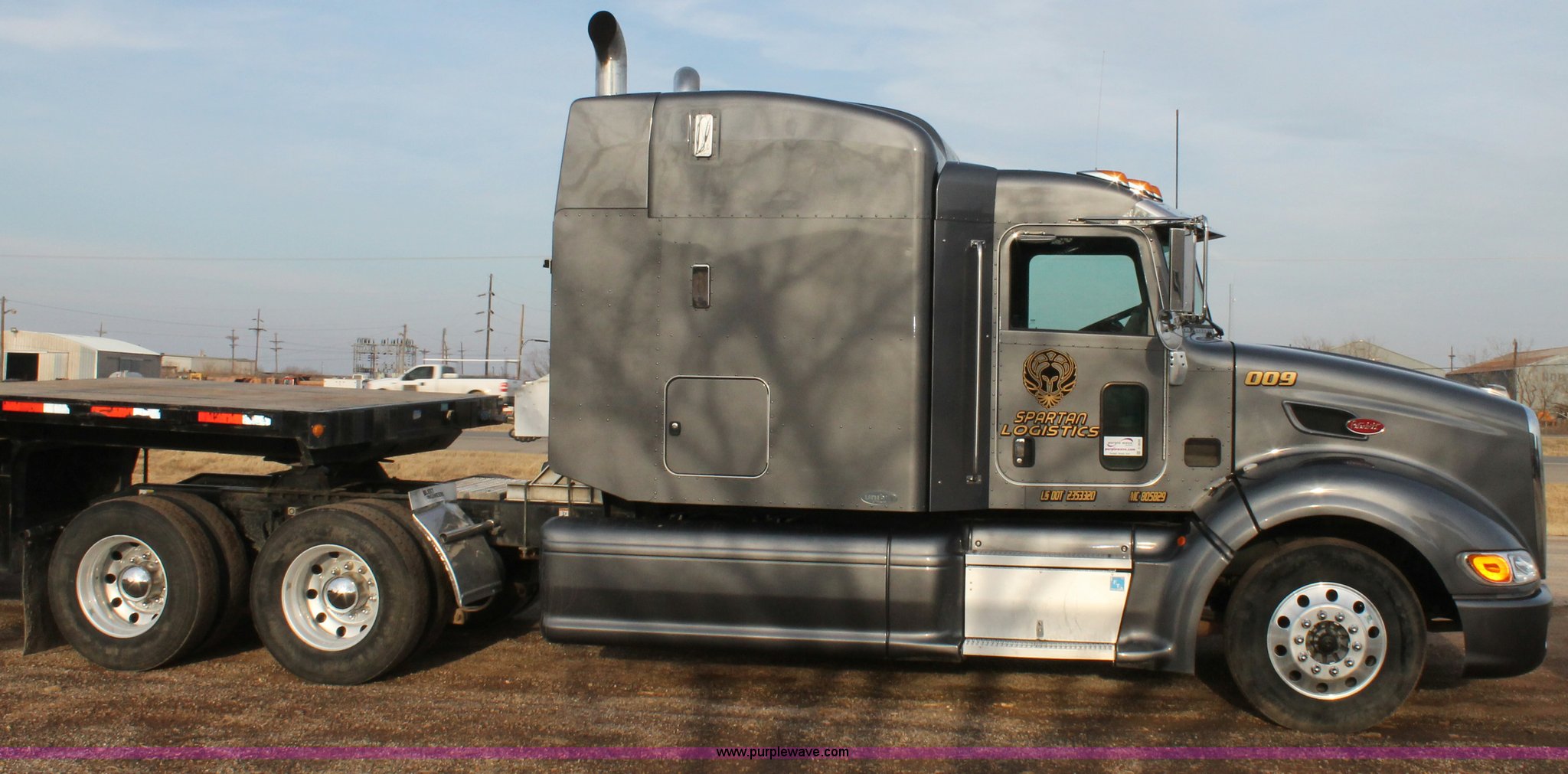 2009 Peterbilt 386 semi truck. 623,271 miles on odometer, Caterpillar C13 turbo diesel engine Engine overhauled at 578,733 miles, Eaton Fuller 16 speed manual transmission, AC and heat, Tilt, Cruise, AM/FM/CD, Passenger daylight door, Telescoping steering wheel, Air suspension seat, Power windows and mirrors, Heated mirrors, Air ride cab, Unibilt sleeper Storage, Headache rack Window, Storage, Chain hanger, Visor, Chrome bumper, Dual rear exhaust stacks, Steel deck plate, Air suspension, Air brakes, Aluminum wheels, Wheel covers, 275/80R22.5 tires, GVWR 50,000 lbs, FAWR 12,000 lbs, IAWR 19,000 lbs, RAWR 19,000 lbs. View repairs. Title distribution may be delayed up to 30 days from verification of funds. 1XPHDU9X29D789111. View equipment video. Spartan Logistics. 8000 U.S. Highway 277. Abilene, TX 79601