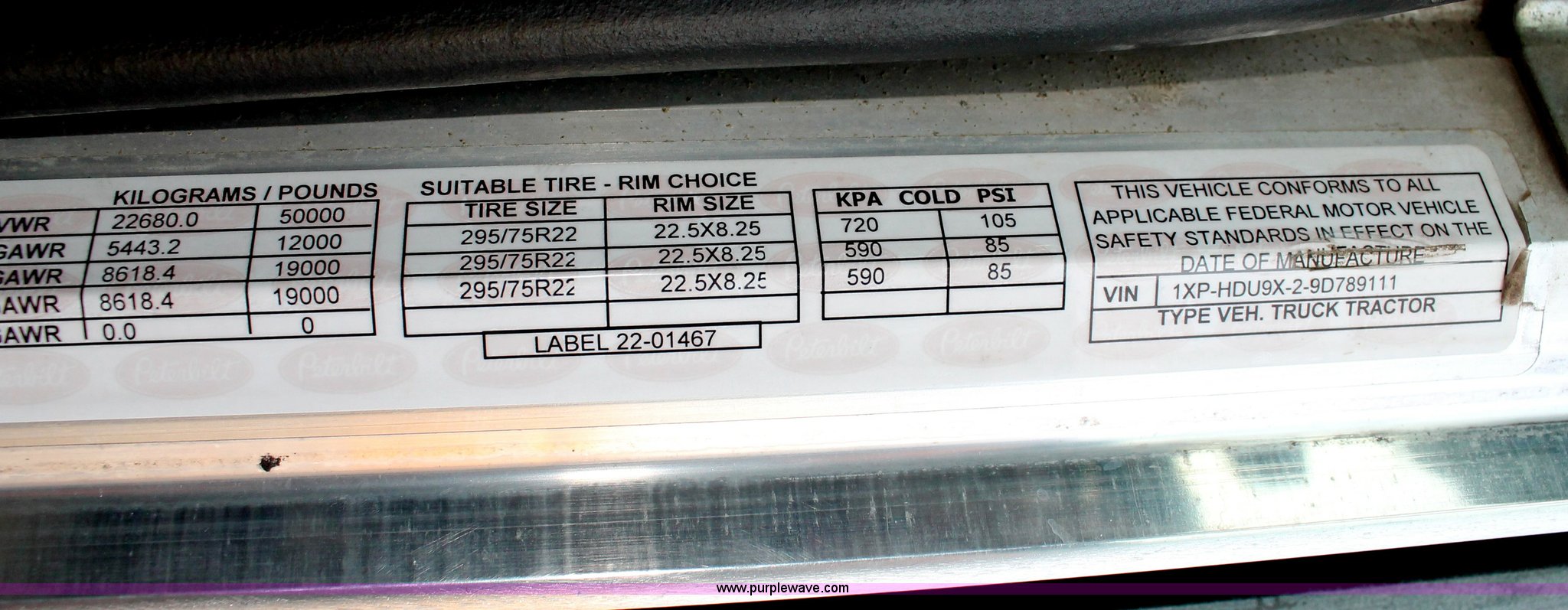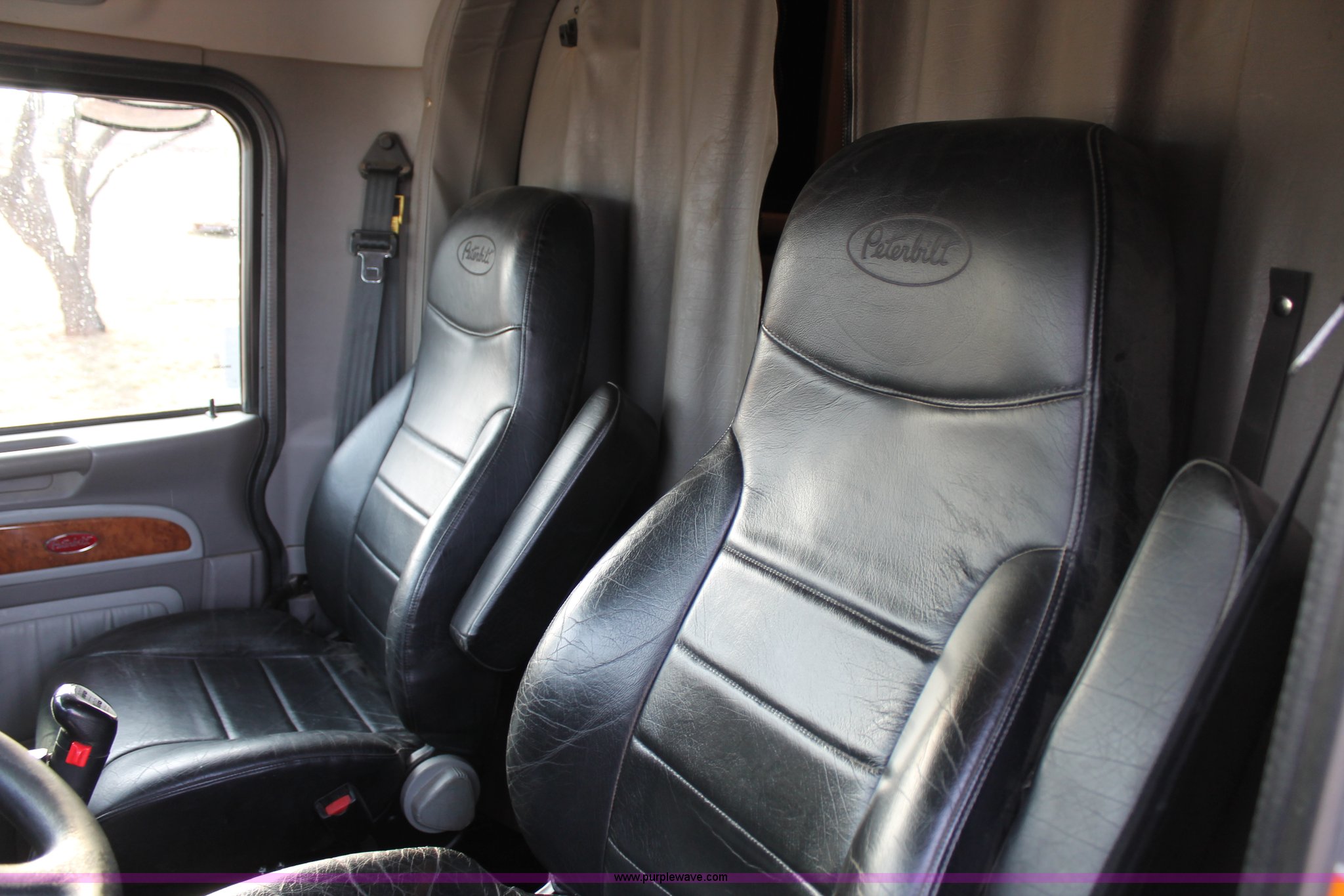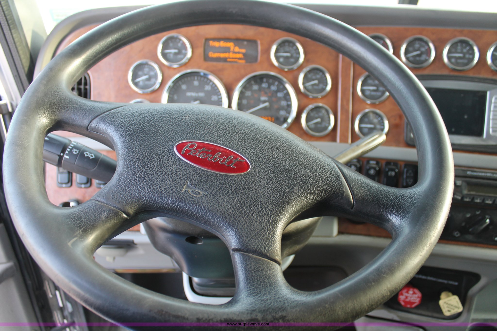 Purple Wave is selling a used Truck Tractor in Texas. This item is a 2009 Peterbilt 386 semi truck with the following: 623,271 miles on odometer, Caterpillar C13 turbo diesel engine, Engine overhauled at 578,733 miles, Eaton Fuller 16 speed manual transmission, AC and heat, Tilt, Cruise, AM/FM/CD, Passenger daylight door, Telescoping steering wheel, Air suspension seat, Power windows and mirrors, Heated mirrors, Air ride cab, Unibilt sleeper, Storage, Headache rack, Window, Storage, Chain hanger, Visor, Chrome bumper, Dual rear exhaust stacks, Steel deck plate, Air suspension, Air brakes, Aluminum wheels, Wheel covers, 275/80R22.5 tires, GVWR 50,000 lbs, FAWR 12,000 lbs, IAWR 19,000 lbs, RAWR 19,000 lbs