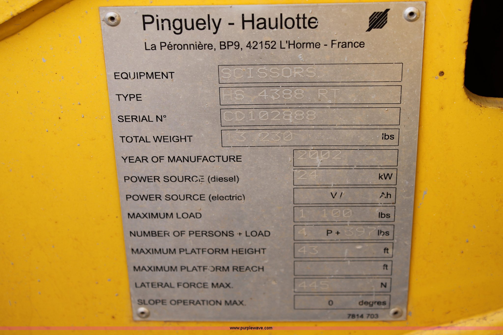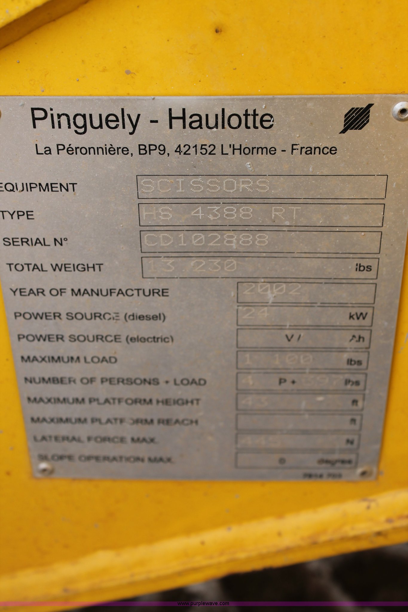 2002 Haulotte HS4388RT scissor lift has sold in Lawton, Oklahoma for $11000. Item C3641 sold on December 31st, 2013.