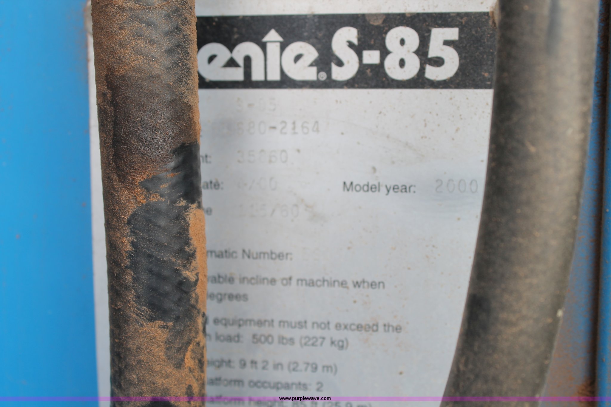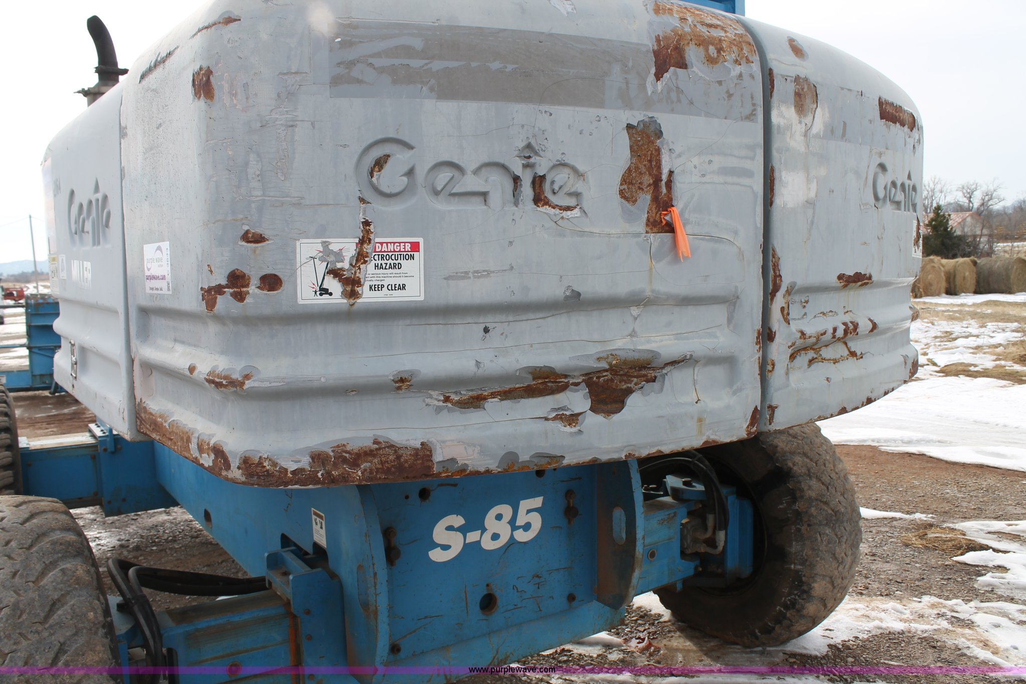 2000 Genie S85 boom lift has sold in Lawton, Oklahoma for $14850. Item C3643 sold on December 31st, 2013.