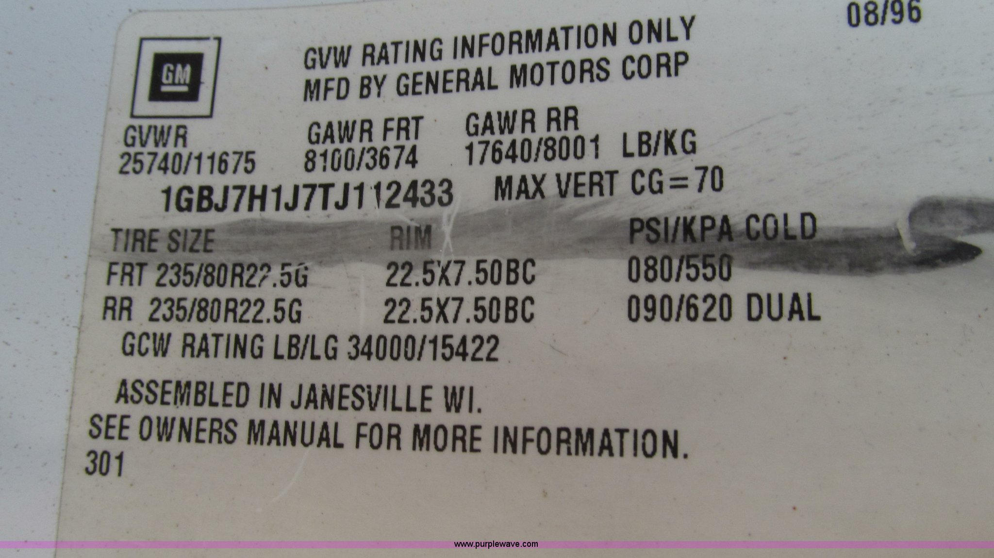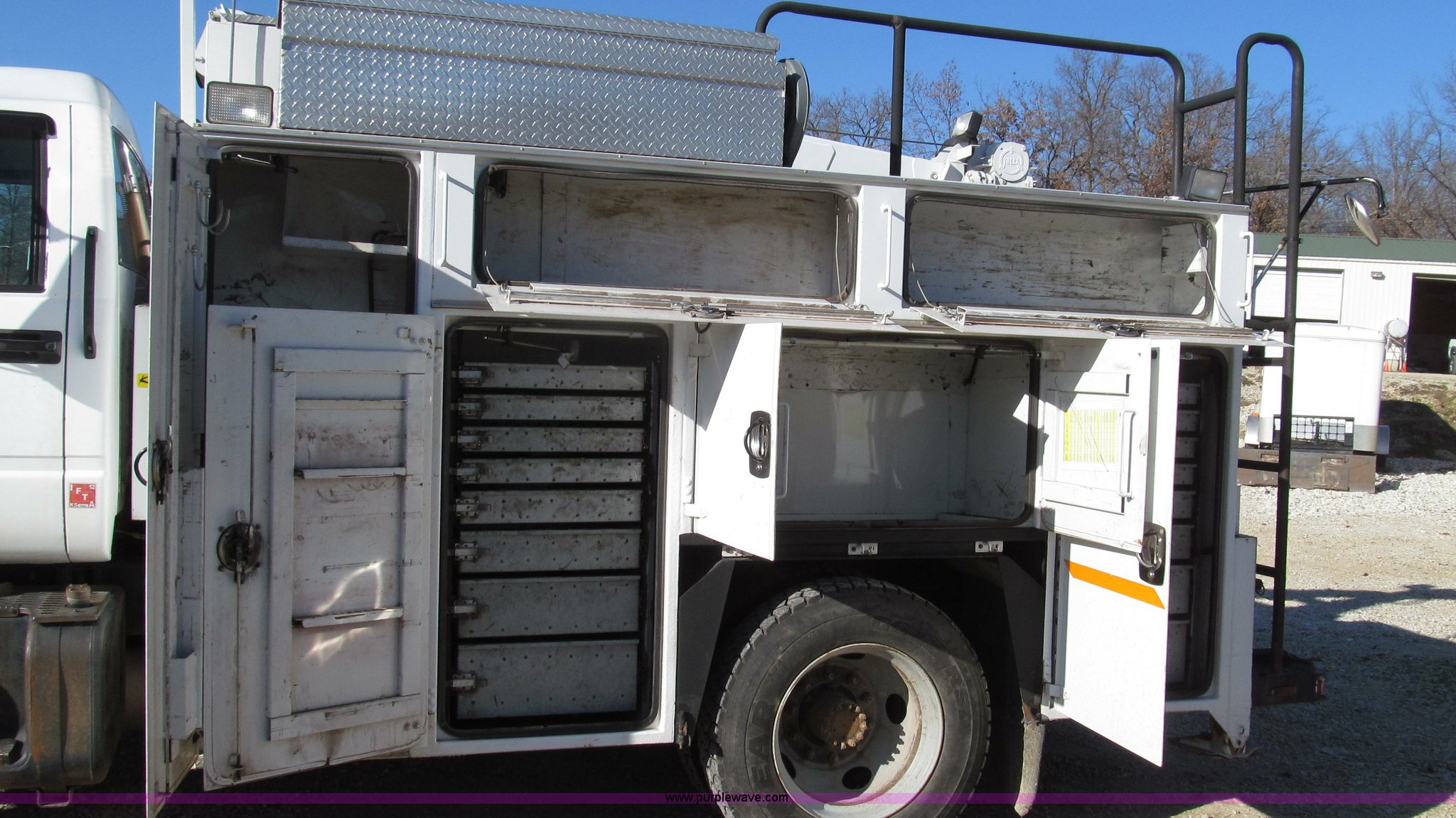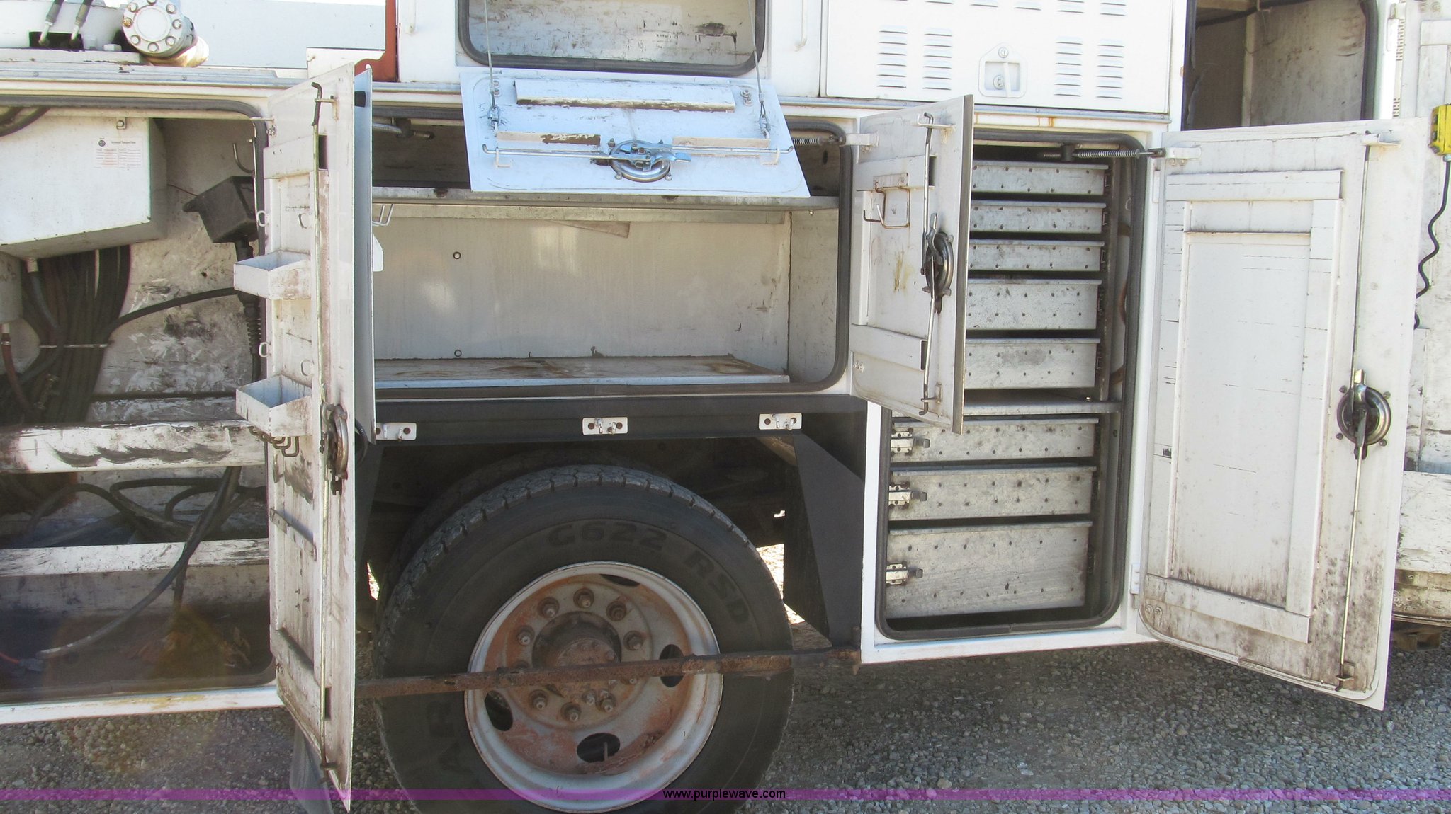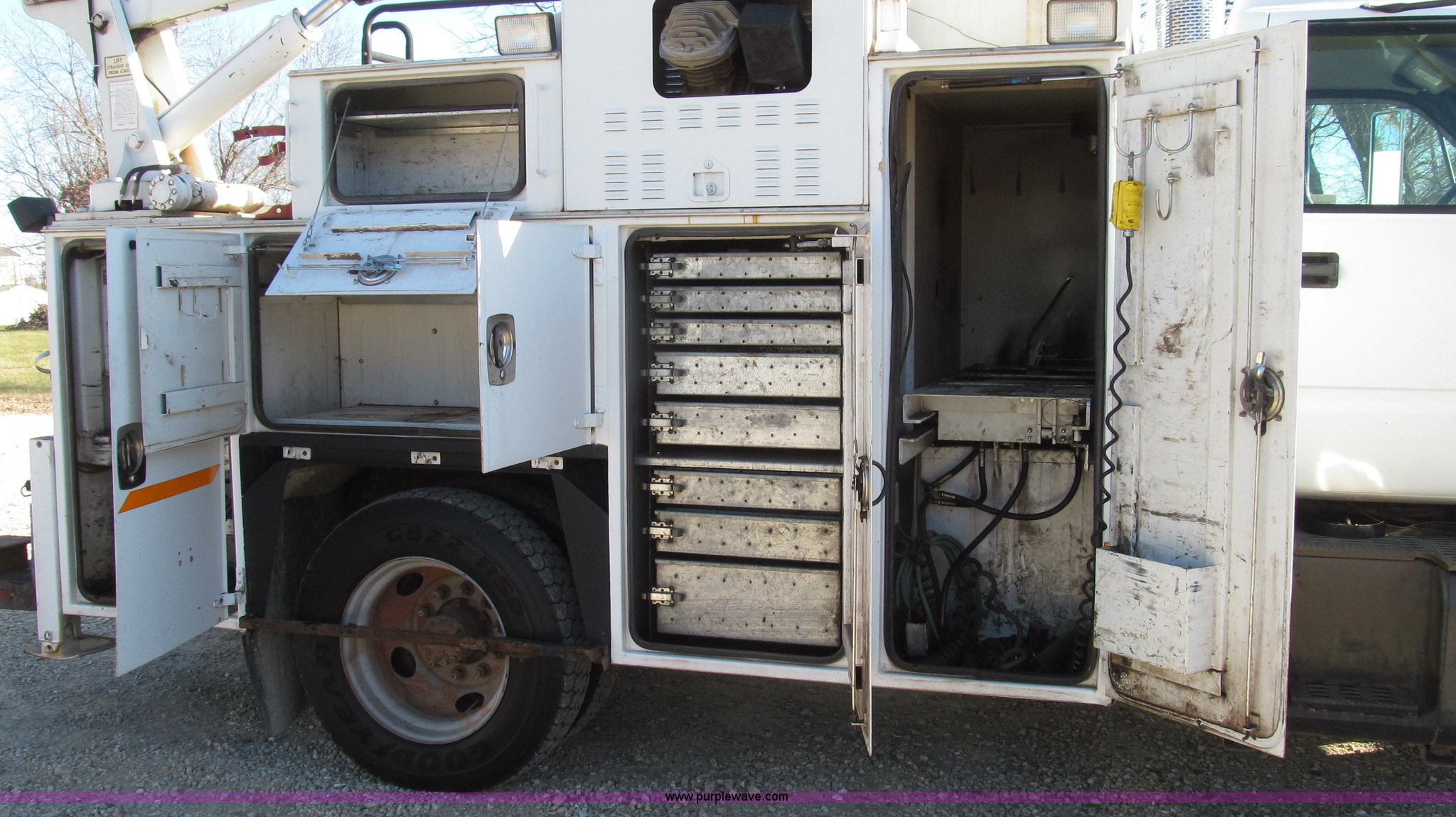 Purple Wave is selling a used Service Truck in Missouri. This item is a 1996 Chevrolet Kodiak service truck with Maintainer 3220 service crane with the following: 289,322 miles on odometer, 12,838 hours on meter, 1,341 PTO hours, Caterpillar 3126 diesel engine, Five speed manual transmission, Two speed rear end, AC and heat, Air suspension seat, Maintainer service body, 12'L x 94"W, Side storage compartments, Roll-out trays, Slide out welder rack, Hydraulic equipped, Roll cover center storage area, Hydraulic equipped, Non-skid surface, Maintainer 3220 service crane, Electric over hydraulic, 10,000 lbs capacity, Hand and remote controls, Two cylinder hydraulic driven air compressor, Hose reels, Auxiliary top mounted storage boxes, Amber emergency lights, Backup cameras, In-cab monitors,, Dual 50 gallon fuel tanks, Front and rear tow hooks, Block heater, Trailer wiring, Receiver hitch, Spring suspension, Hydraulic brakes, 265/75R22.5 tires