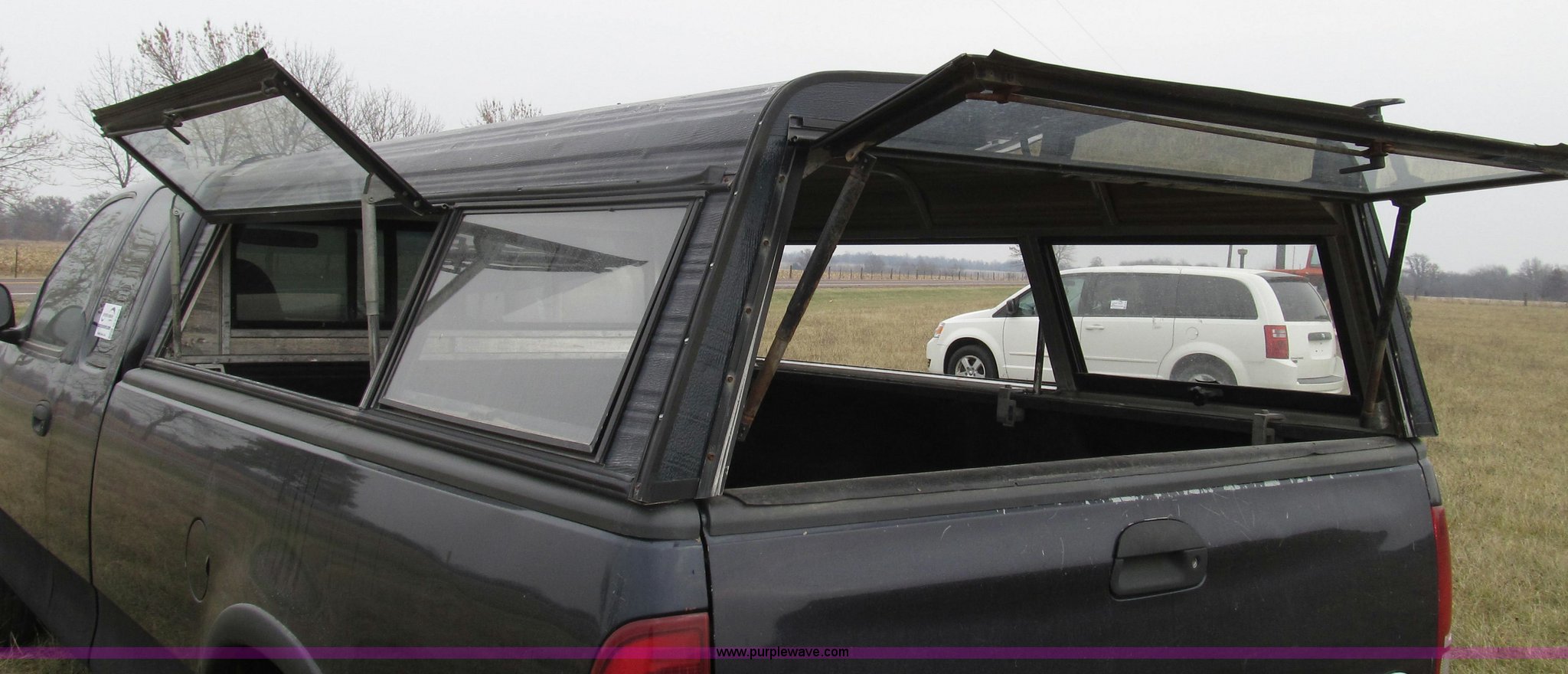 Purple Wave is selling a used Passenger Vehicle in Missouri. This item is a 1999 Ford F150 XL SuperCab pickup truck with the following: 162,179 miles on odometer, 4.6L V8 SOHC 16V gas engine, Five speed manual transmission, Four wheel drive, AC and heat, Tilt, Cruise, AM/FM, Manual windows and locks, Cloth interior, Bug deflector, Long bed, Plastic bed liner, Sliding rear window, Radco aluminum topper, Side access doors, Rear access doors, LT265/75R16 tires, Driver's seat torn, Scratches and dents, Right taillight broken, Tailgate rust, Rusted right side rocker panel, Rear bumper bent