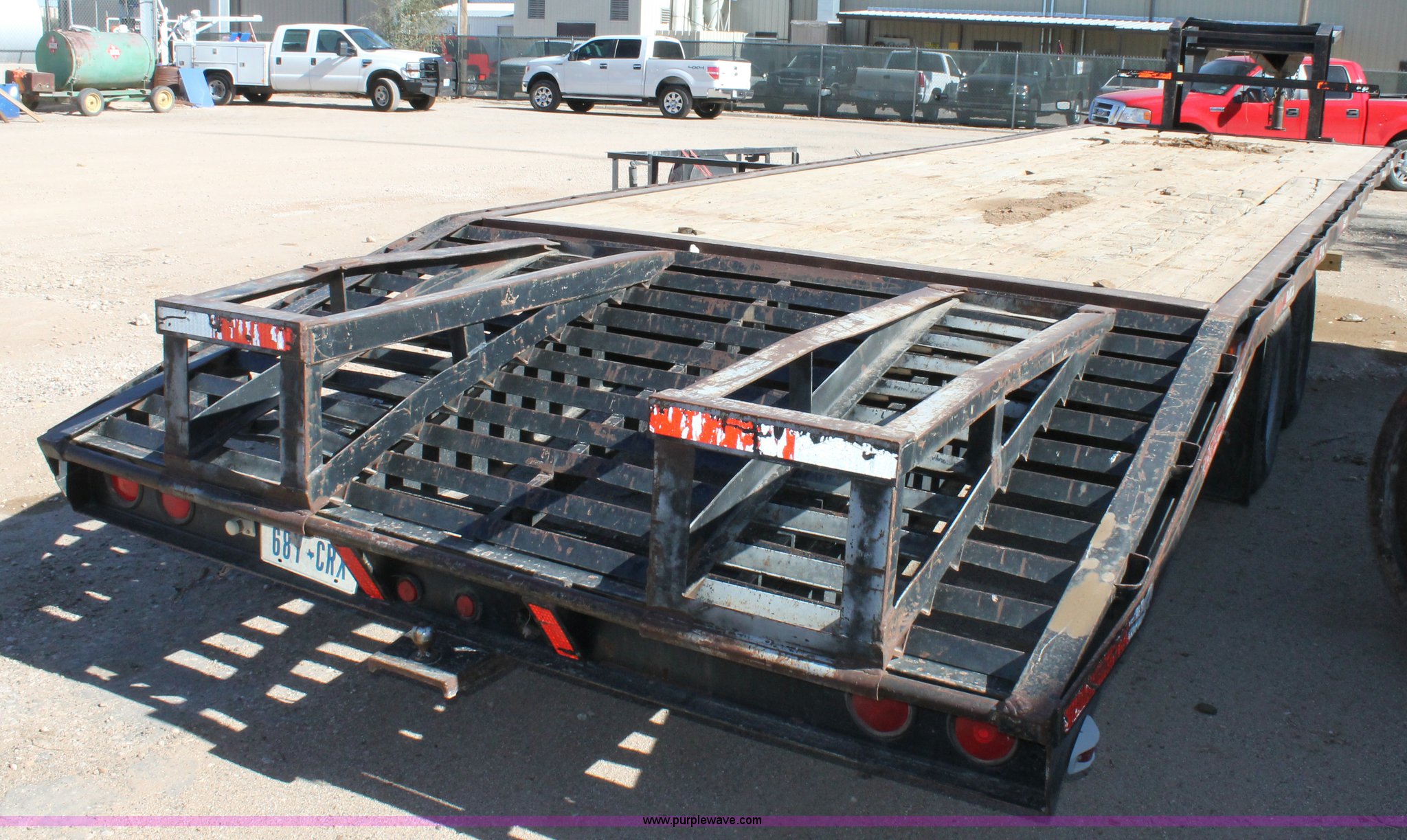 Purple Wave is selling a used Equip. Trailer in Texas. This item is a 1994 PF 30' gooseneck trailer with the following: 25' wood deck, 5' dovetail, Fold down ramps, Tandem axle, 7.50-16 tires