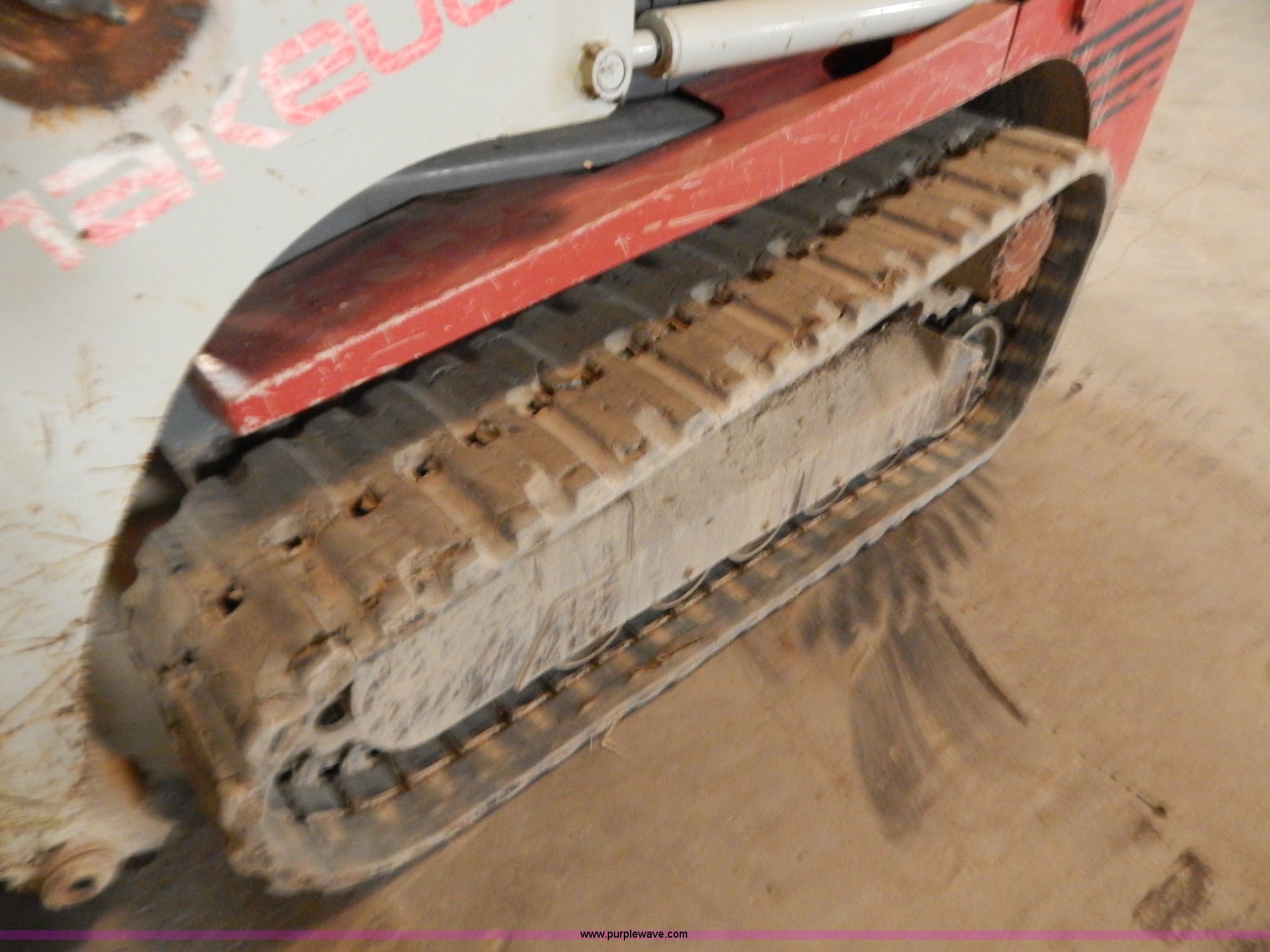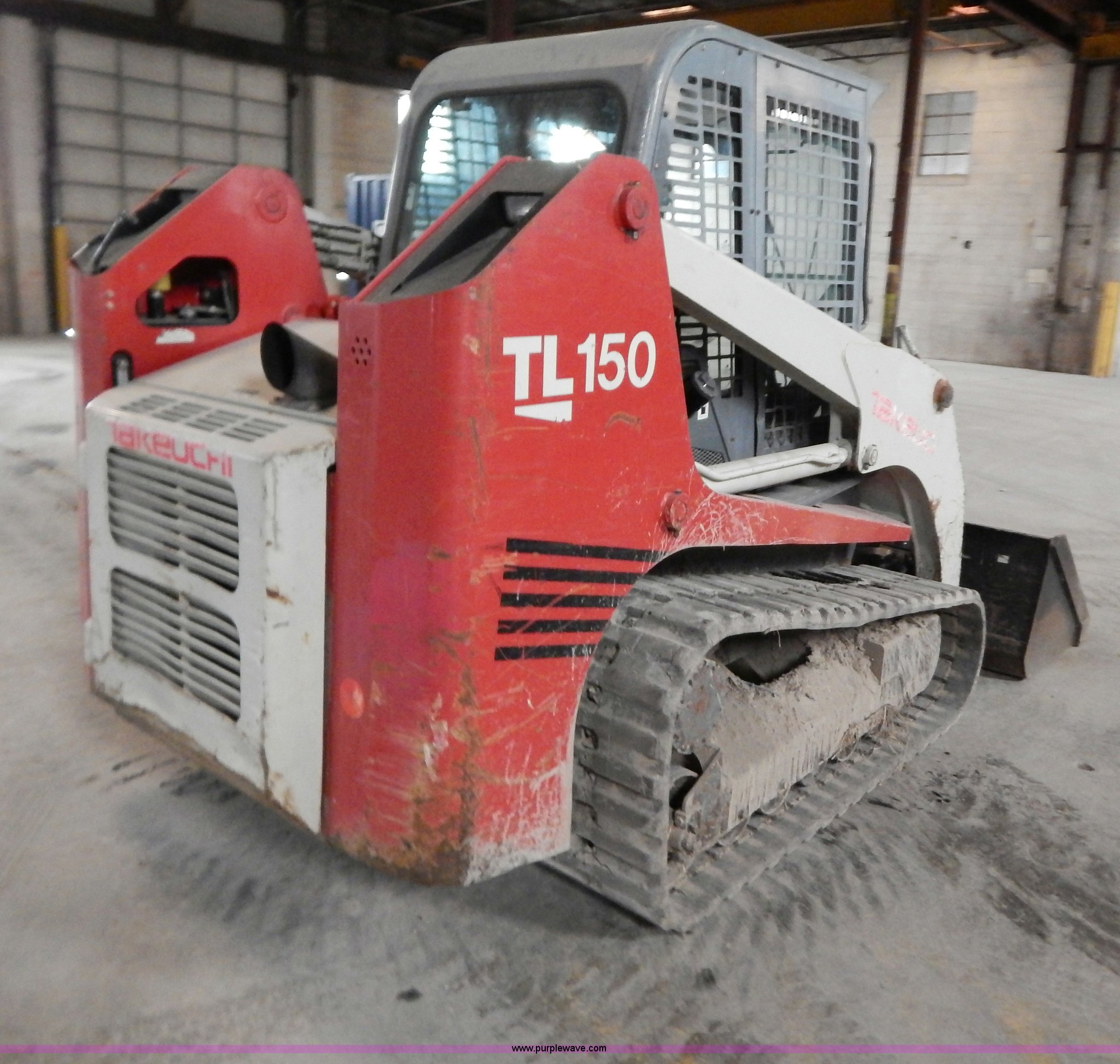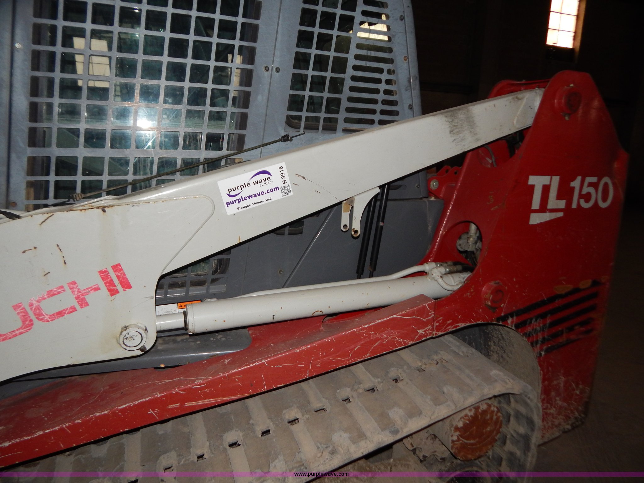 Purple Wave is selling a used Tracked Skid Steer Loader in Missouri. This item is a 2007 Takeuchi TL150 skid steer with the following: 3,668 hours on meter, Yanmar 4.412L four cylinder diesel engine, Model 4TNV106T-XTBL, Enclosed cab, AC and heat, 80"W bucket, Nine cutting teeth, Auxiliary hydraulics, 18"W track pads, 10,902 lbs. base operating weight, Front windshield wipers missing, Serial 21504733