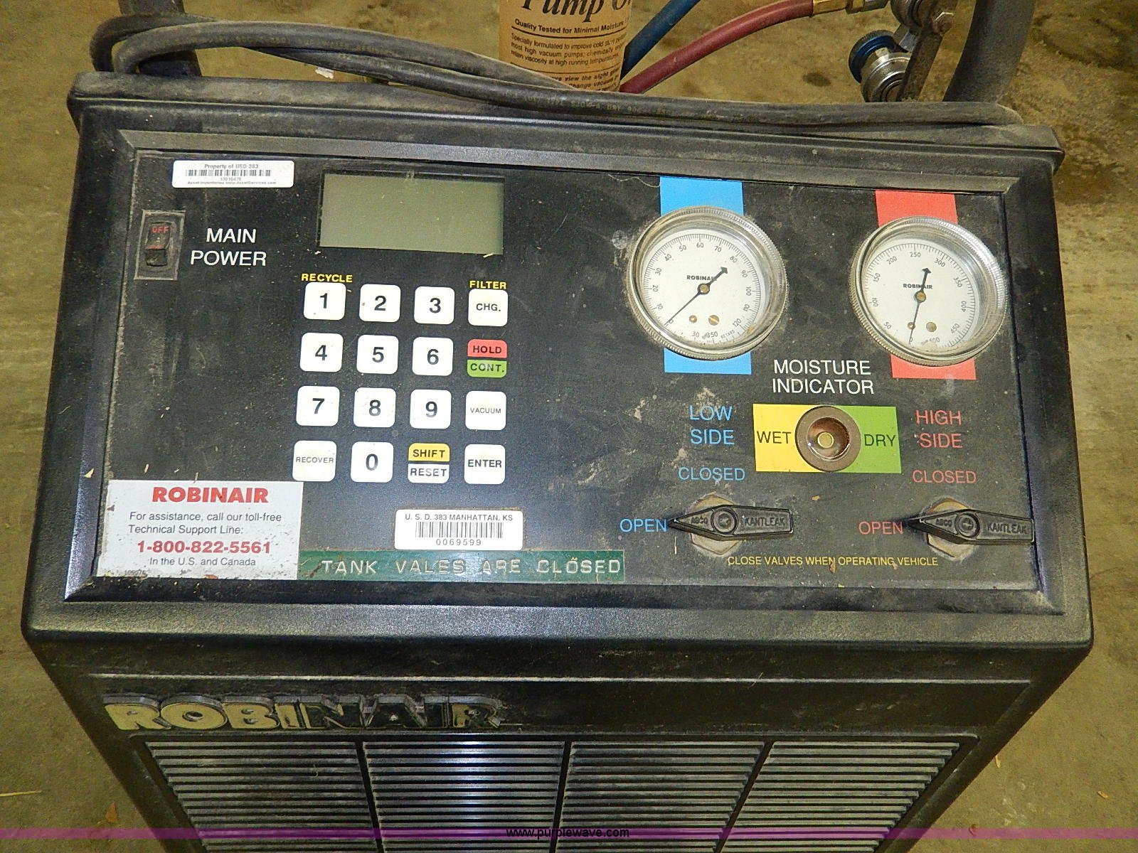 Assorted equipment. Robinair Enviro R134A refrigerant recovery machine Model 34700, Cover, Needs new dryer unit, Serial 24975, Bottle is not included, Gray MM-2000 multi-matic transmission jack, 2,200 lbs capacity, Cylinder leaks down. Shipping quotes available. USD 383. Manhattan, KS 66502