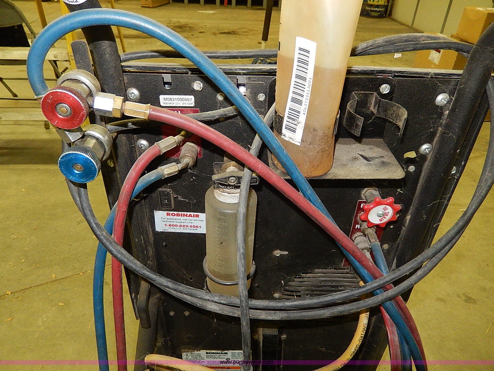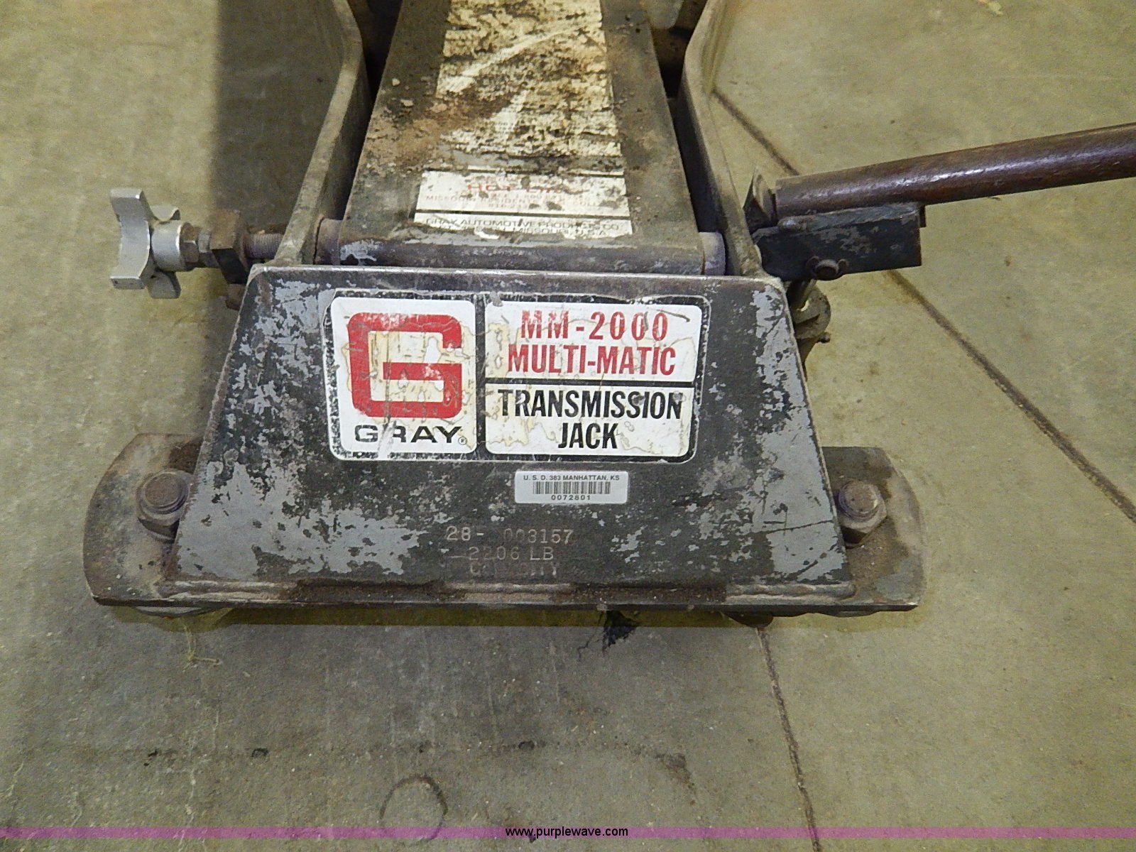 Purple Wave is selling a used Tools in Kansas. This item is a Assorted equipment with the following: Robinair Enviro R134A refrigerant recovery machine, Model 34700, Cover, Needs new dryer unit, Serial 24975, Bottle is not included, Gray MM-2000 multi-matic transmission jack, 2,200 lbs capacity, Cylinder leaks down