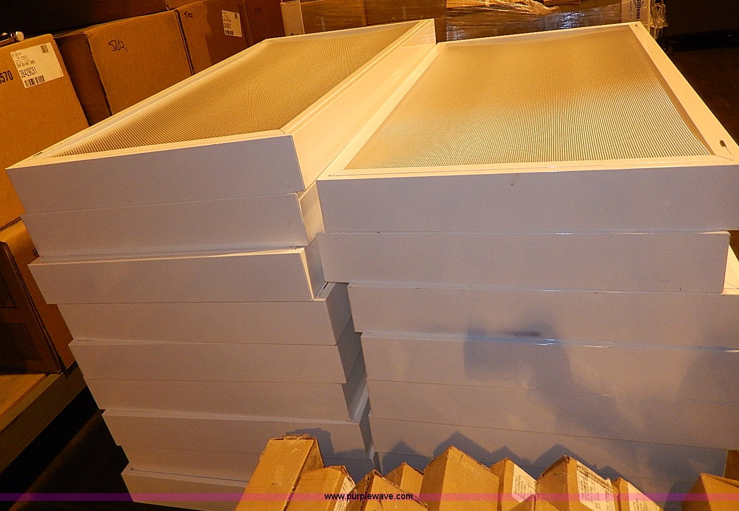 (17) ceiling lights. 4' x 2' x 4", 120/277V, 1.5 watts, Unused, (3) bulbs. Shipping quotes available. USD 475. 1725 Old Hwy 40. Junction City, KS 66441