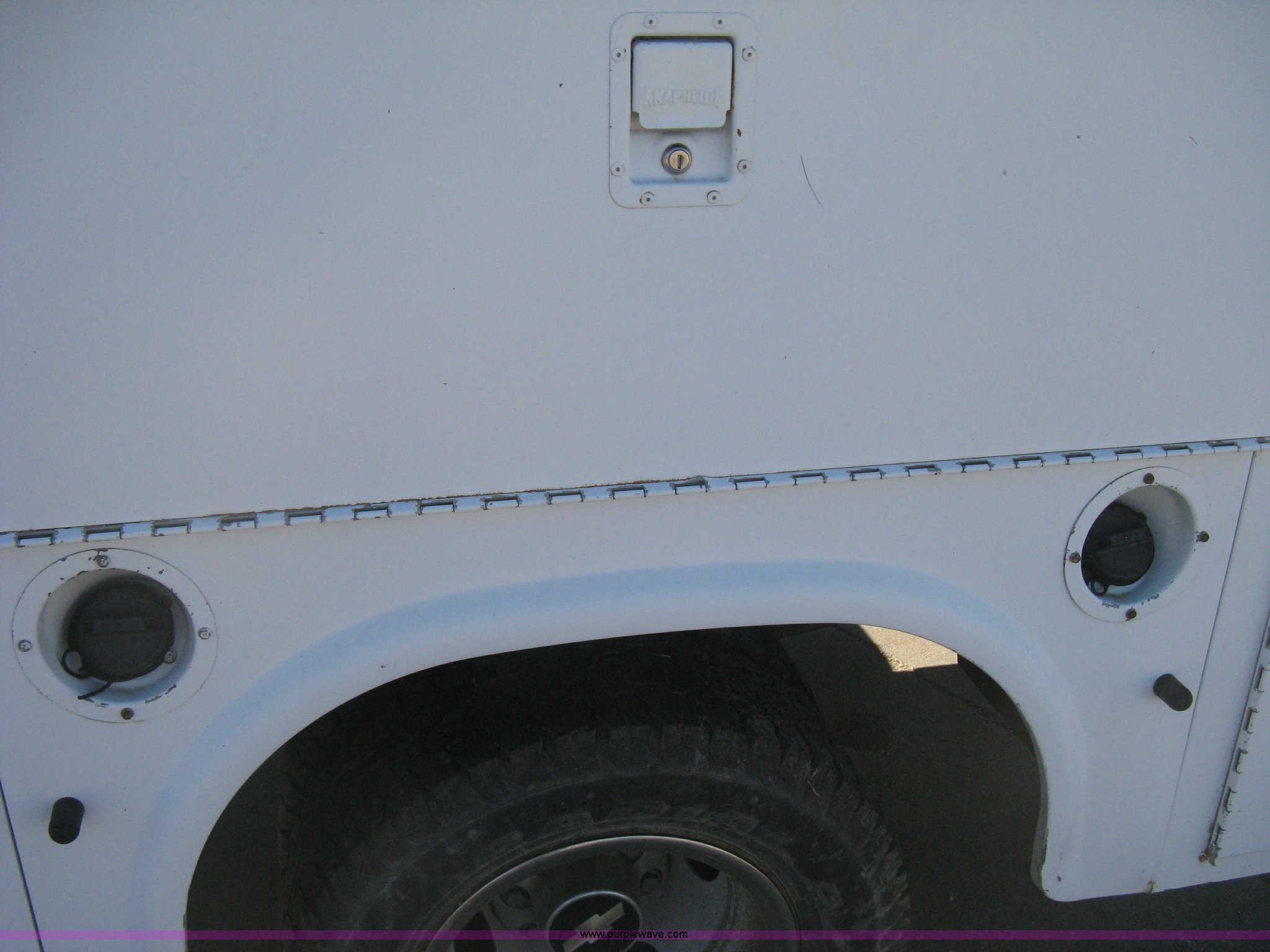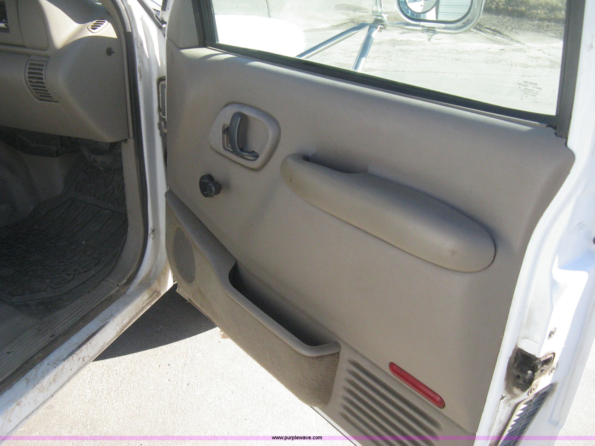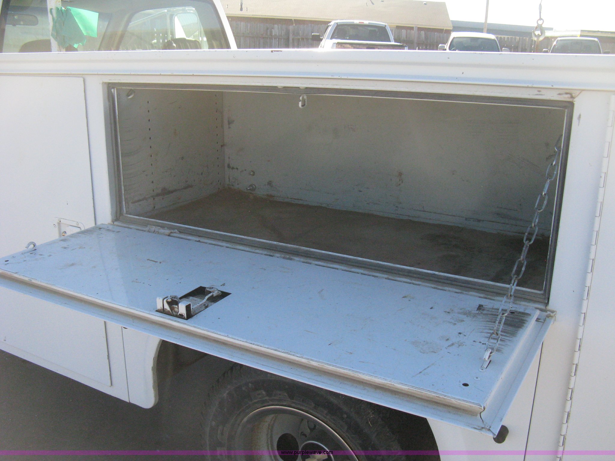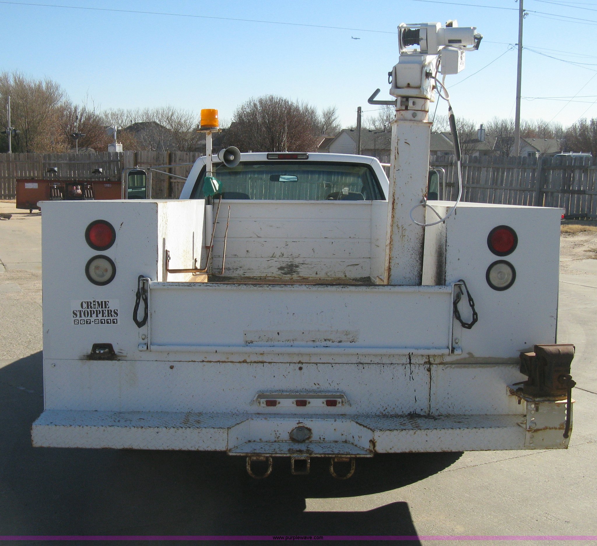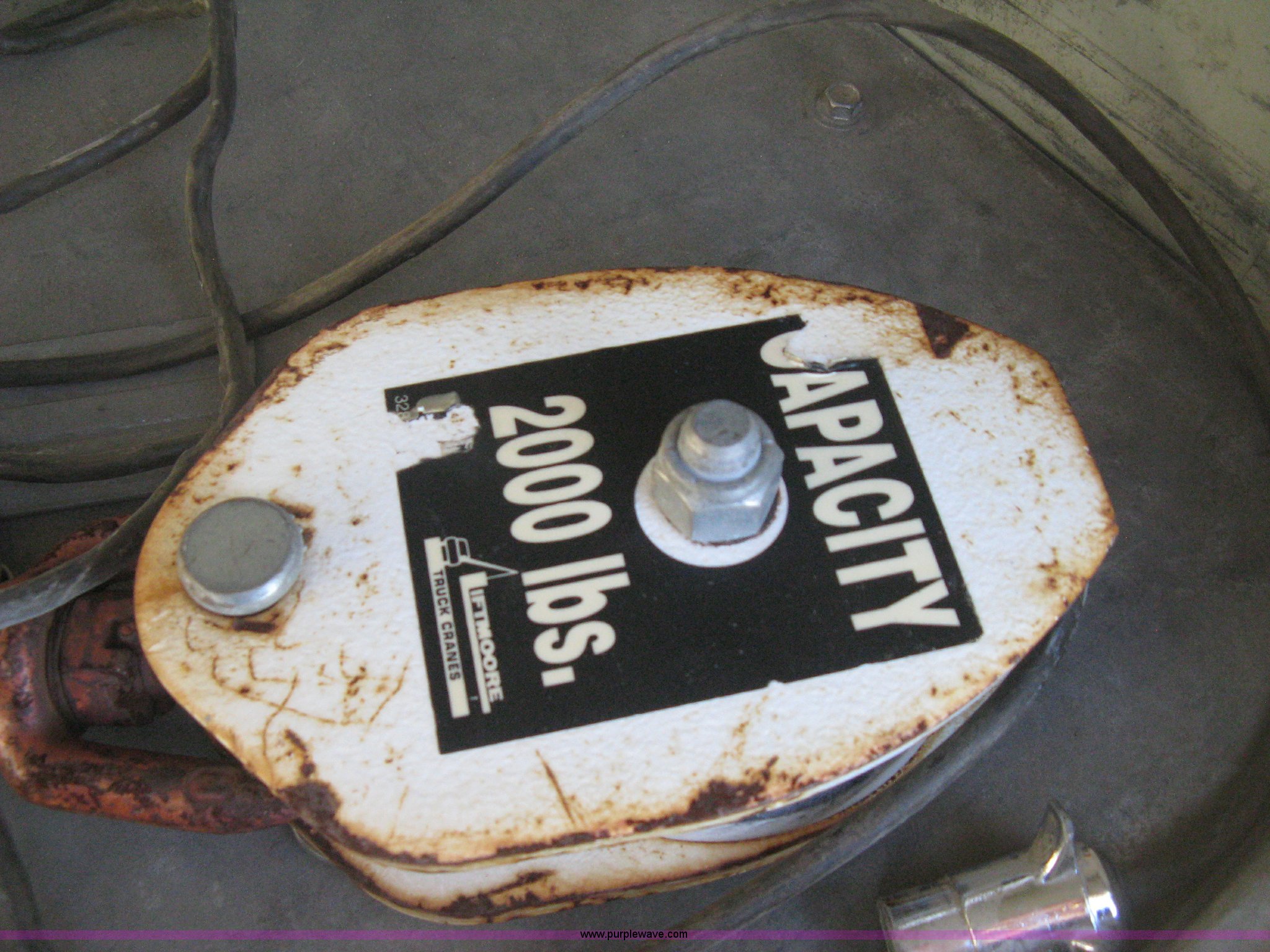 Purple Wave is selling a used Service Truck in Kansas. This item is a 1999 Chevrolet 3500 utility truck with the following: 97,534 miles on odometer, 7.4L V8 OHV 16V gas engine, Automatic transmission, AC and heat, Tilt, Cruise, AM/FM/cassette, Manual windows and locks, Vinyl interior, Electric trailer brake booster, Knapheide utility bed, Approx. 9'L x 89"W, Step up bumper, Bumper mounted vise, (6) side tool compartments, Diamond plate floor, Lift Moore L21 telescoping crane, Tethered remote, 2,000 lbs capacity block/hook, Serial P965R11,, Dual fuel tanks, Receiver hitch, Trailer wiring, LT225/75R16 tires, Scratches and dents, Paint peeling