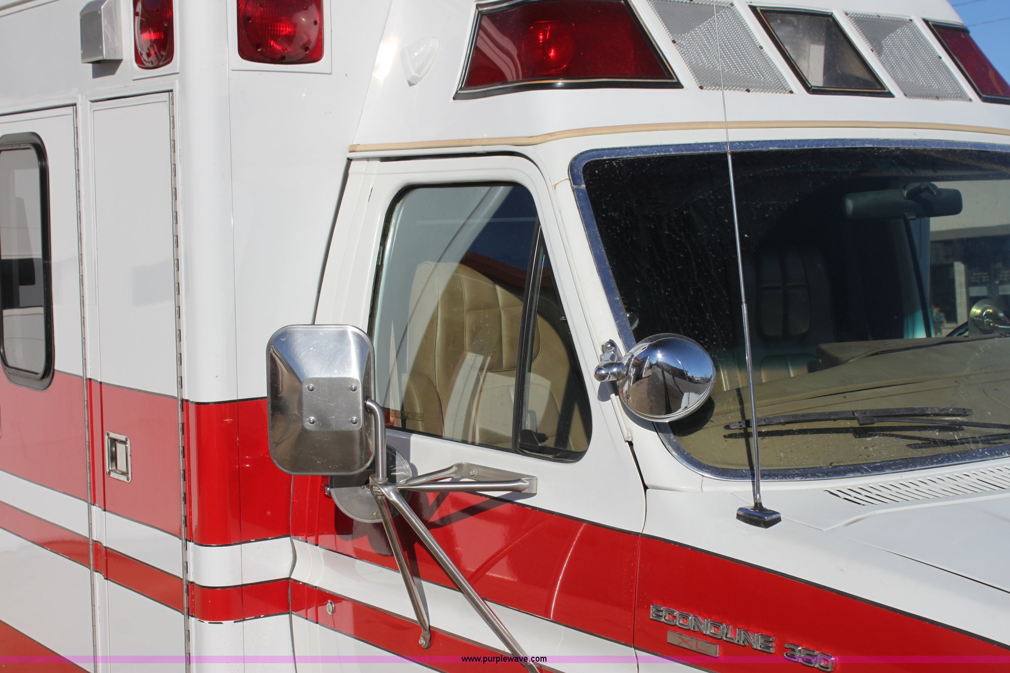 Purple Wave is selling a used Fire Truck or Emergency Vehicle in Kansas. This item is a 1985 Ford Econoline E350 ambulance with the following: 8,715 miles on odometer, 460 C.I.D. V8 gas engine, Automatic transmission, AC and heat, Manual windows, Emergency lights and siren, 215/85R16 tires