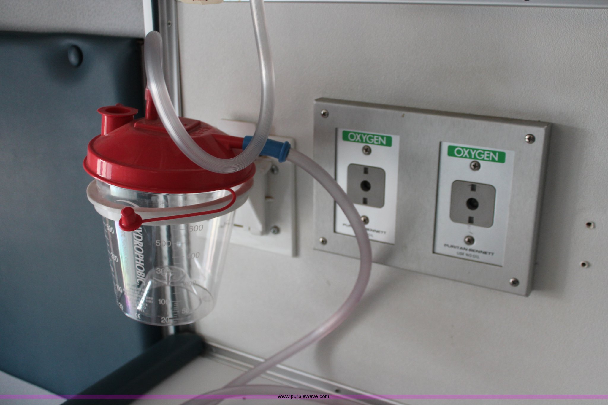 Purple Wave is selling a used Fire Truck or Emergency Vehicle in Kansas. This item is a 1996 Ford Econoline E450 ambulance with the following: 89,662 actual miles, 3,244 hours on meter, 7.3L V8 OHV 16V turbo diesel engine, Automatic transmission, AC and heat, Tilt, Cruise, AM/FM, Power windows and locks, Cloth interior, Block heater, Miller McCoy light and siren controls, Whelen PA system, Master shut-off switch, McCoy Miller ambulance bed, Heat, vent, volume, and auxiliary controls, Oxygen hookups, 12 VOC and 115 VAC outlets, Internal and external storage, Vinyl interior, Toyo Open Country H/T LT225/75R16 tires
