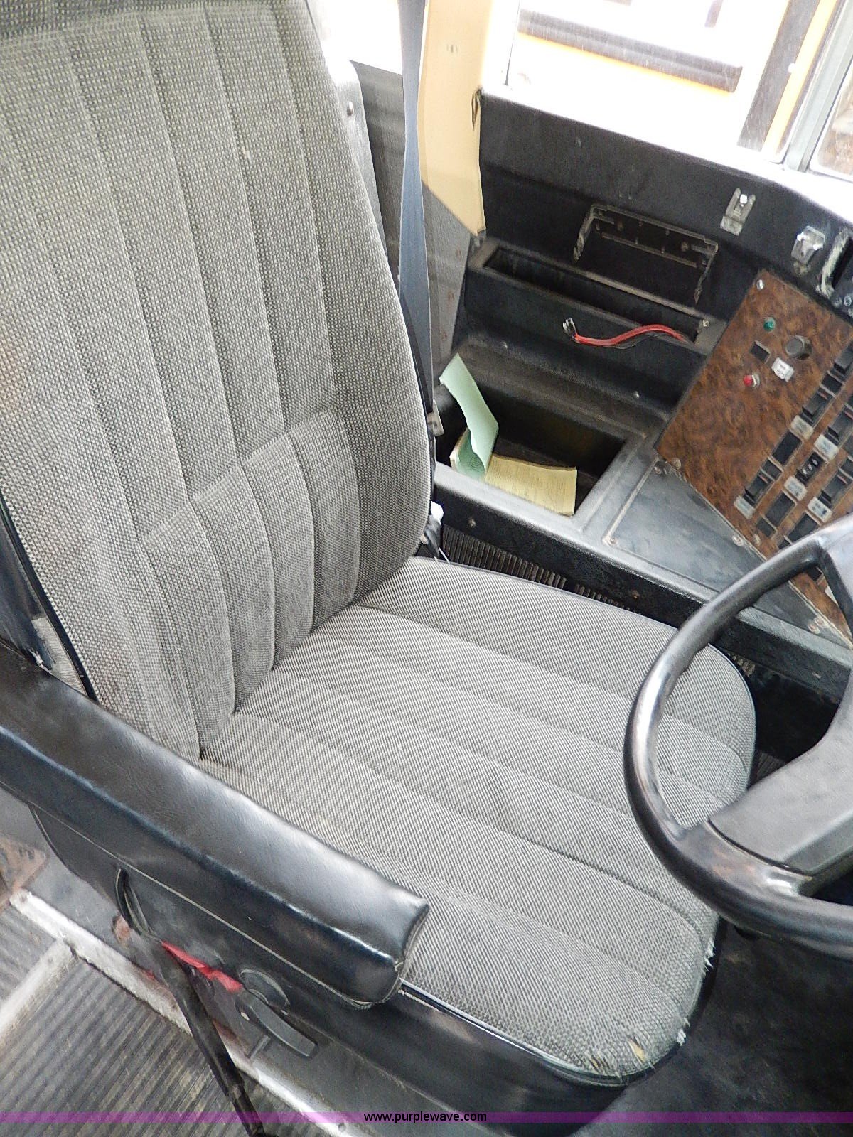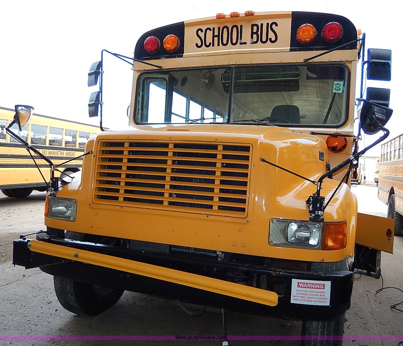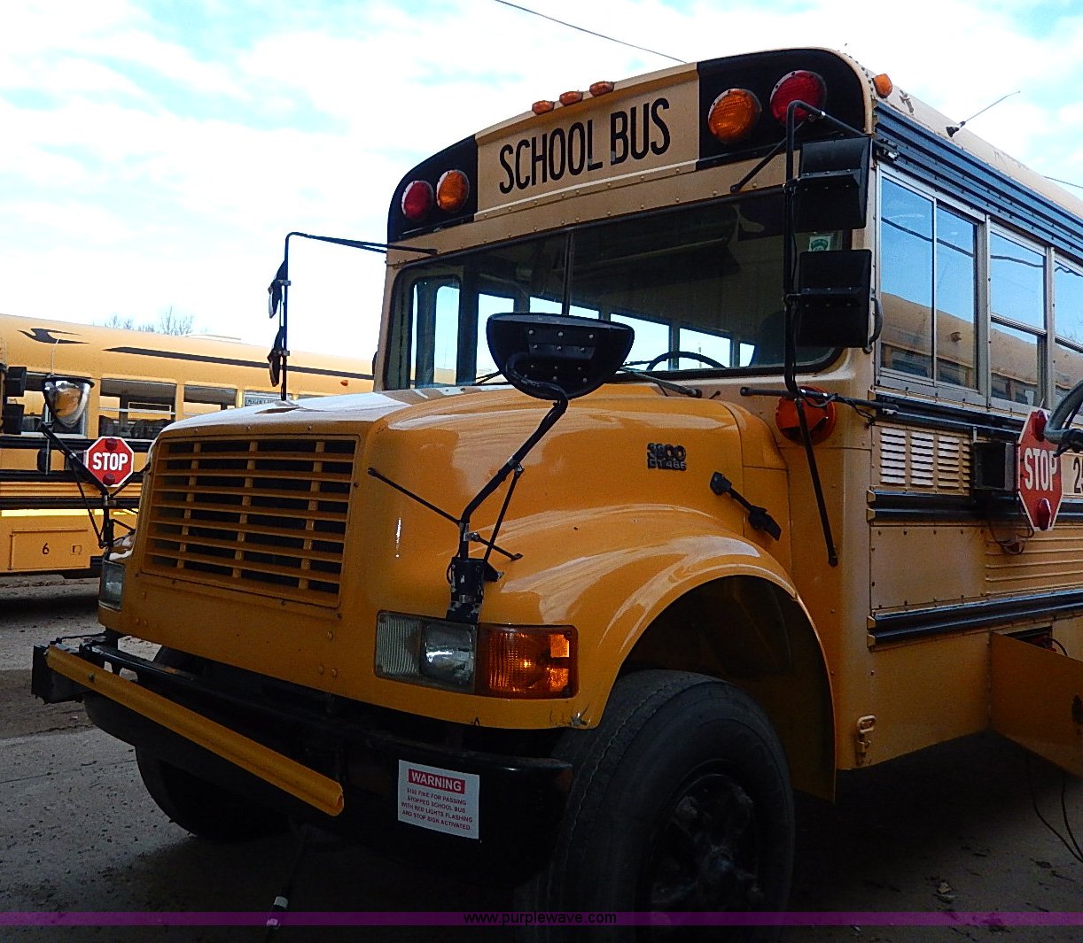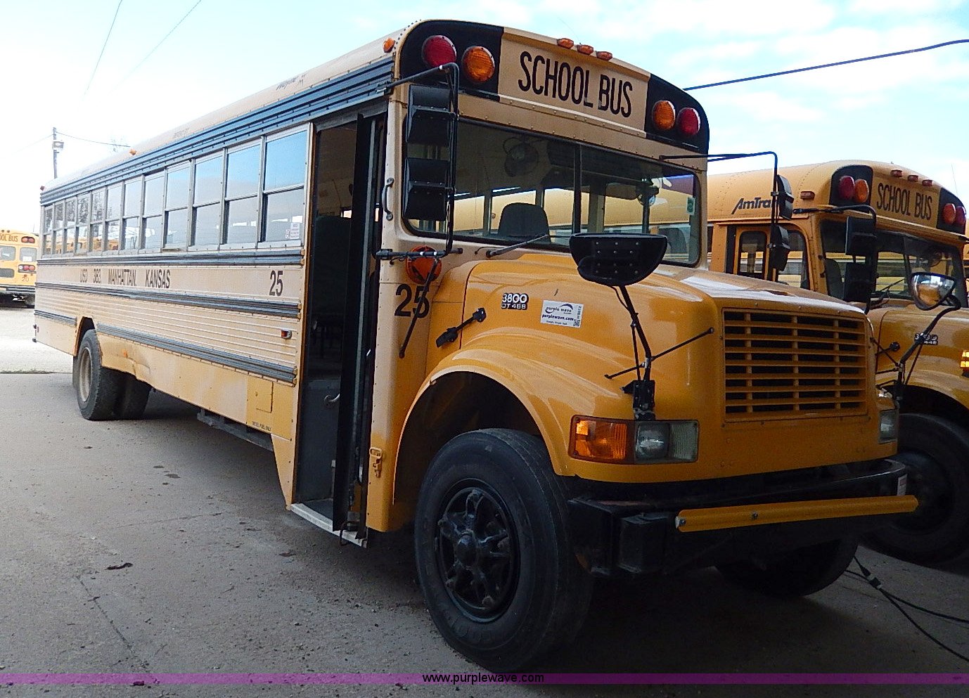 Purple Wave is selling a used Bus in Kansas. This item is a 1995 International 3800 school bus with the following: 161,057 miles on odometer, International DT466 7.6L L6 diesel engine, Automatic transmission, Heat, AM/FM, Manual windows and locks, Heated mirrors, Cloth driver's seat, Vinyl interior, 70 passenger capacity, Block heater, Front and rear tow hooks, 10R22.5 tires, GVWR 27,500 lbs, FAWR 10,000 lbs, RAWR 17,500 lbs, Recently replaced battery, Paint faded, Rust, Dents and scratches