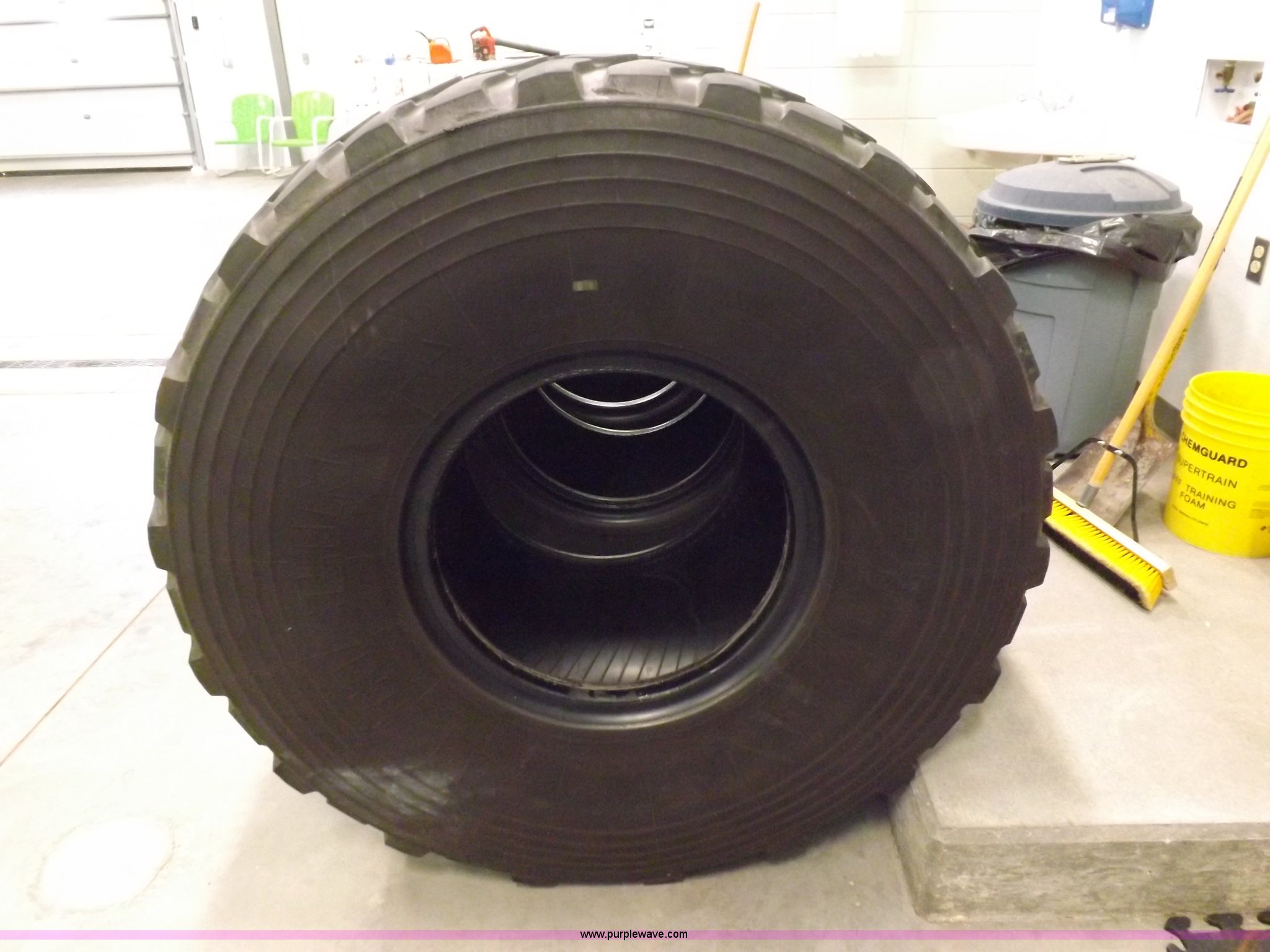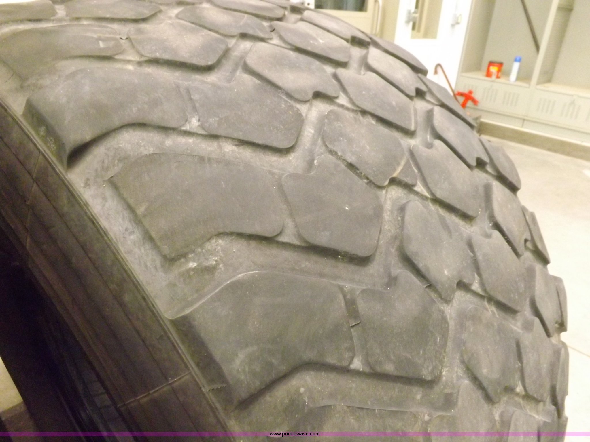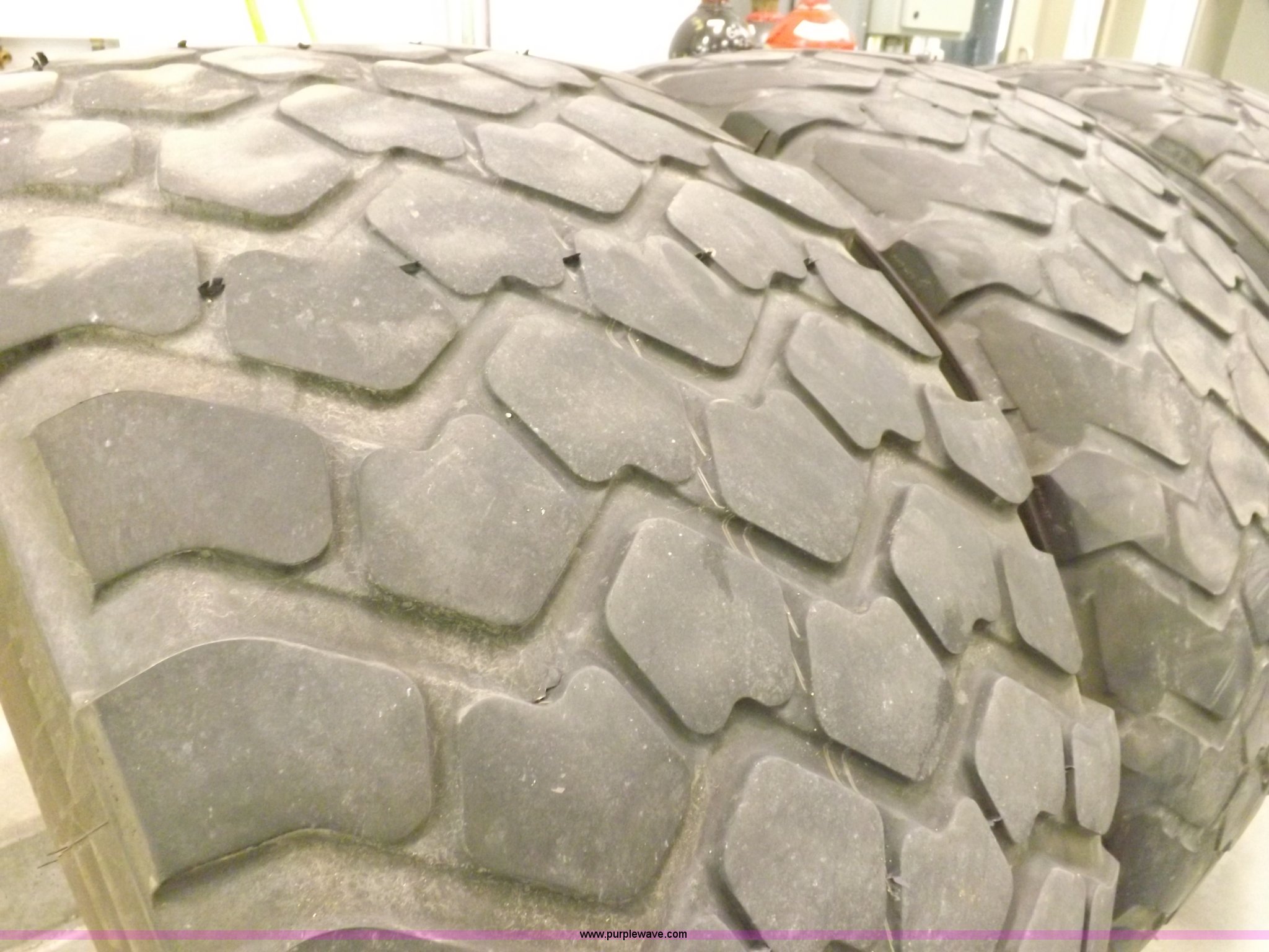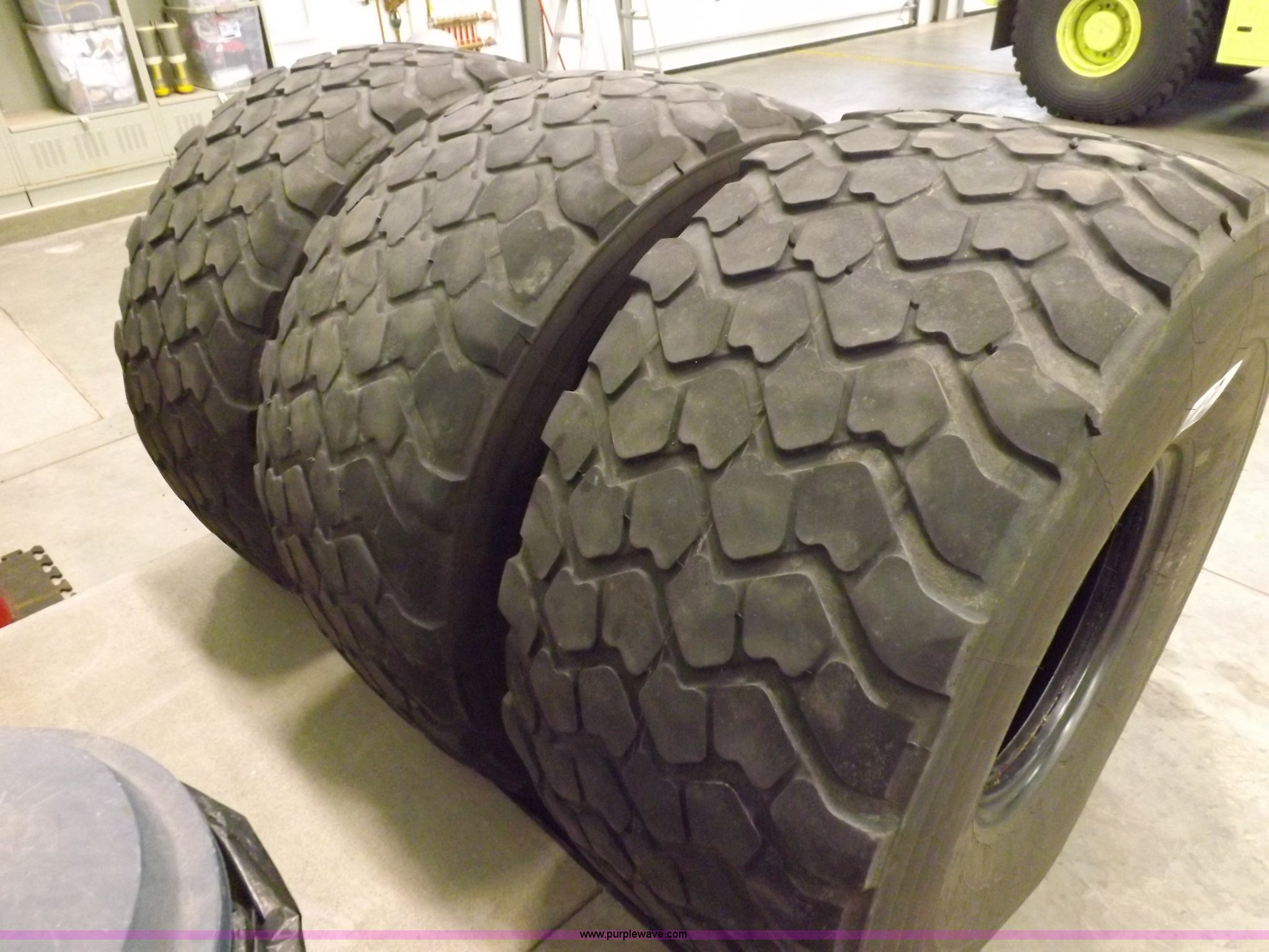 Purple Wave is selling a used Industrial Tires or Tracks in Kansas. This item is a (3) Michelin XZL 24R21 tires with the following: Radial, 16 ply, 176G at 85 psi, Maximum load single 15,700 lbs, Tubeless, Regroovable