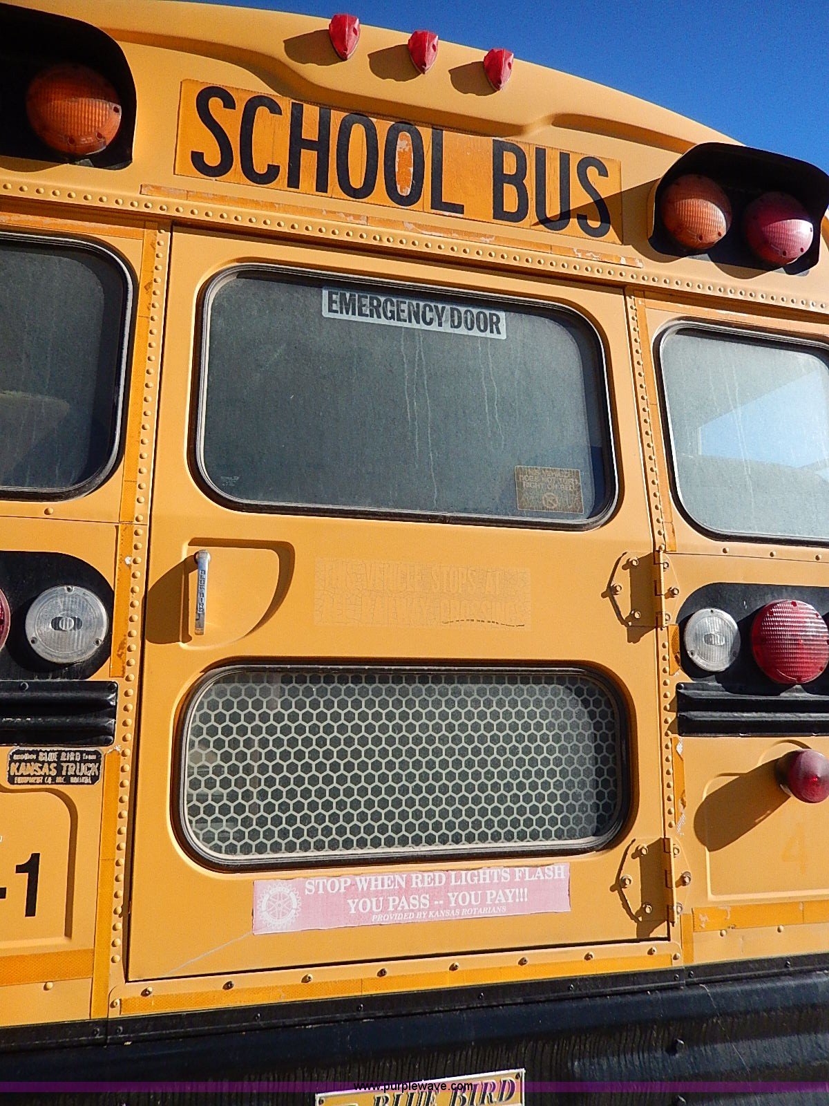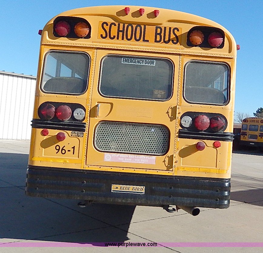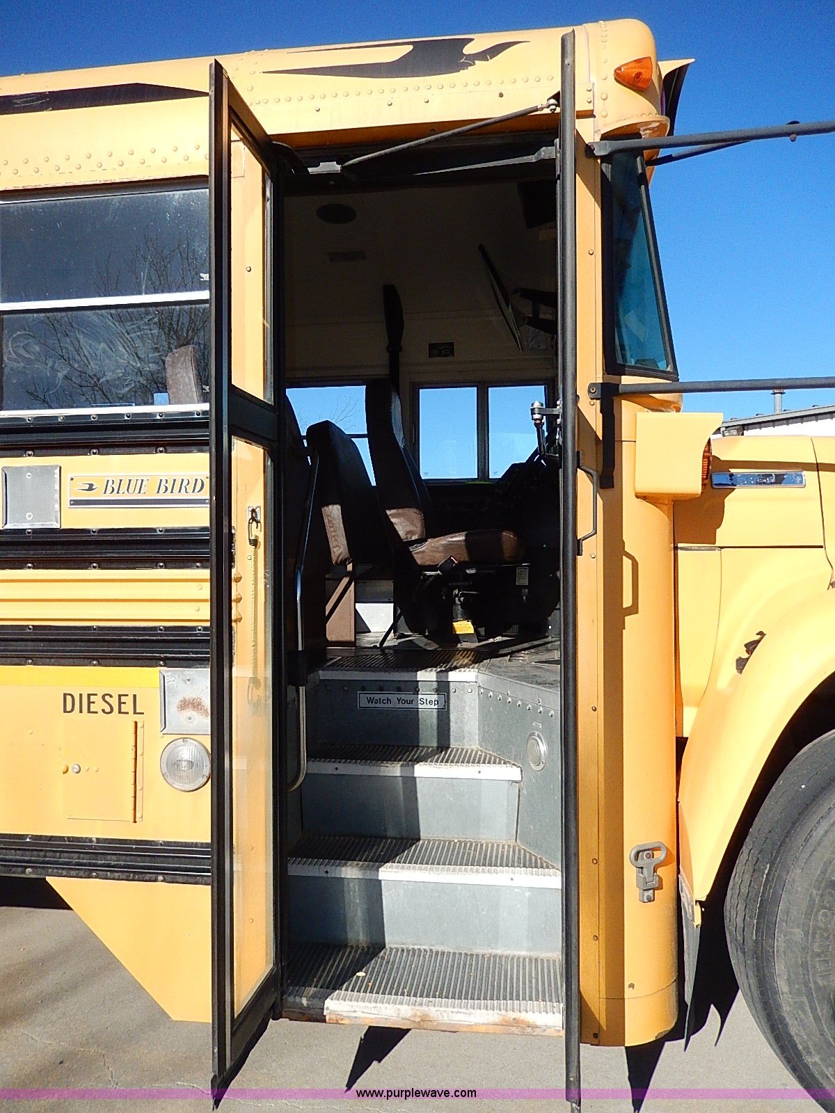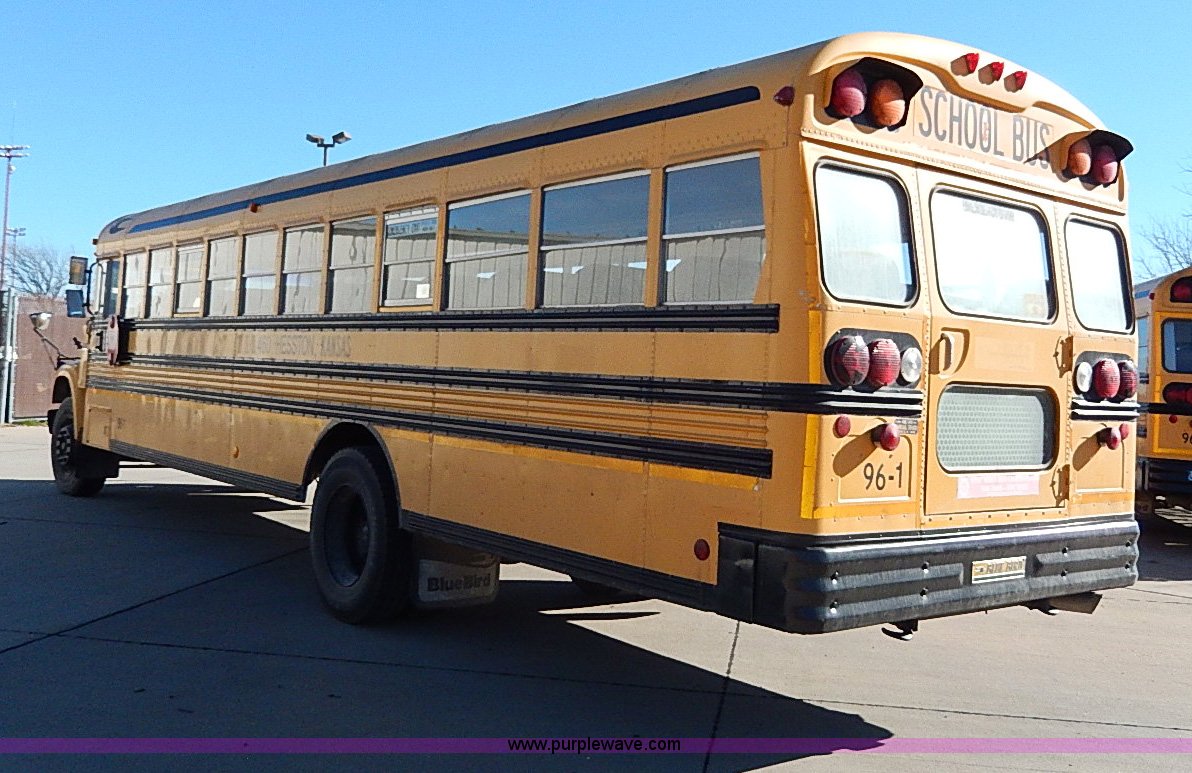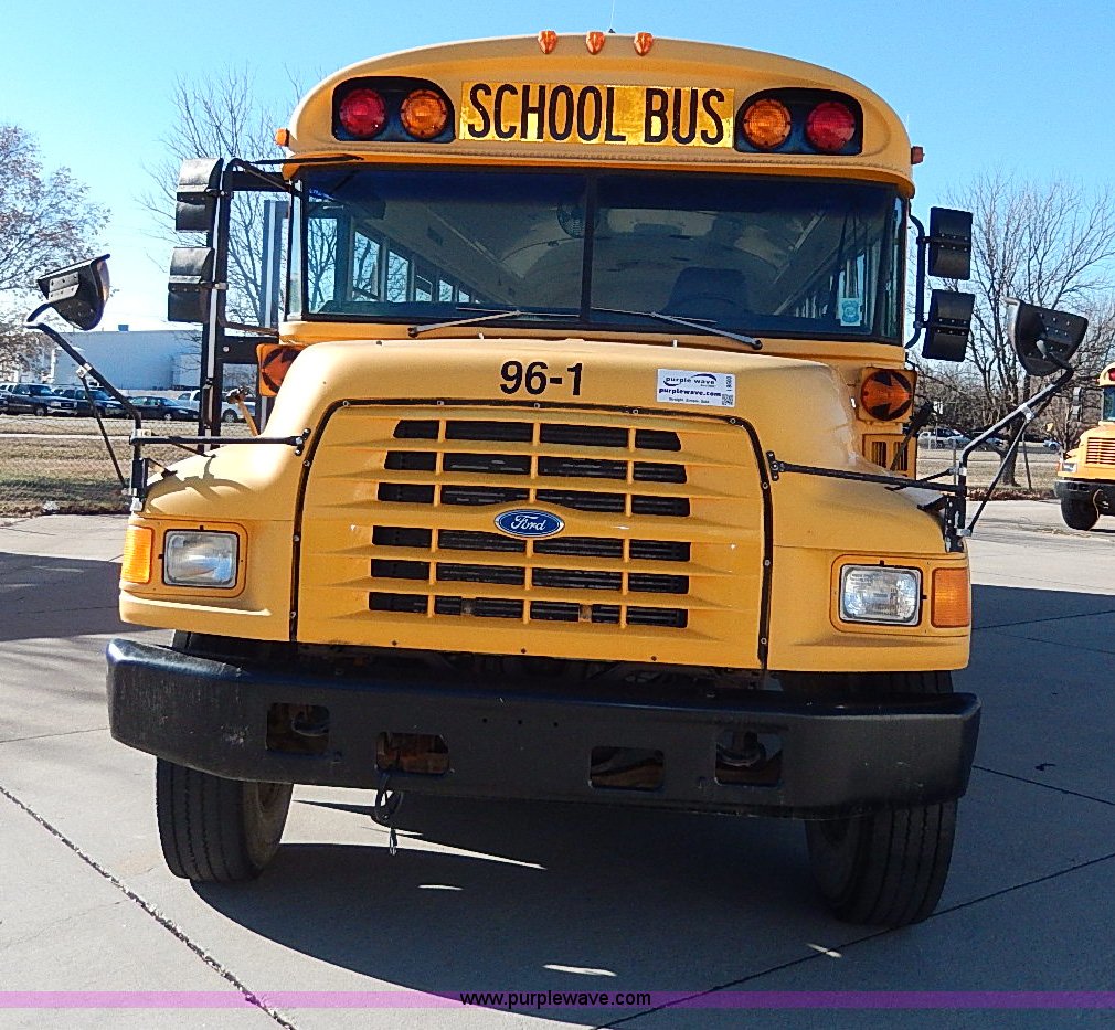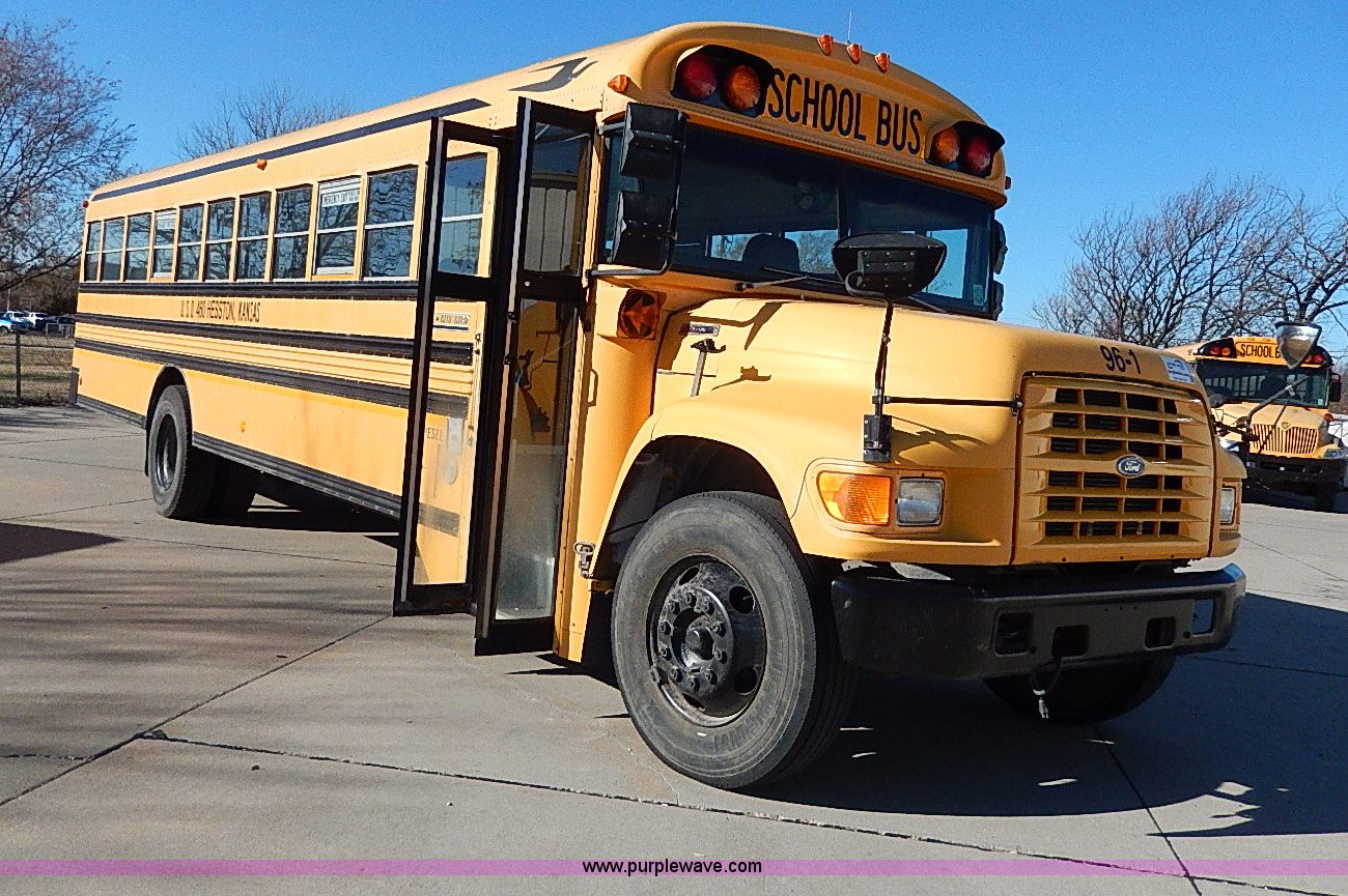 Purple Wave is selling a used Bus in Kansas. This item is a 1996 Ford B800 Bluebird school bus with the following: 18,577 miles on odometer, Odometer has been replaced, Approx. 94,722 total miles, Cummins 5.9L L6 diesel engine, Allison automatic transmission, Heat, AM/FM, Manual windows and locks, Vinyl interior, 65 passenger capacity, Block heater, Front and rear tow hooks, Air brakes, 11R22.5 tires, GVWR 28,000 lbs, FAWR 9,000 lbs, RAWR 19,000 lbs, Stop sign will be removed prior to auction, Unit# 96-1