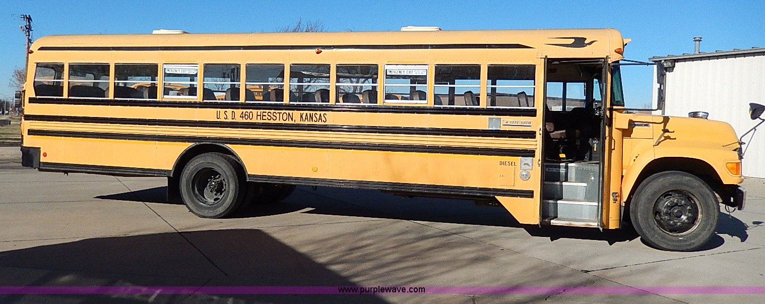 1996 Ford B800 Bluebird school bus. 18,577 miles on odometer Odometer has been replaced, Approx. 94,722 total miles, Cummins 5.9L L6 diesel engine, Allison automatic transmission, Heat, AM/FM, Manual windows and locks, Vinyl interior, 65 passenger capacity, Block heater, Front and rear tow hooks, Air brakes, 11R22.5 tires, GVWR 28,000 lbs, FAWR 9,000 lbs, RAWR 19,000 lbs, Stop sign will be removed prior to auction, Unit# 96-1. 1FDXB80C3TVA09960. Shipping quotes available. USD 460. 750 N Ridge Road. Hesston, KS 67062
