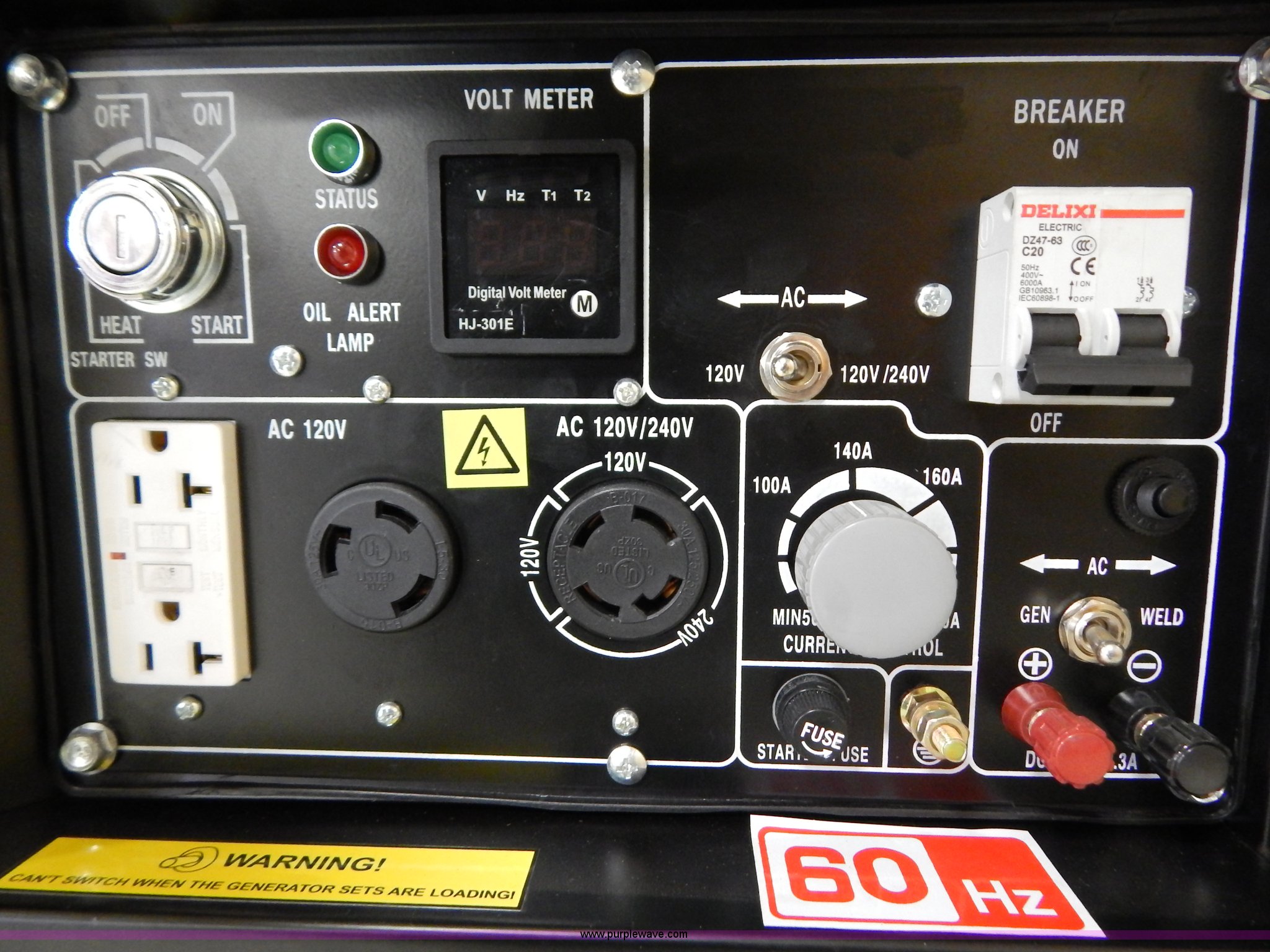 Apollo AED6500WF welder generator kit. 414cc single cylinder diesel engine 10 HP, 120/240V, 180 amp welder, 6,300 starting watts, 5,000 running watts, 50 percent duty cycle, Electric start, 7" hard rubber tires. Shipping quotes available. Apollo Industrial Corporation. 1814 Landrum Drive. Farmington, MO 63640