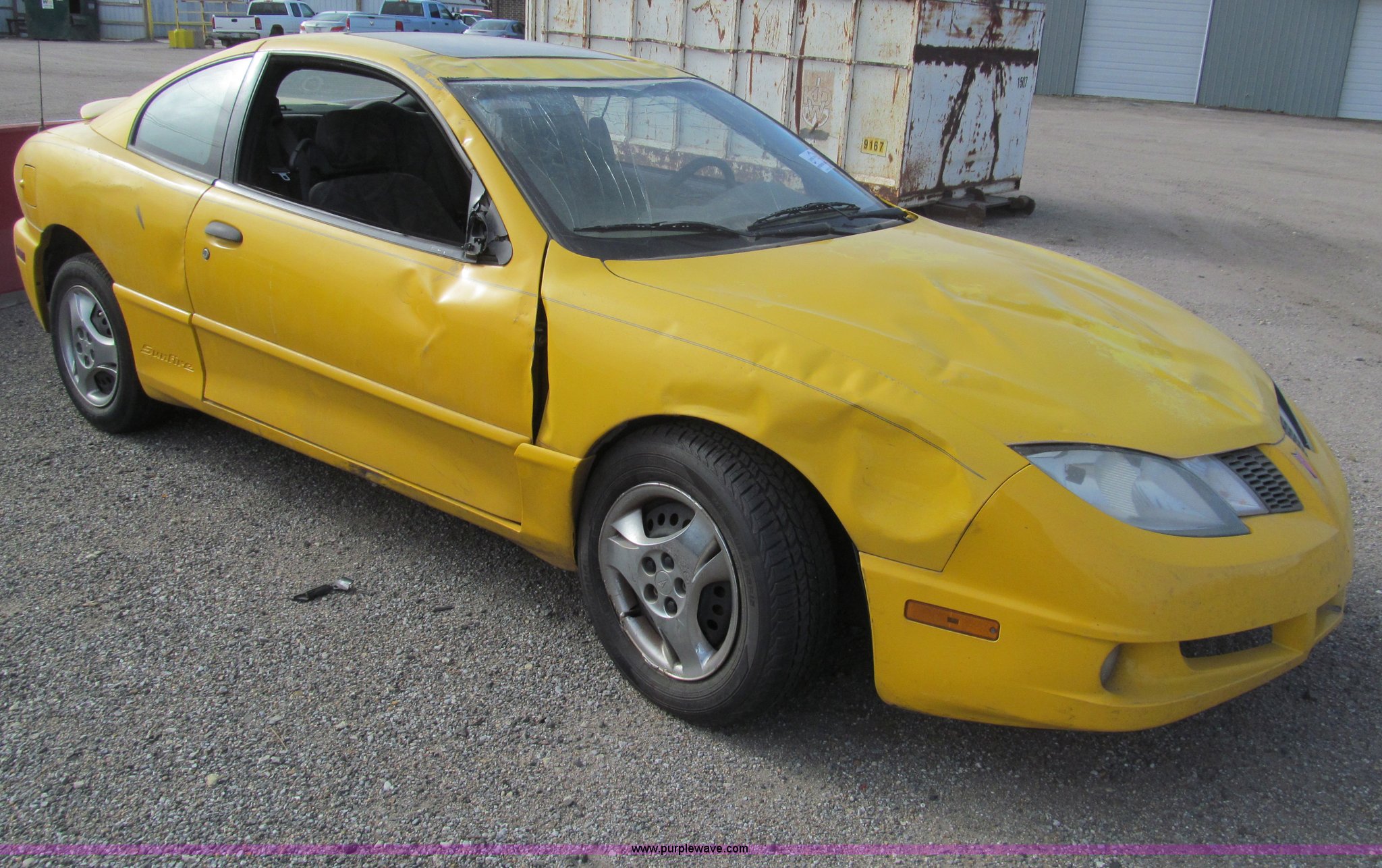 Purple Wave is selling a used Wrecked and Abandoned in Kansas. This item is a 2003 Pontiac Sunfire with the following: Unknown miles on odometer, 2.2L L4 DOHC 16V gas engine, Five speed manual transmission, AC and heat, Power windows and locks, Cloth interior, Sunroof, Keys, 195/65R15 tires, Interior/exterior cosmetic damage, Windshield cracked, Dents, Case# 13C066085