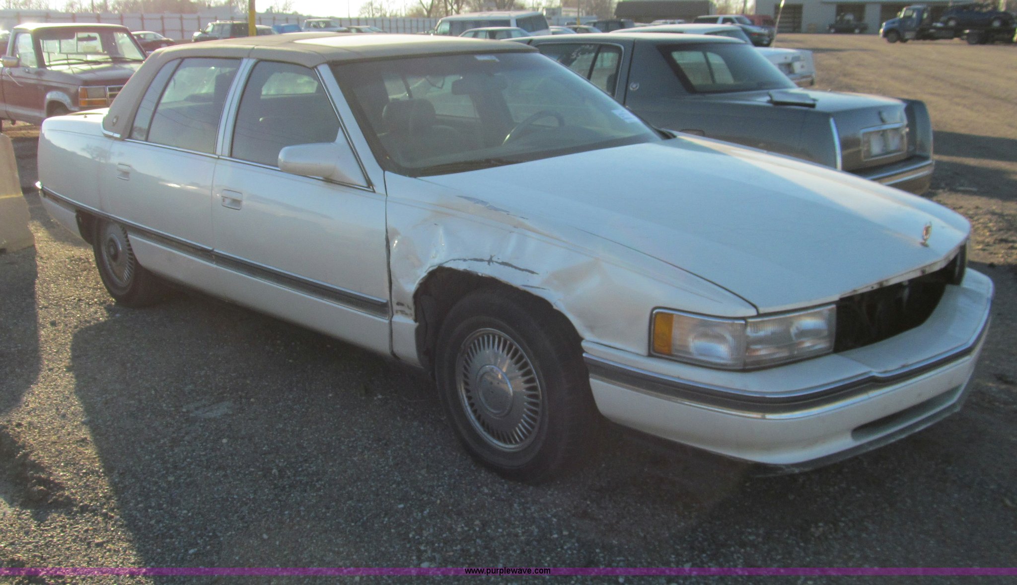 Purple Wave is selling a used Wrecked and Abandoned in Kansas. This item is a 1995 Cadillac DeVille with the following: Unknown miles on odometer, 4.9L V8 OHV 16V gas engine, Automatic transmission, AM/FM/cassette, Power windows, locks, mirrors, and seats, Leather interior, Sunroof, P215/70R15 tires, Interior/exterior cosmetic damage, Right fender collision damage, Case# 13C65617