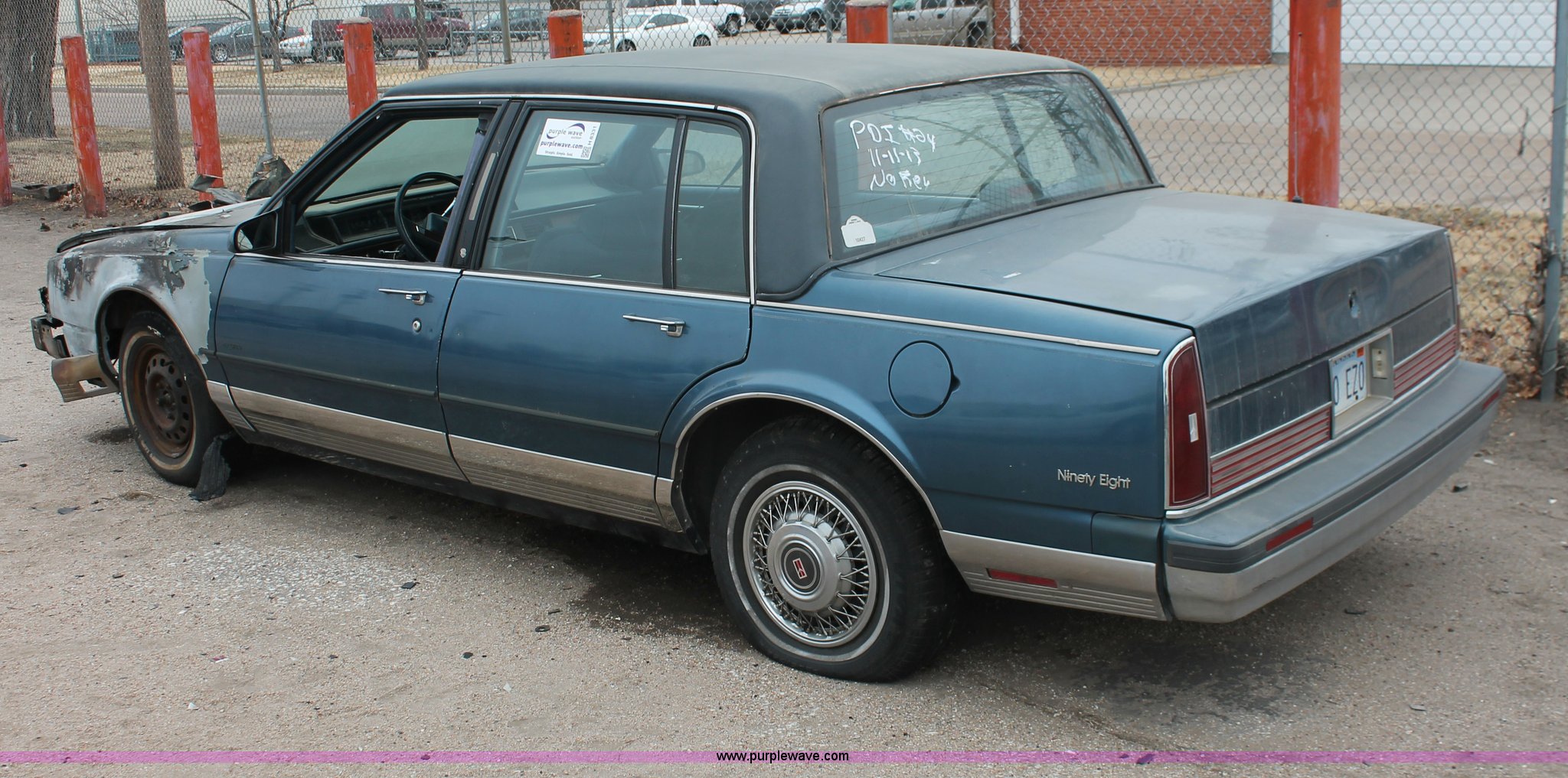 1990 Oldsmobile Ninety Eight Regency Brougham. 182,949 miles on odometer, 3.8L V6 OHV 12V gas engine, Automatic transmission, P205/75R14 tires, Fire damage, Window down, Flat tire, Dash damage, Truck keyhole has been removed, Case# 13C75235. Vehicle is abandoned. No additional information is available. Vehicle does not have keys unless notated otherwise in the item listing.. View City Of Wichita Terms for title acquisition and item removal requirements.. 1G3CW54C3L4302442. Bud Roat Towing. 310 N Handley. Wichita, KS 67216