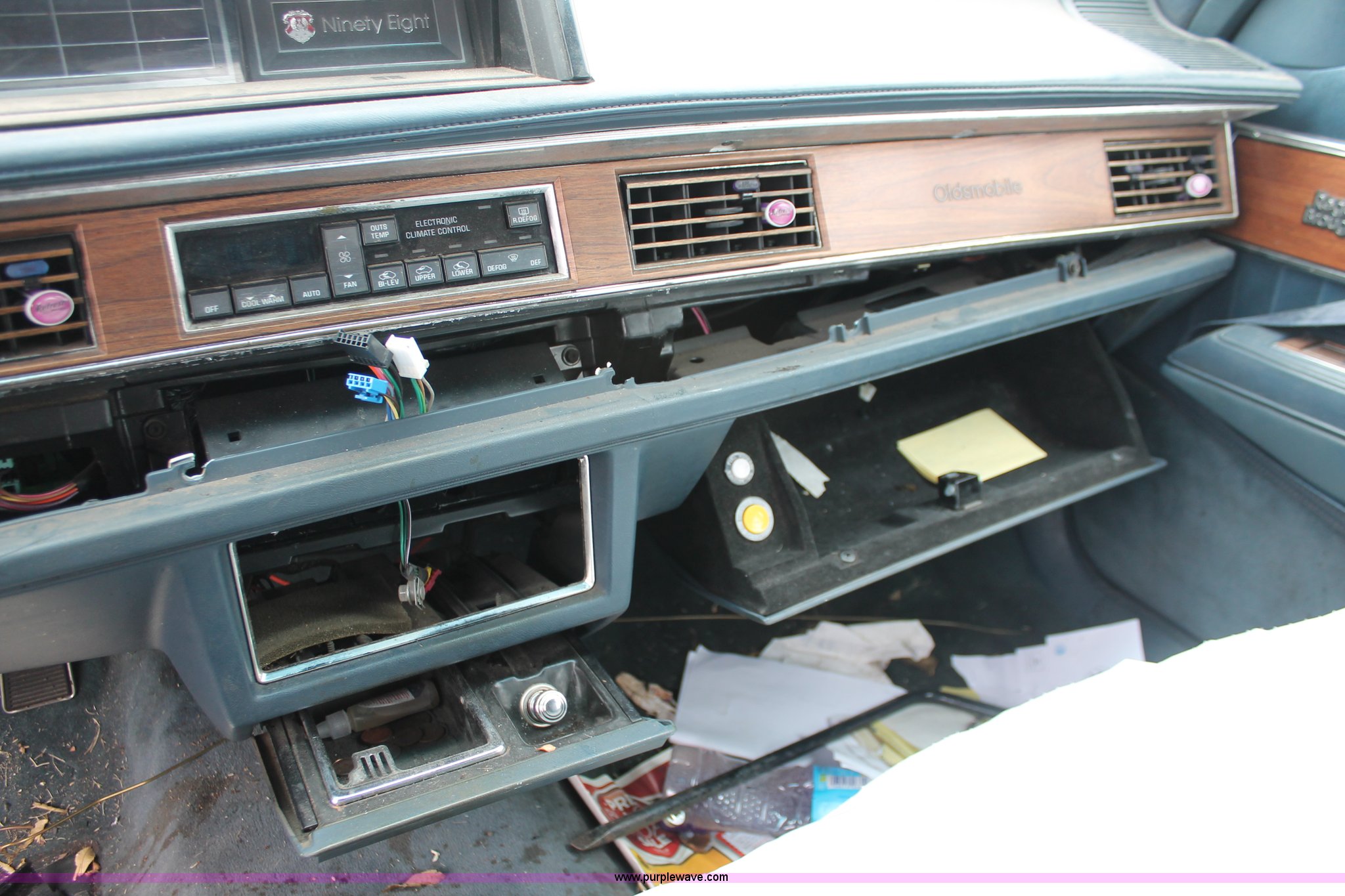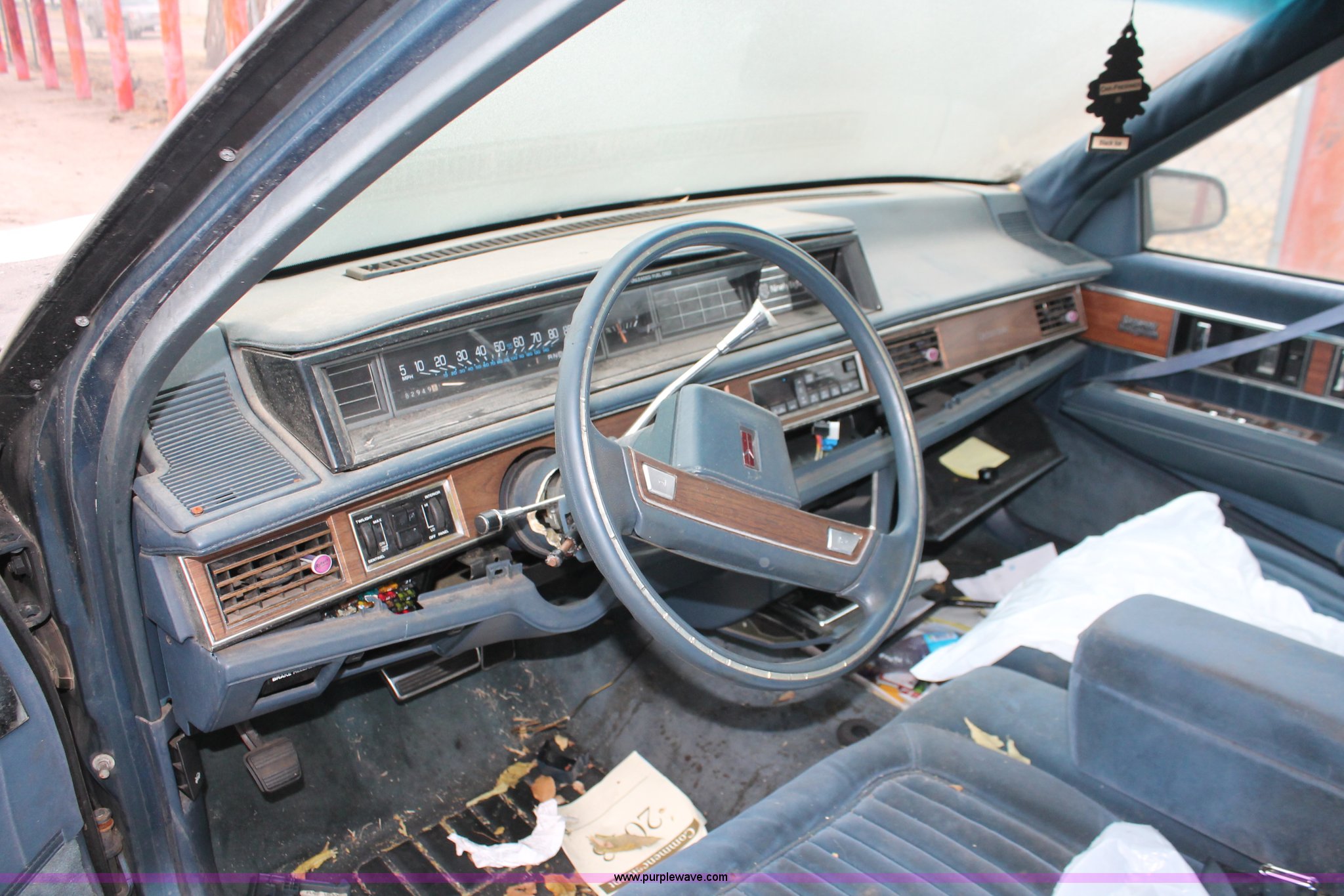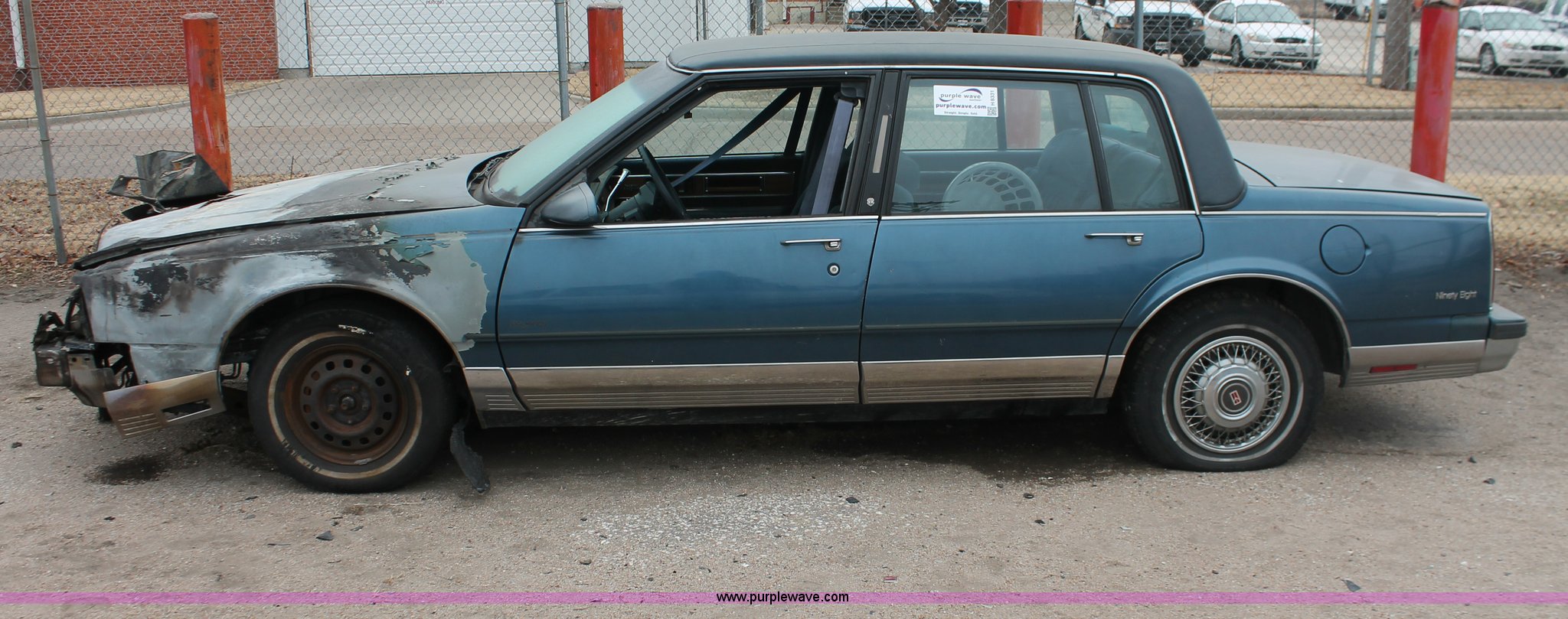 Purple Wave is selling a used Wrecked and Abandoned in Kansas. This item is a 1990 Oldsmobile Ninety Eight Regency Brougham with the following: 182,949 miles on odometer, 3.8L V6 OHV 12V gas engine, Automatic transmission, P205/75R14 tires, Fire damage, Window down, Flat tire, Dash damage, Truck keyhole has been removed, Case# 13C75235