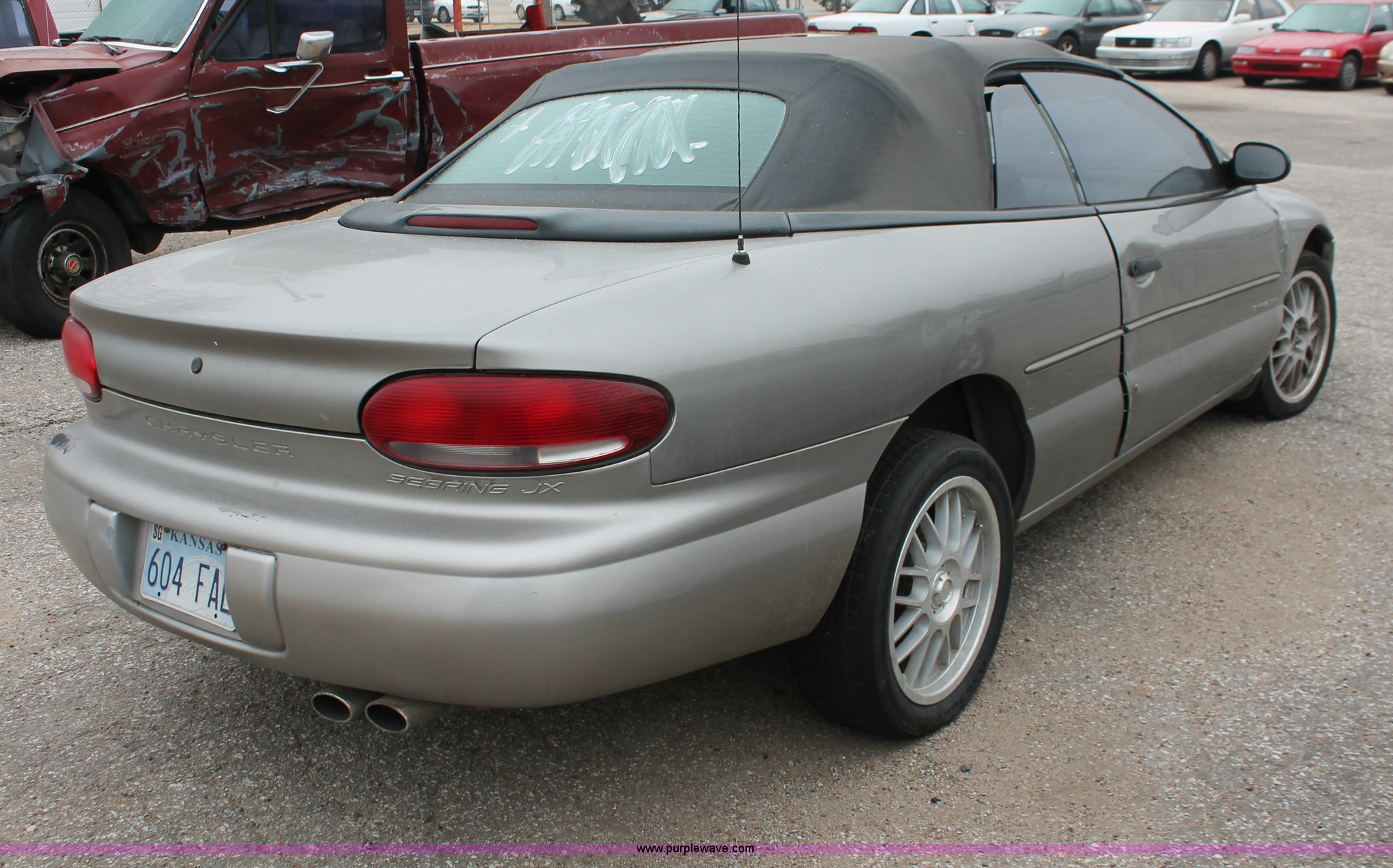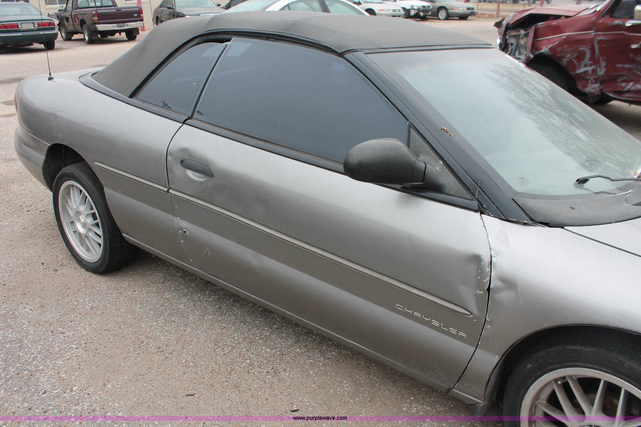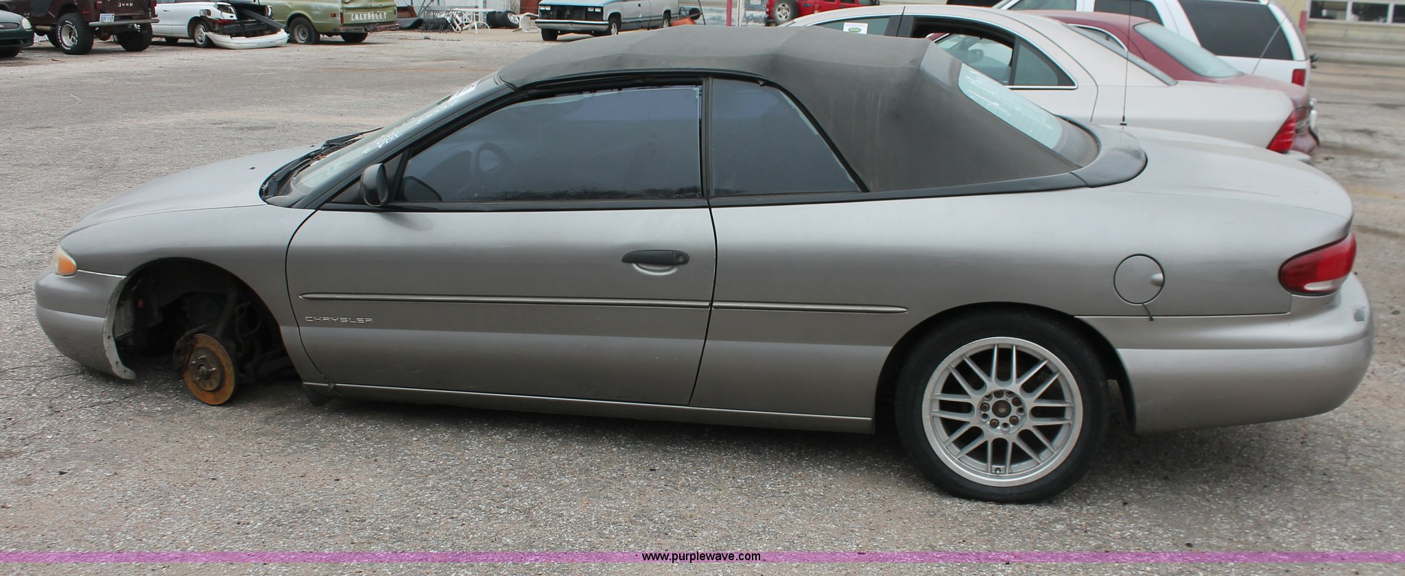 Purple Wave is selling a used Wrecked and Abandoned in Kansas. This item is a 1998 Chrysler Sebring JX convertible with the following: Unknown miles on odometer, 2.5L V6 SOHC 24V gas engine, Automatic transmission, 215/50R17 tires, Windows down, Front tires and wheel missing, Interior damage, Door damage, Case# 13C74354