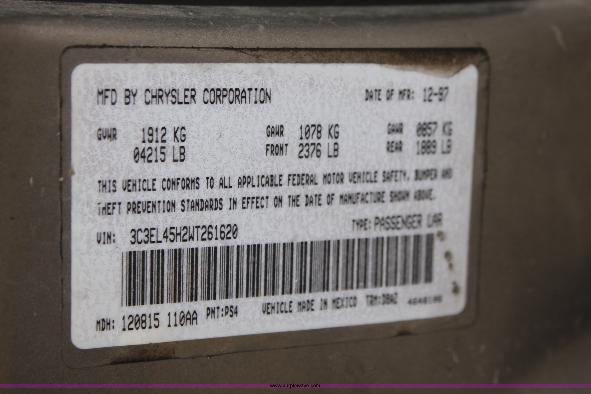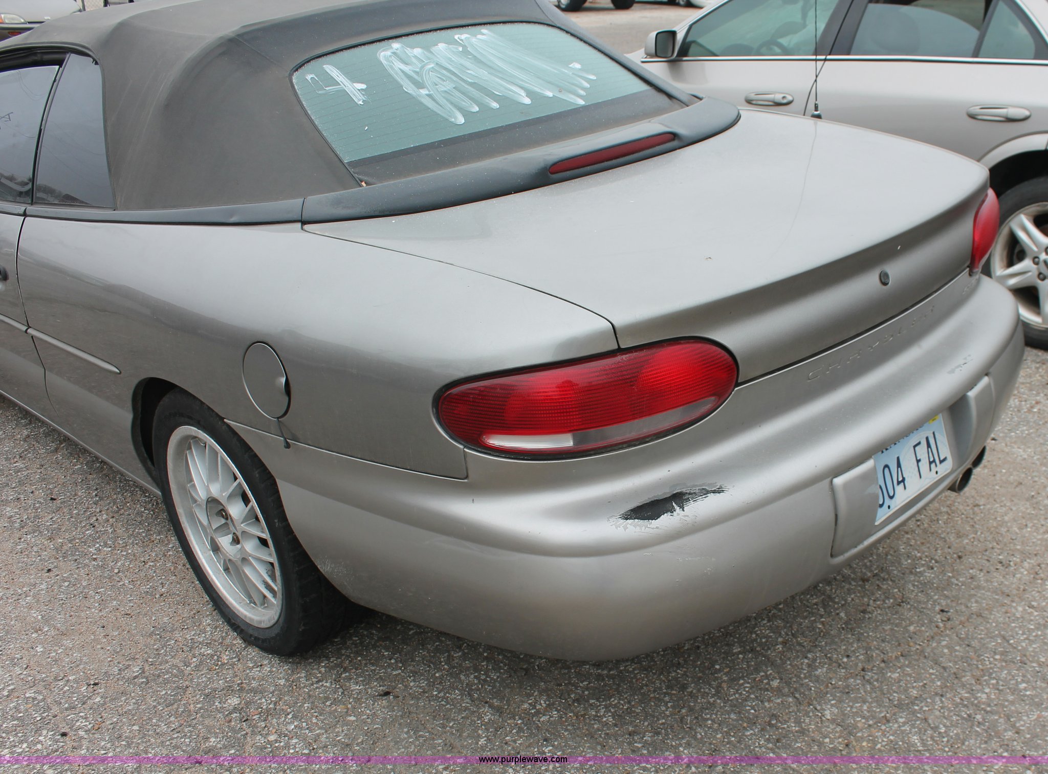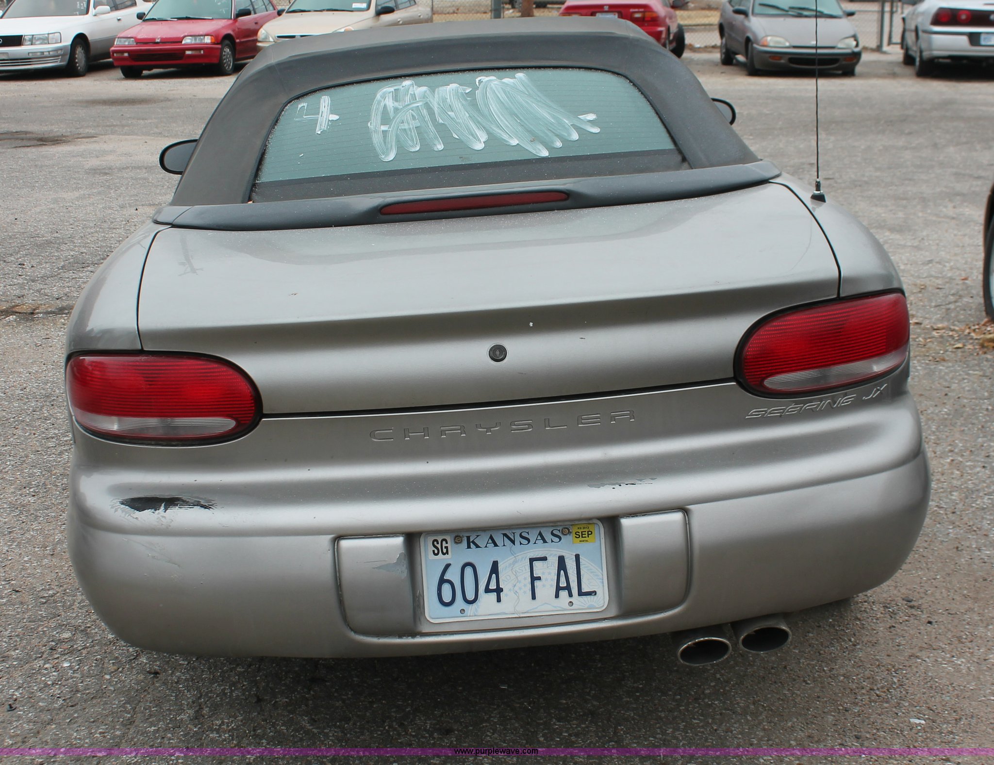 Purple Wave is selling a used Wrecked and Abandoned in Kansas. This item is a 1998 Chrysler Sebring JX convertible with the following: Unknown miles on odometer, 2.5L V6 SOHC 24V gas engine, Automatic transmission, 215/50R17 tires, Windows down, Front tires and wheel missing, Interior damage, Door damage, Case# 13C74354