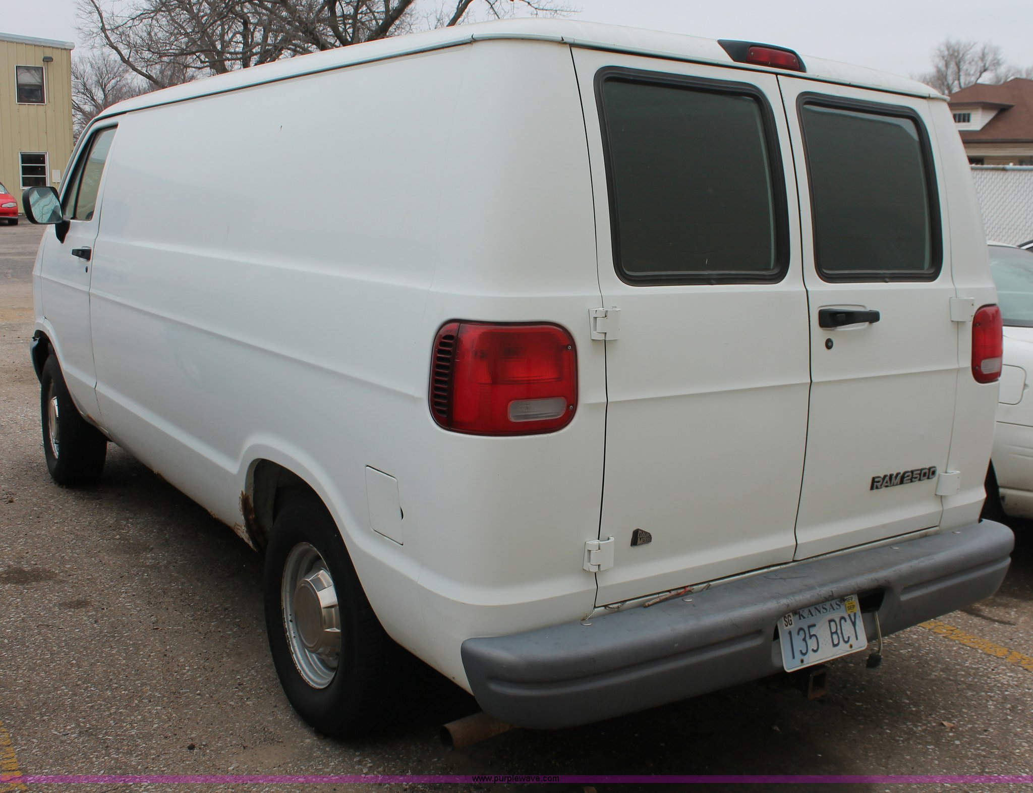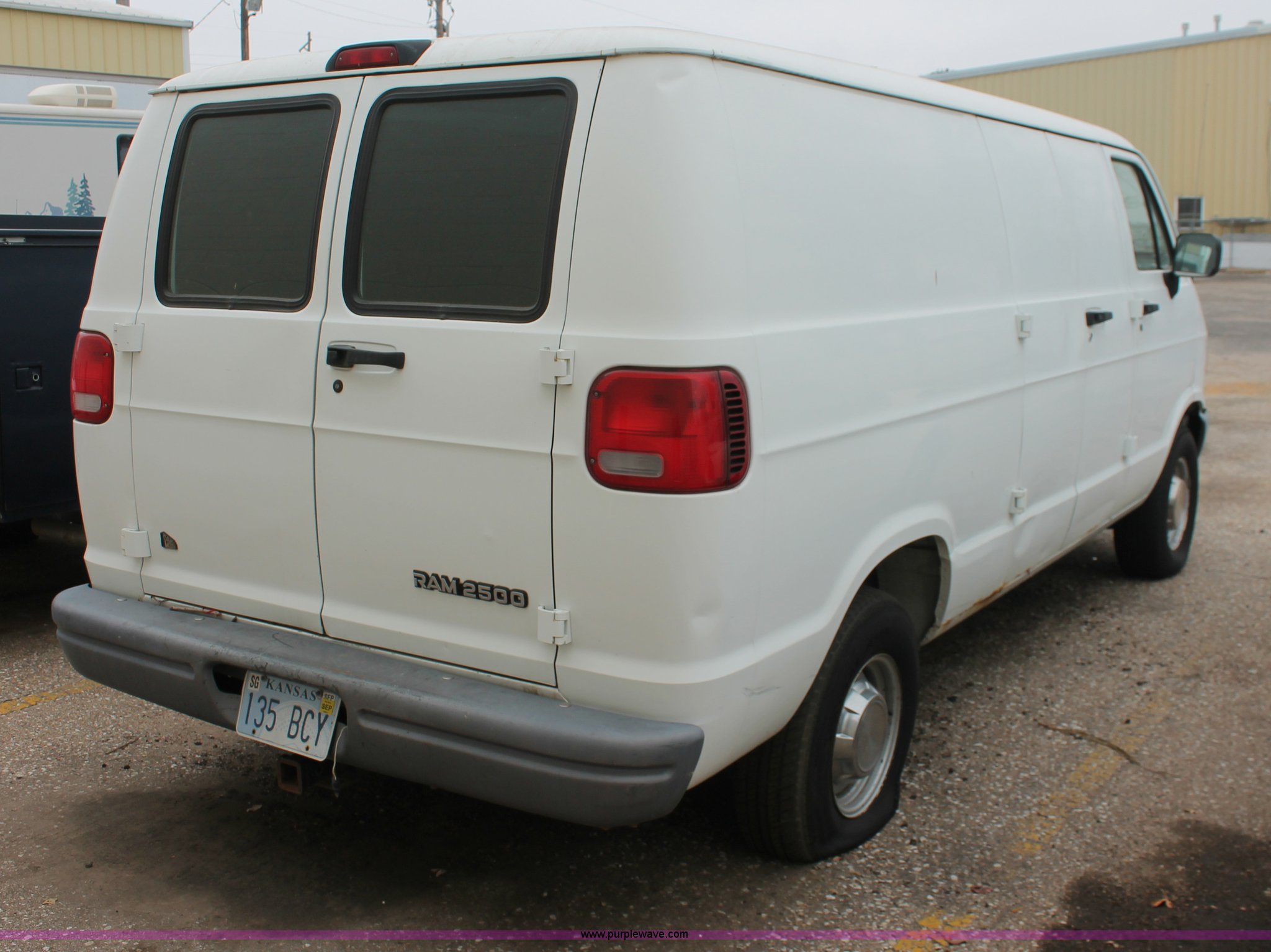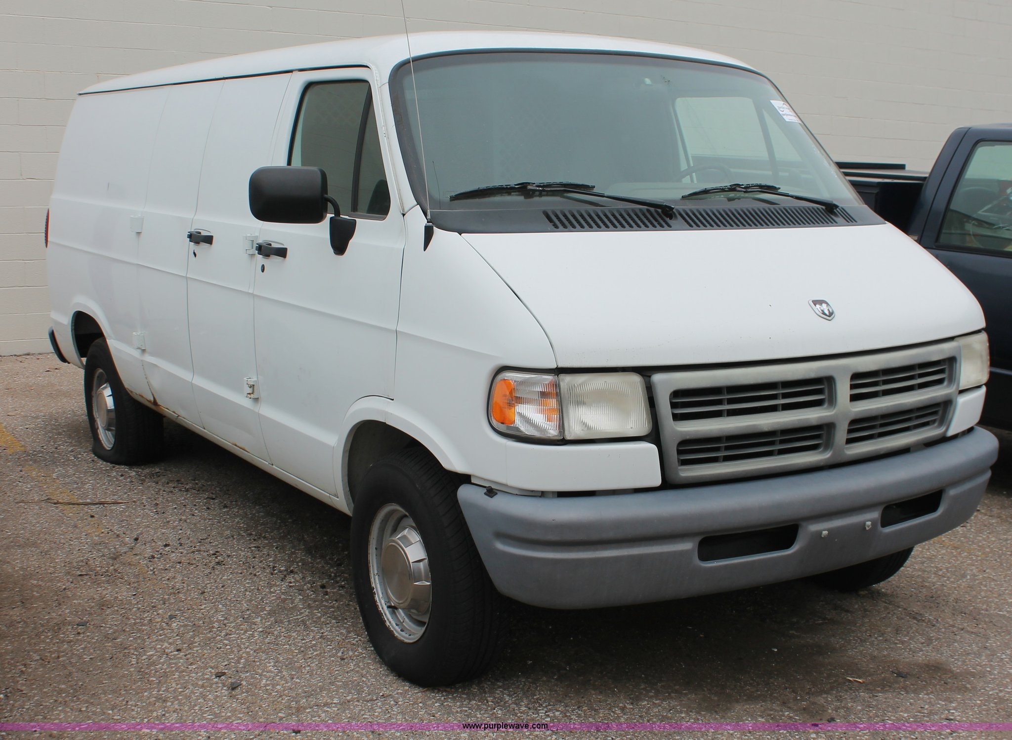 Purple Wave is selling a used Wrecked and Abandoned in Kansas. This item is a 1997 Dodge Ram 2500 van with the following: 157,613 miles on odometer, 5.2L V8 OHV 16V gas engine, Automatic transmission, AC and heat, Cruise, AM/FM, Manual windows and locks, Vinyl interior, Receiver hitch, Trailer wiring, P235/75R15 tires, Flat tire, Case# 13C74600