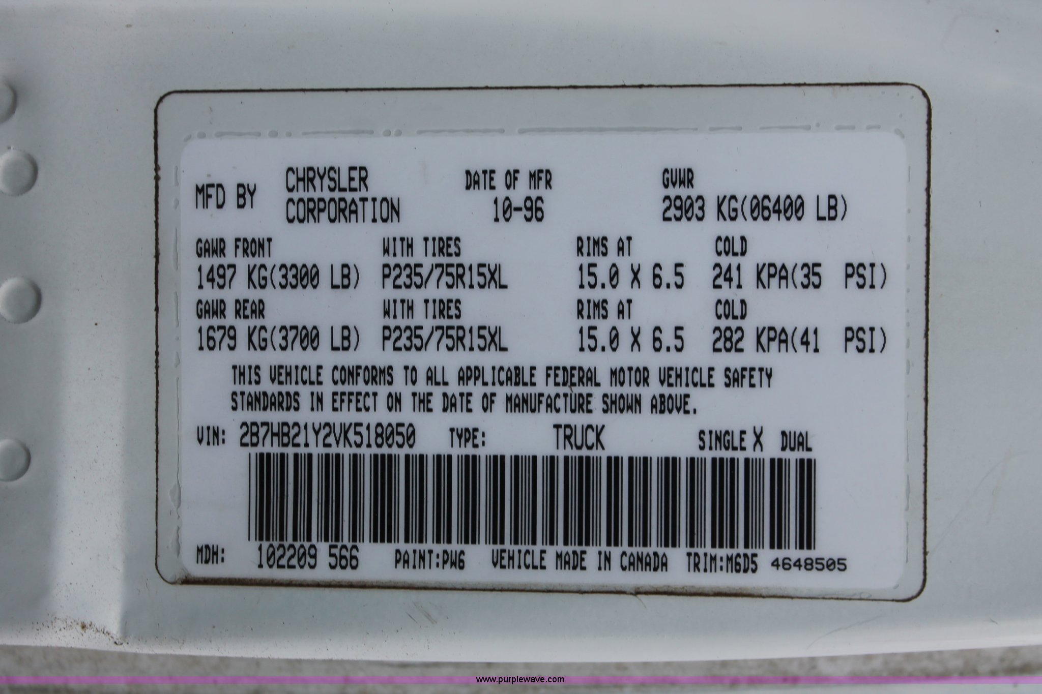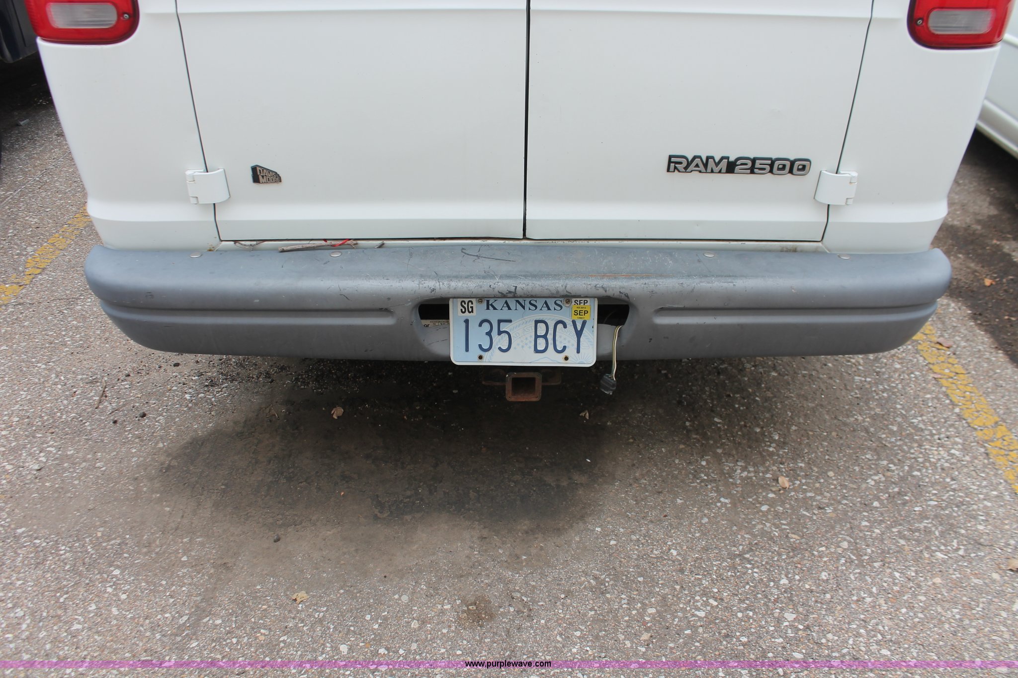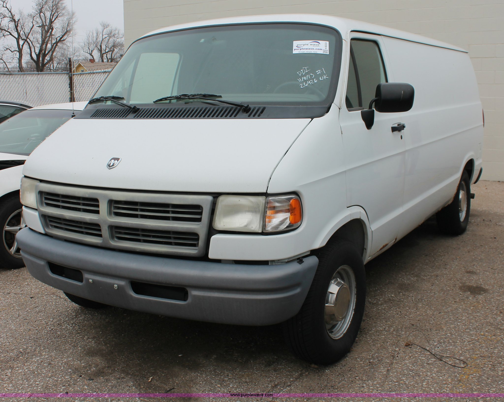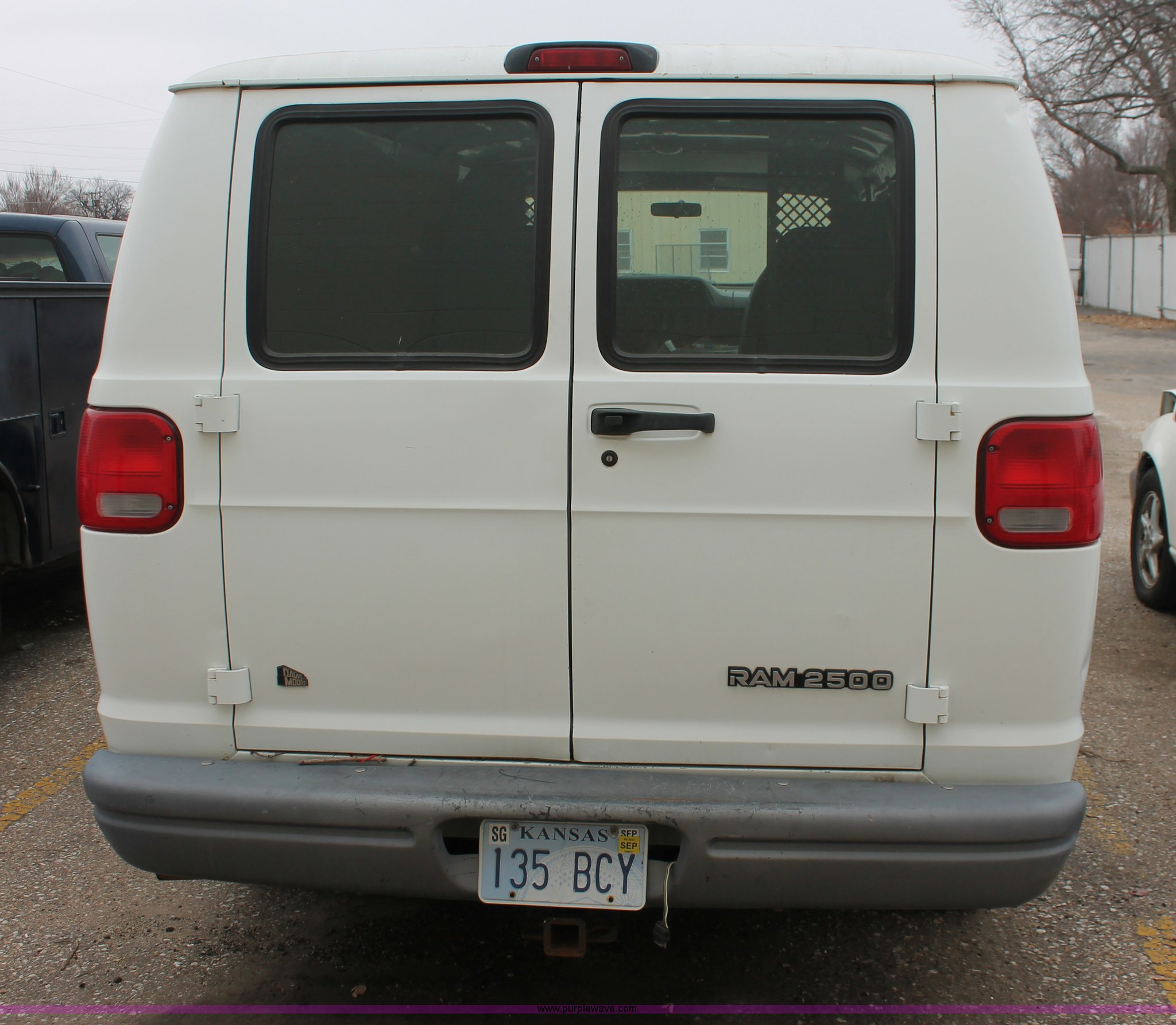 Purple Wave is selling a used Wrecked and Abandoned in Kansas. This item is a 1997 Dodge Ram 2500 van with the following: 157,613 miles on odometer, 5.2L V8 OHV 16V gas engine, Automatic transmission, AC and heat, Cruise, AM/FM, Manual windows and locks, Vinyl interior, Receiver hitch, Trailer wiring, P235/75R15 tires, Flat tire, Case# 13C74600