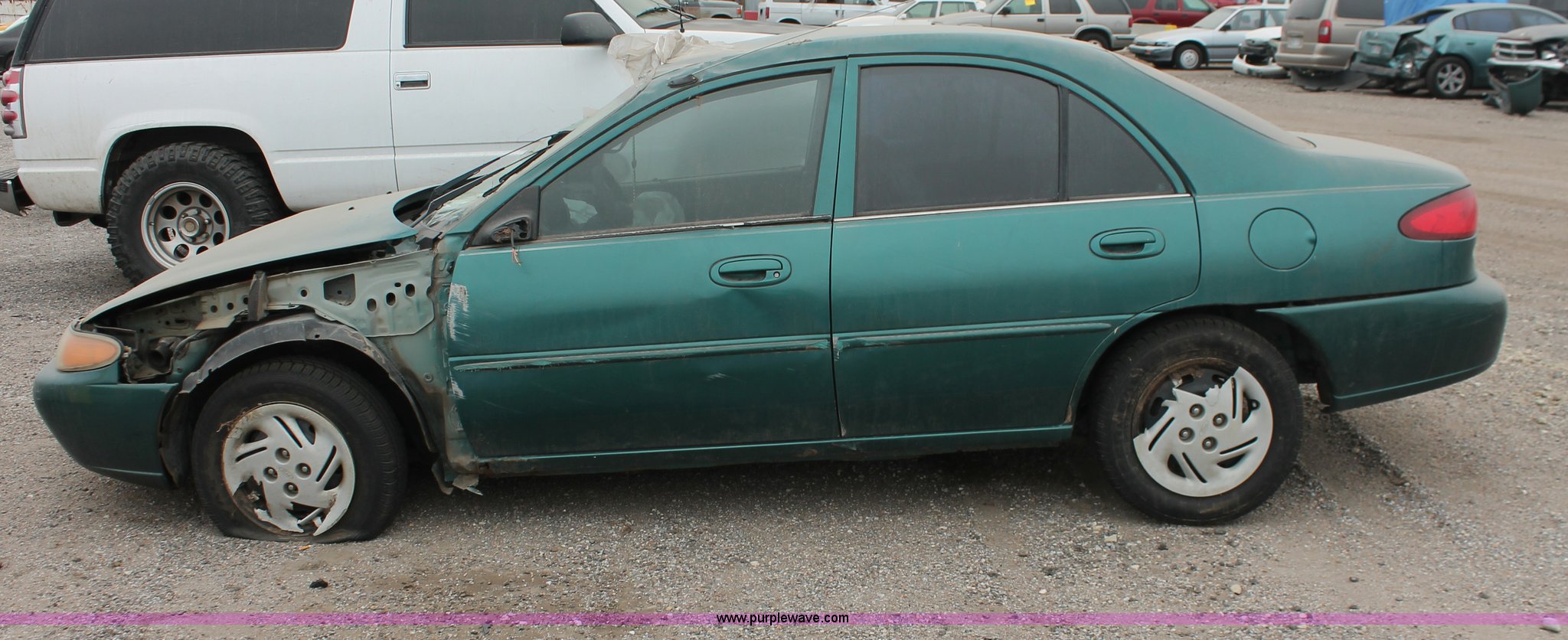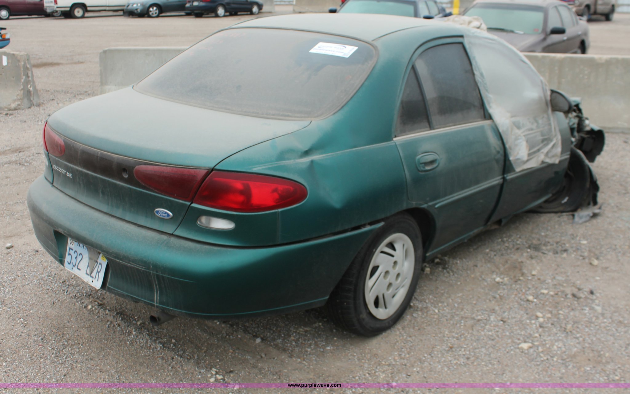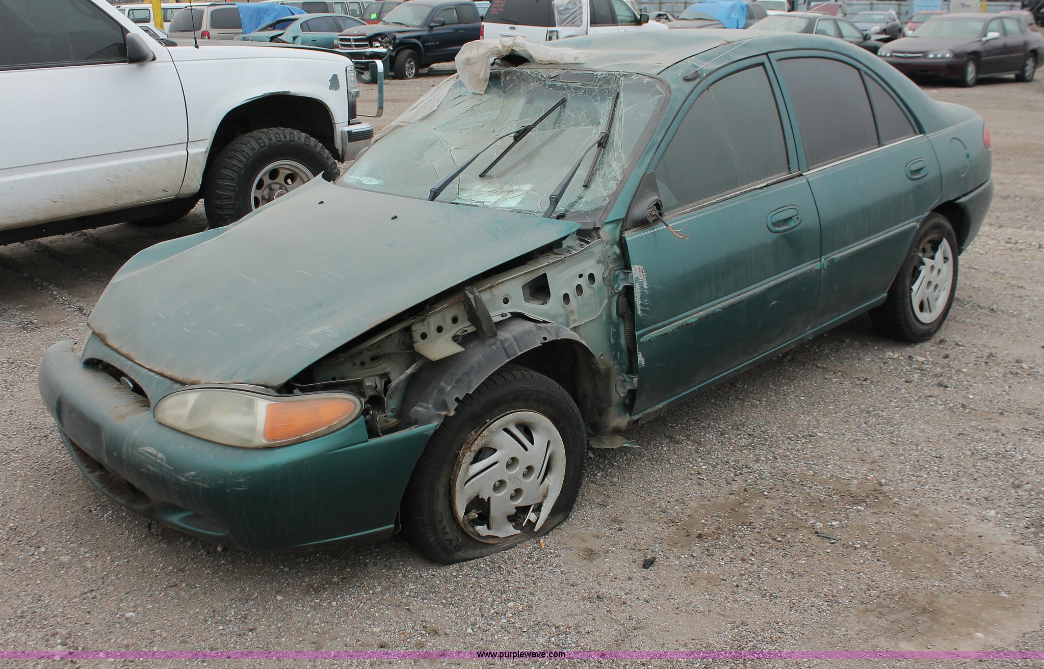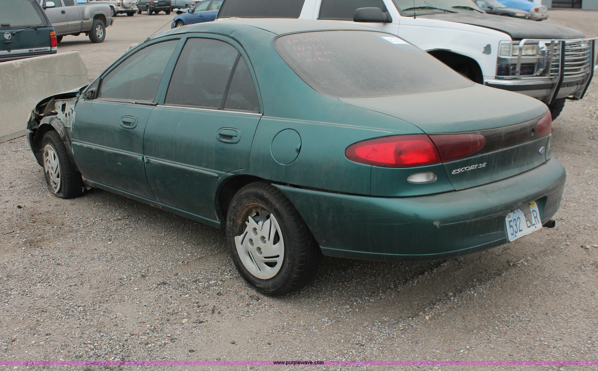 Purple Wave is selling a used Wrecked and Abandoned in Kansas. This item is a 1998 Ford Escort SE with the following: 233,000 miles on odometer, 2.0L L4 SOHC 8V gas engine, Five speed manual transmission, 185/65R14 tires, Front corner panel in cab, Front corner panel collision damage, Doors locked, Air bags deployed, Cracked glass, Flat tire, Case# 13C071907