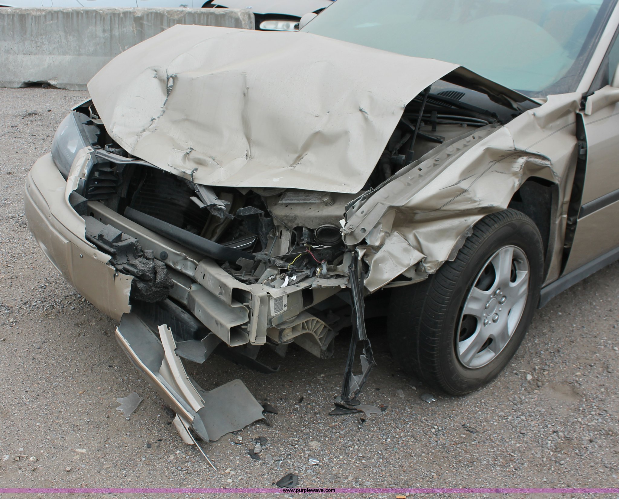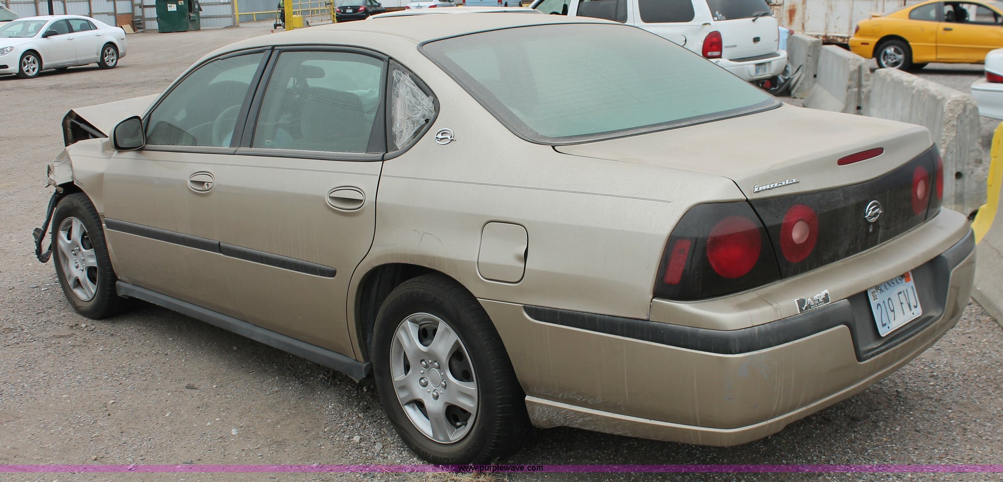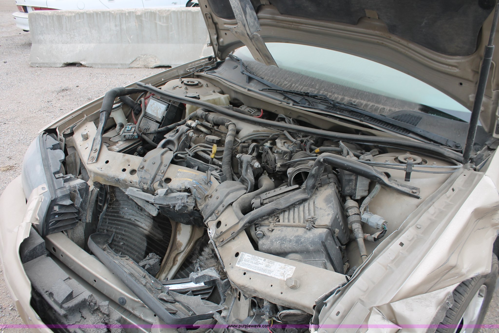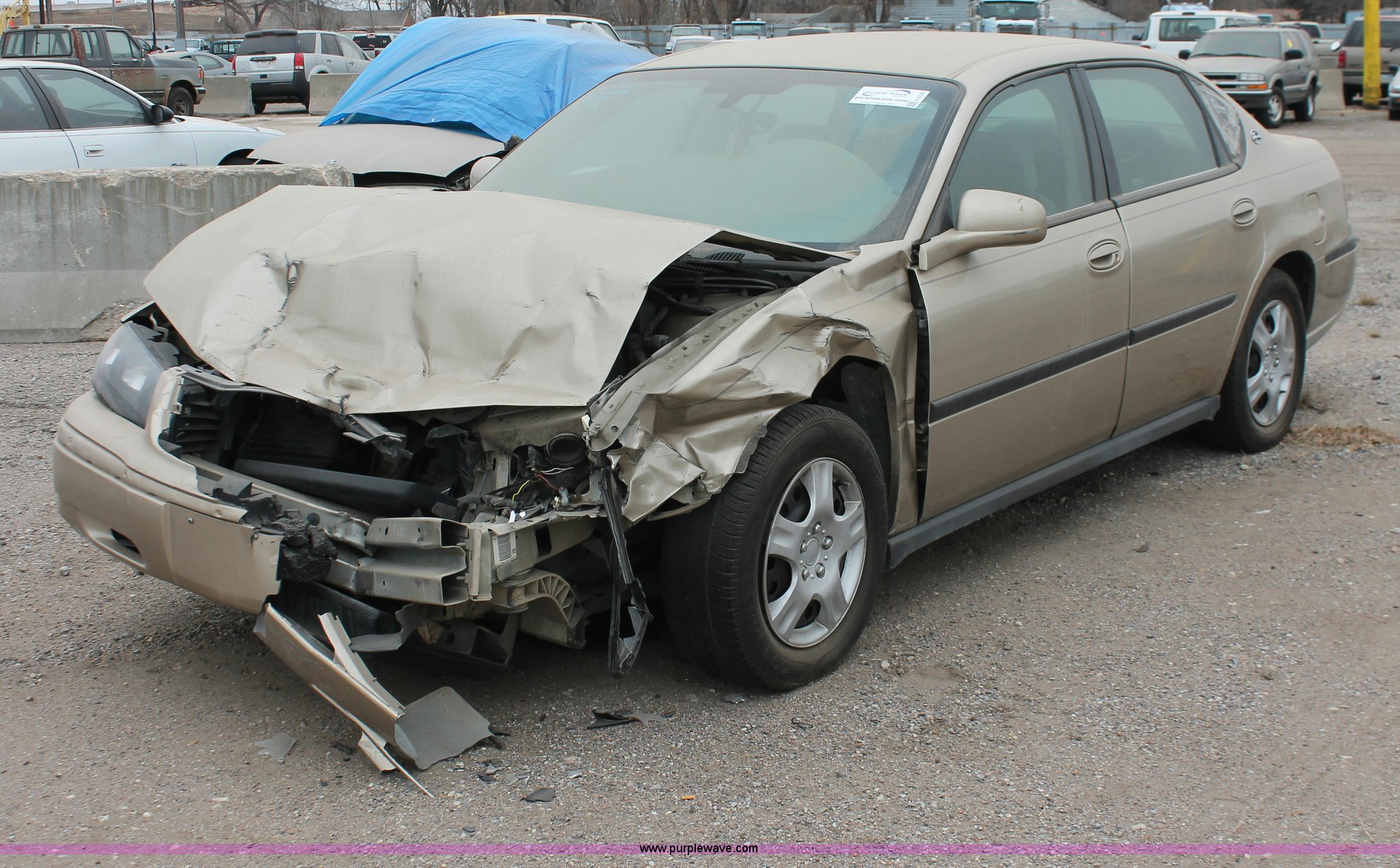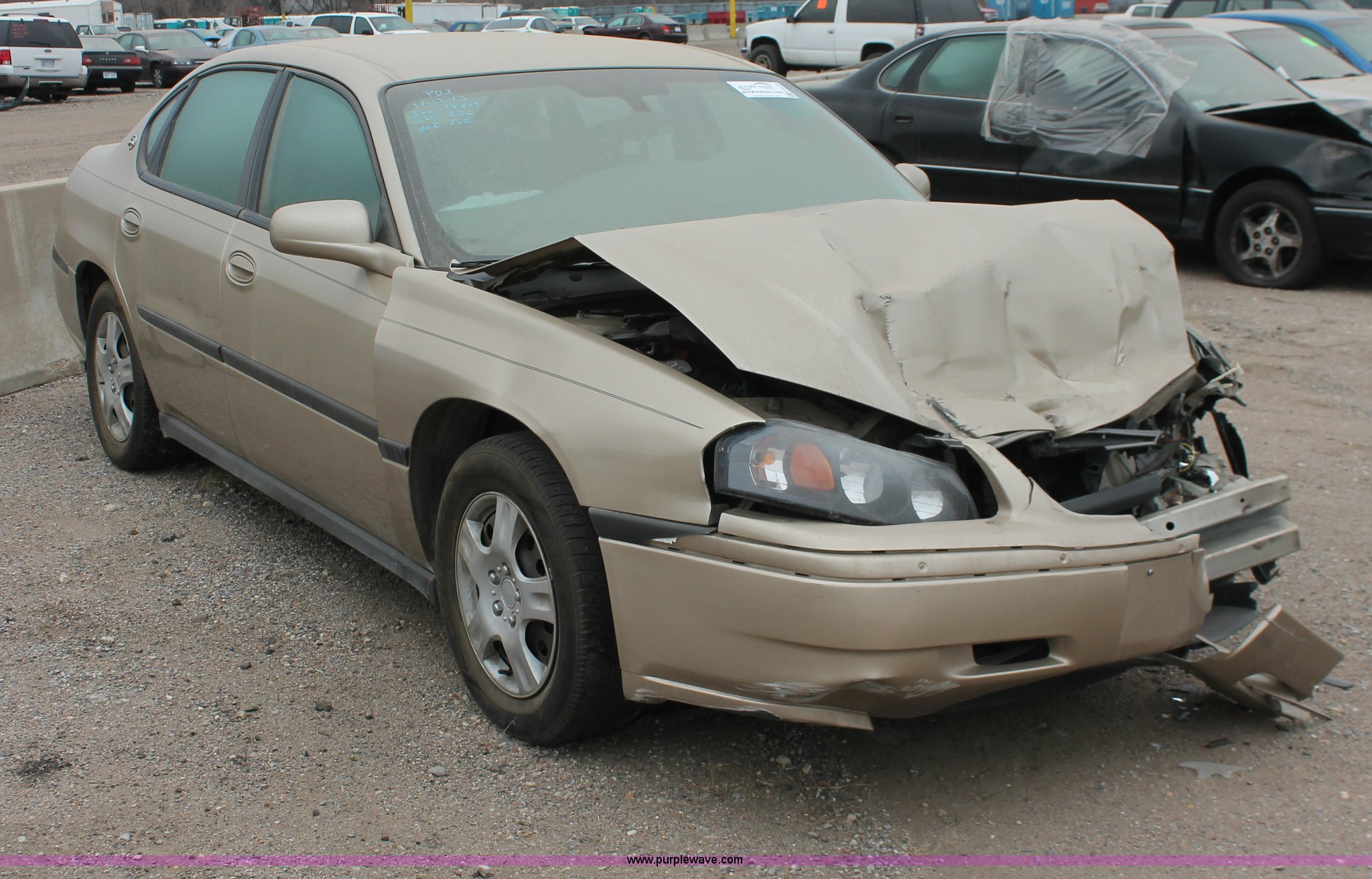 Purple Wave is selling a used Wrecked and Abandoned in Kansas. This item is a 2005 Chevrolet Impala with the following: Unknown miles on odometer, 3.4L V6 OHV 12V gas engine, Automatic transmission, JVC AM/FM/CD, 225/60R16 tires, Front end collision damage, Air bags deployed, Dashboard damage, Cracked glass, Case# 13C75690