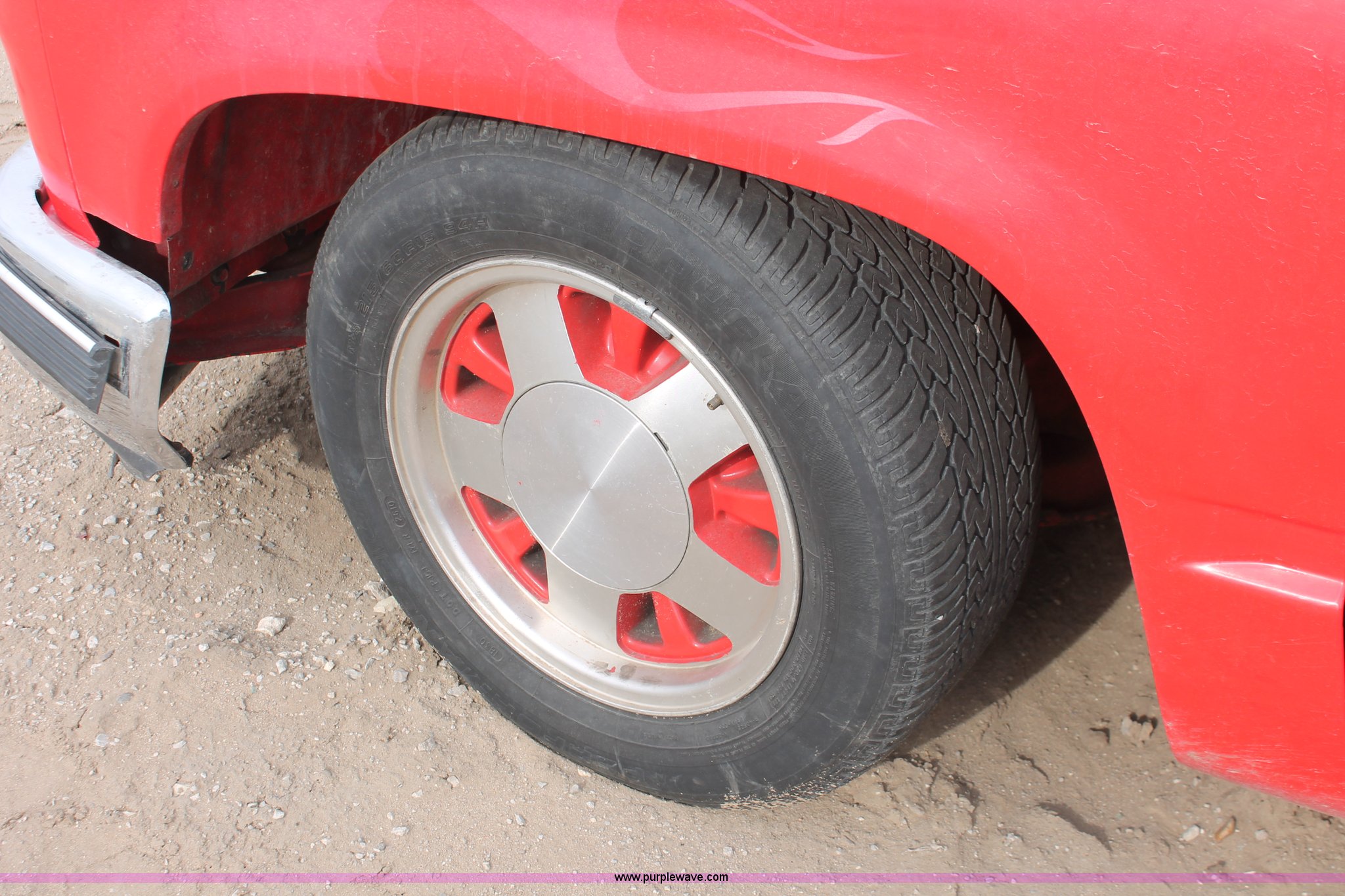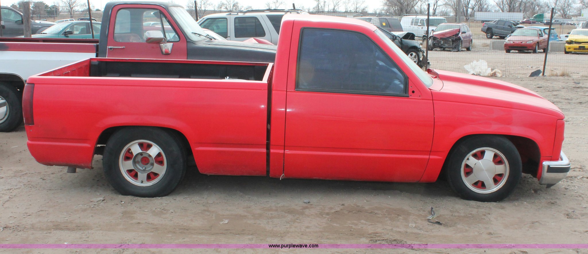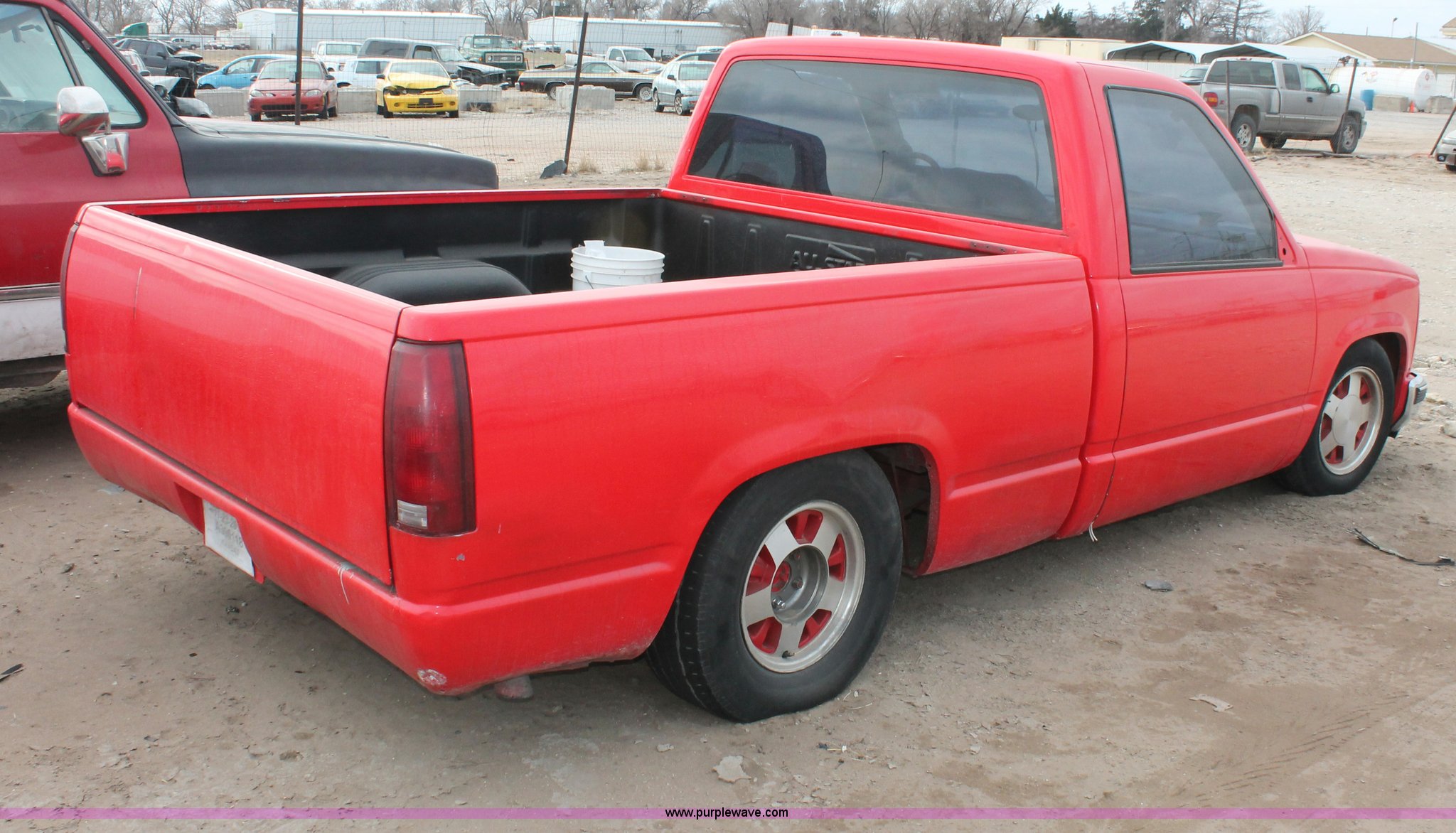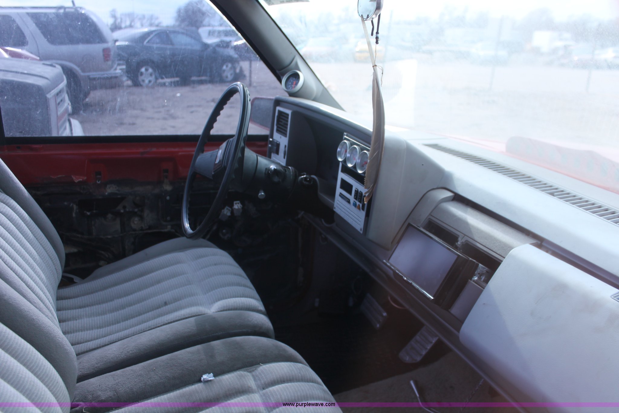 Purple Wave is selling a used Wrecked and Abandoned in Kansas. This item is a 1988 GMC Sierra 1500 pickup truck with the following: Unknown miles on odometer, 5.7L V8 OHV 16V gas engine, Automatic transmission, AC and heat, AM/FM/CD, Aftermarket display and gauges, Cloth interior, Aftermarket paint, lighting, and hood, P255/70R15 and 215/60R15 tires, Doors are locked, Missing passenger side mirror, Missing interior door panel, Case# 13C75735