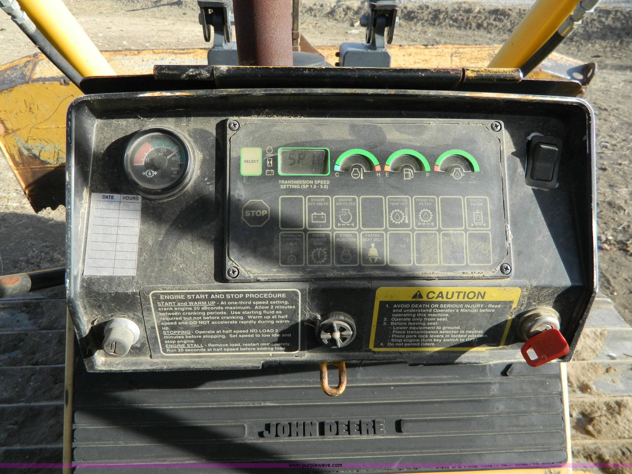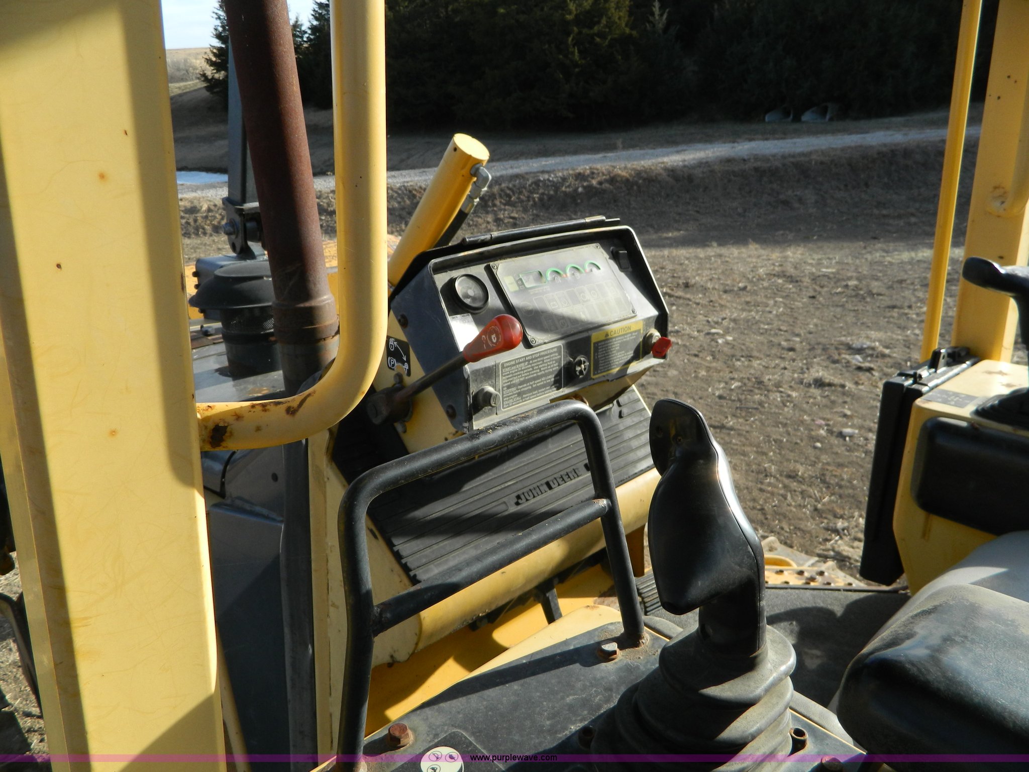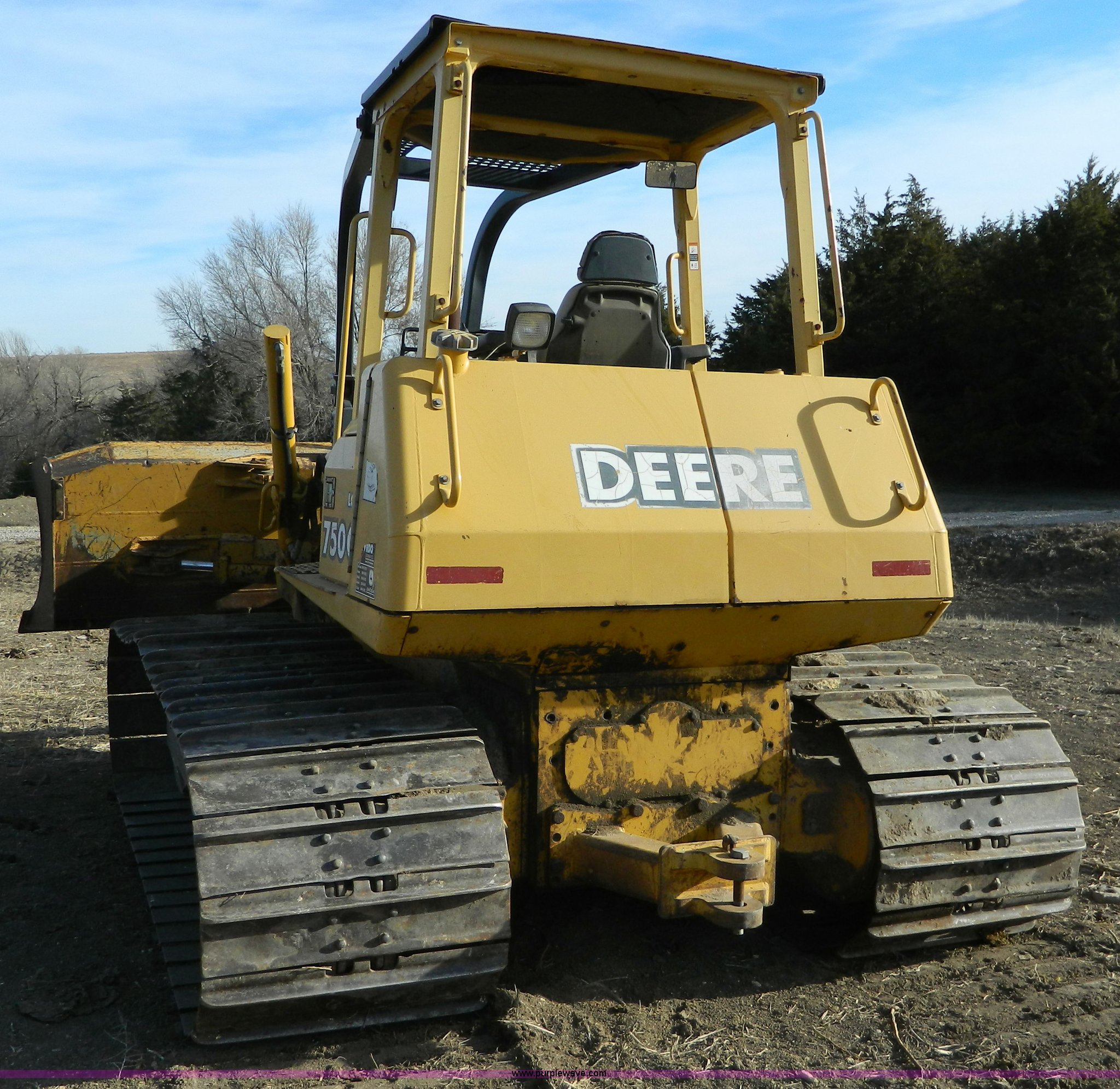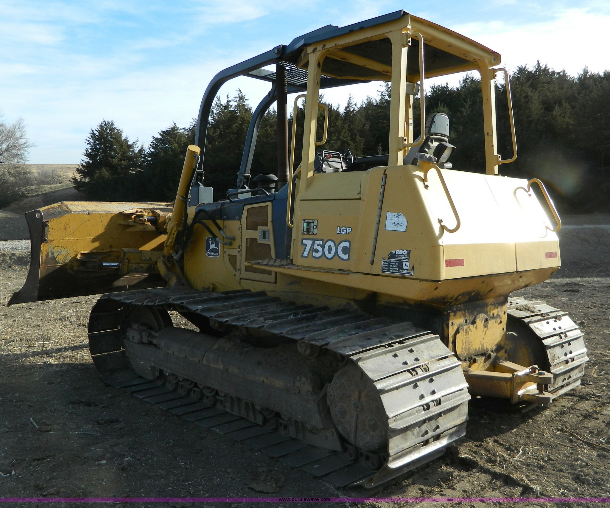 Purple Wave is selling a used Crawler Dozer in Kansas. This item is a 2000 John Deere 750C LGP Series II dozer with the following: 7,124 hours on meter, John Deere six cylinder turbo diesel engine, 140 HP, Hydrostatic transmission, Auto dual-path, Canopy, Suspension seat, Joystick steering, Engine enclosures, Electronic monitor system, 143" blade, Bolt-on cutting edge, Rear draw bar, Seven bottom rollers, 34" single grouse tracks, 36,576 lbs. base operating weight, Operators manual, Serial T0750C892126