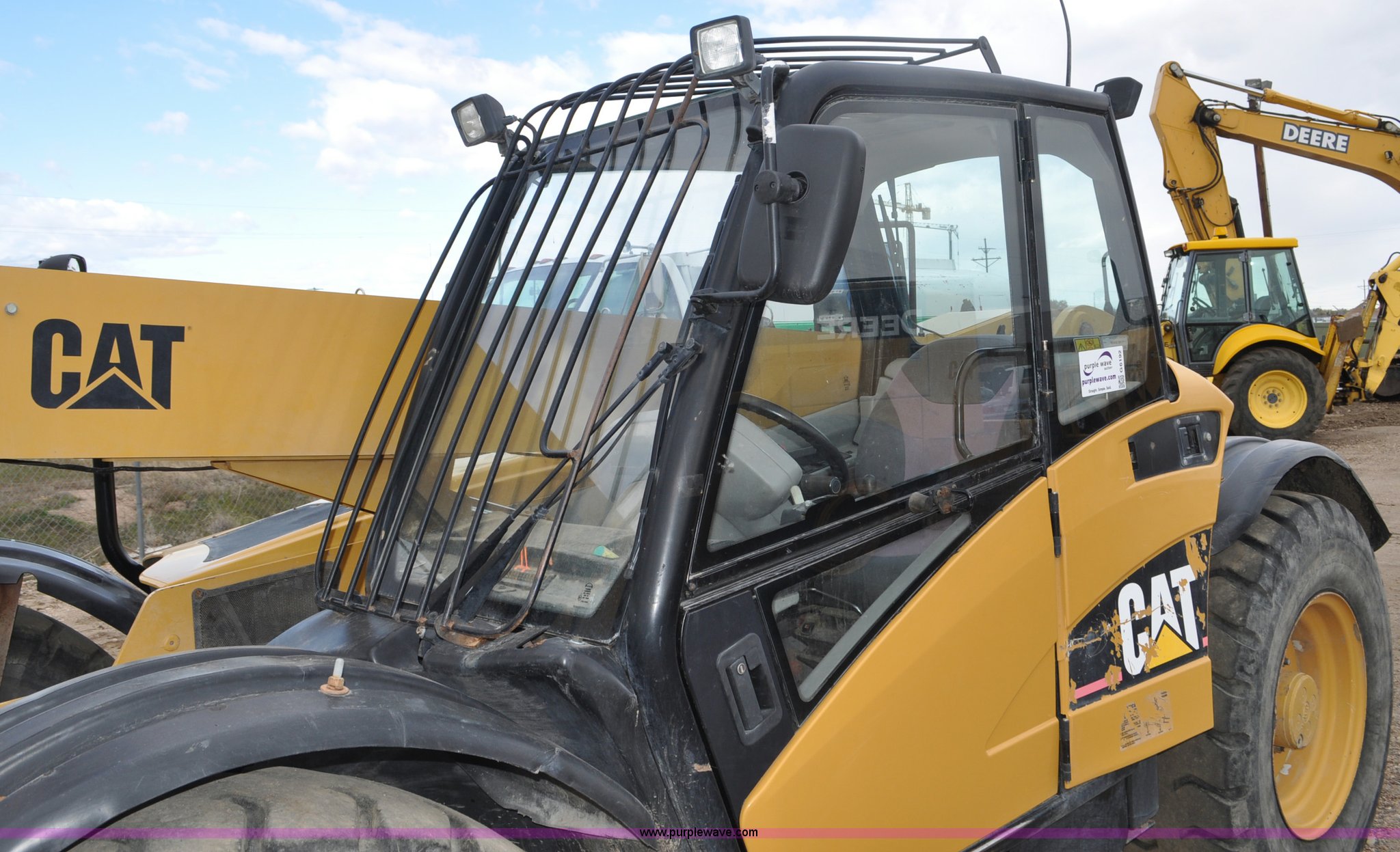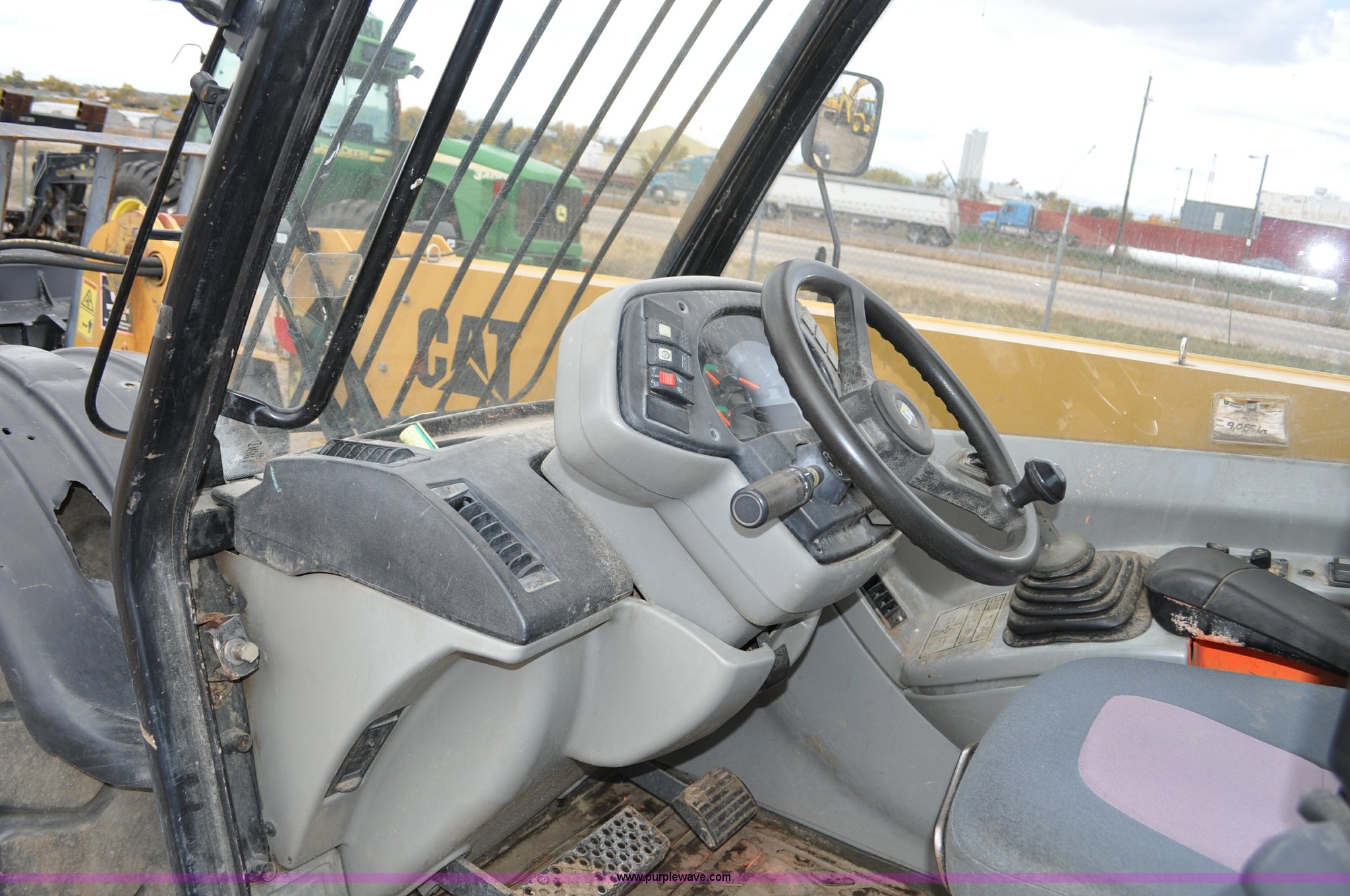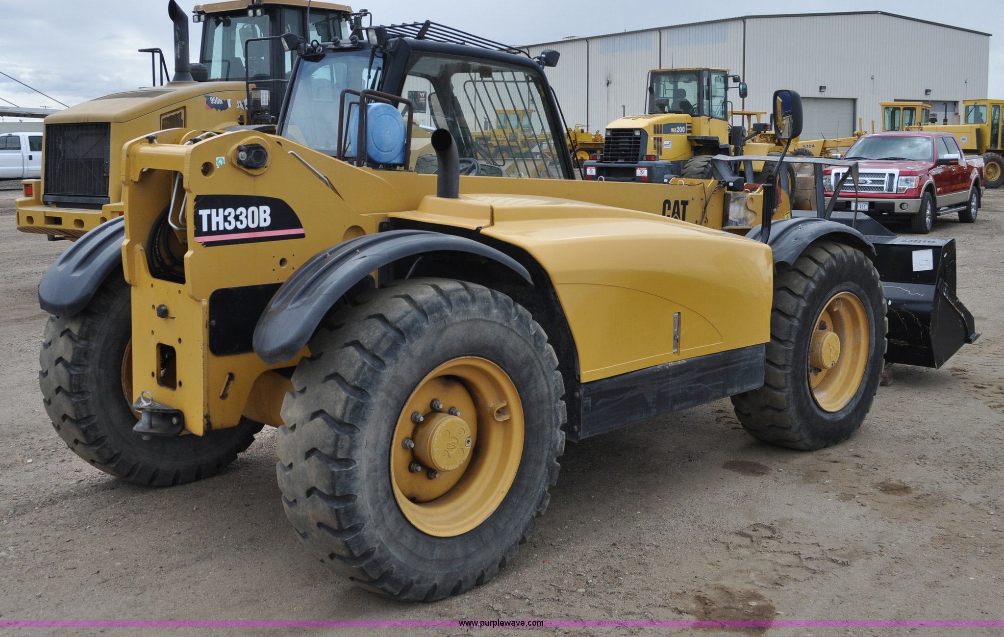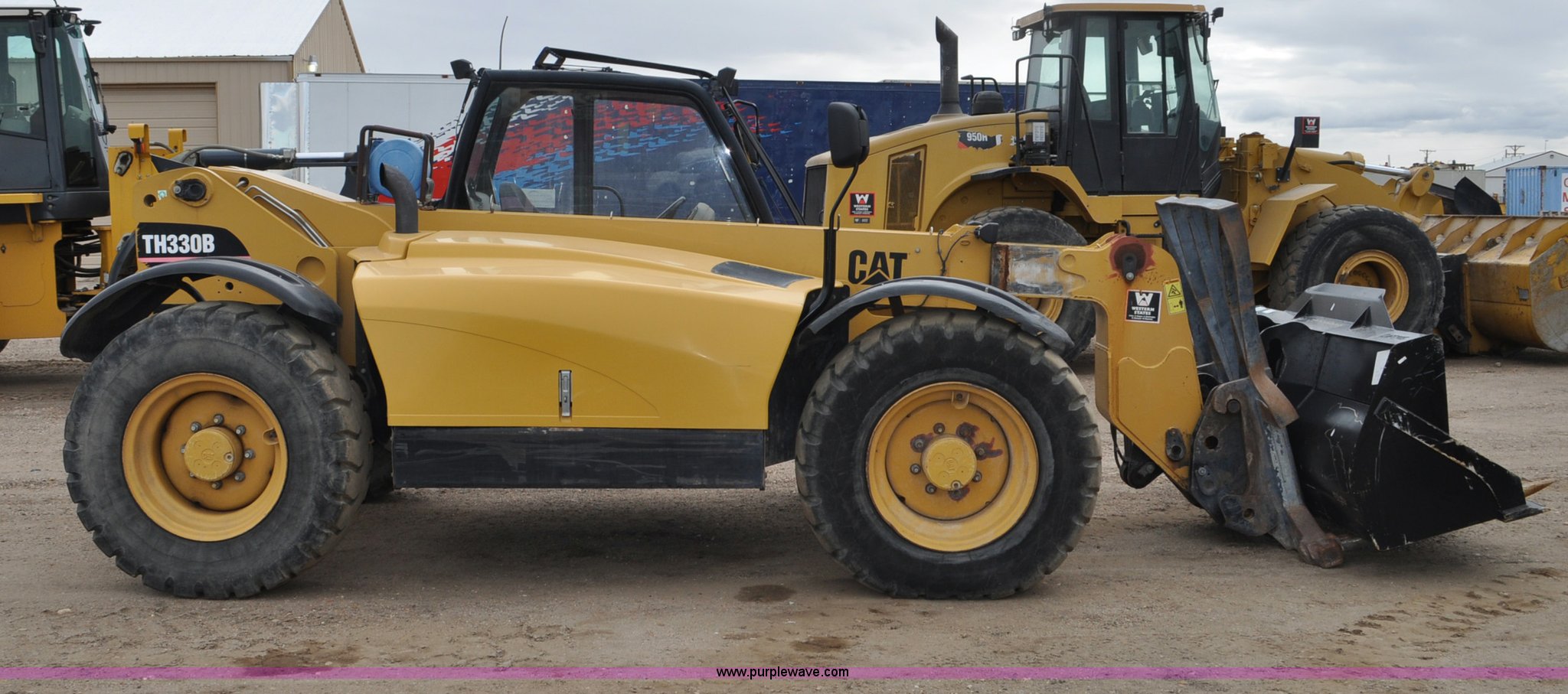 Purple Wave is selling a used Telehandler in Colorado. This item is a 2005 Caterpillar TH330B telehandler with the following: 9,353 hours on meter, Caterpillar 3054E four cylinder diesel engine, 99 HP, Serial CRX04409, Powershift transmission, 4F-3R gears, Four wheel drive, Differential lock, Crab steer, Circle steer, Enclosed cab, AC and heat, Air suspension seat, 7,000 lbs lift capacity, 12.5'L reach, Auxiliary hydraulics, Hydraux manlift, Quick attach, 1,000 lbs capacity, Hydraulic angle, 4' x 10" basket, Bale forks, 26 gallon fuel tank, 15.5x25 tires, 15,476 lbs. base operating weight, Bucket is not included, Serial CATTH330ASLB00905